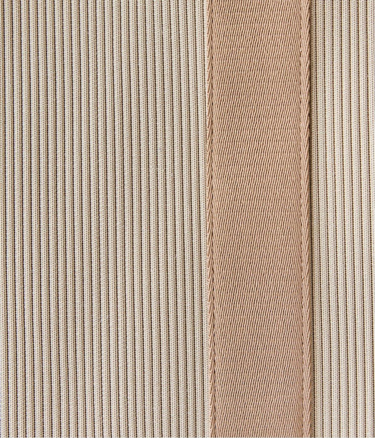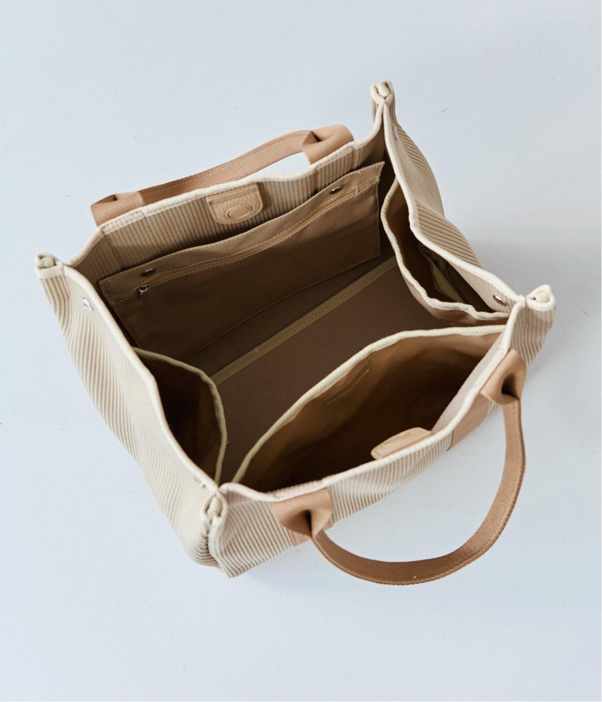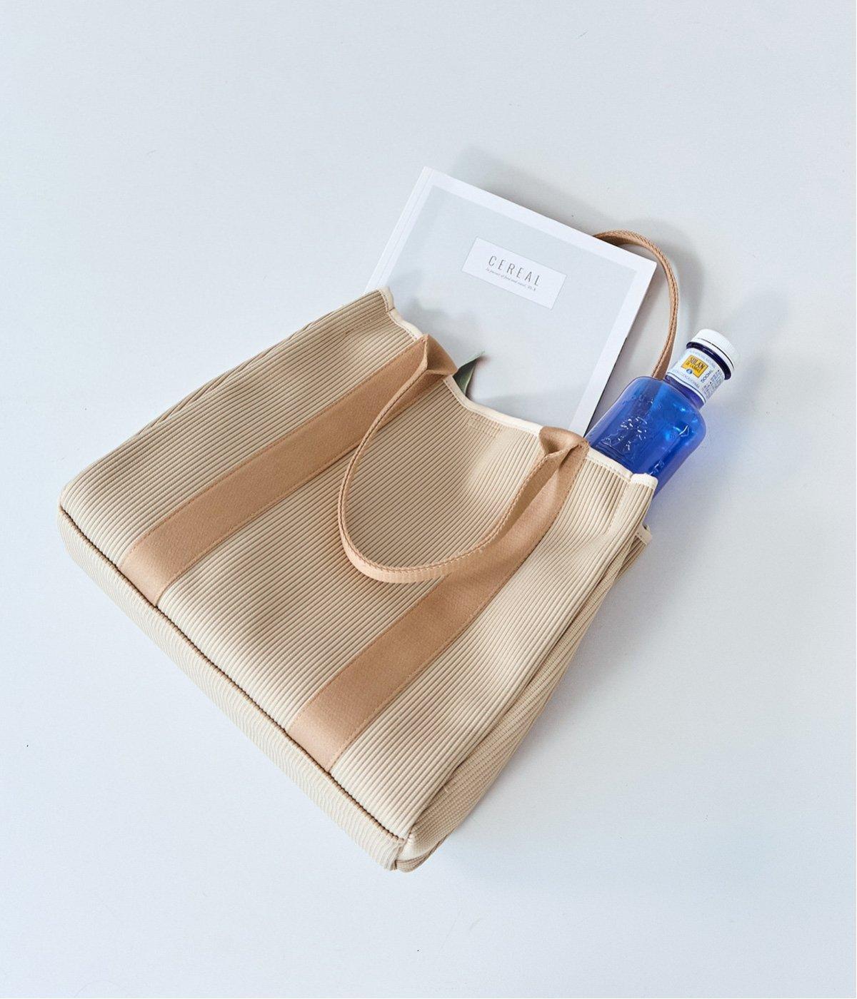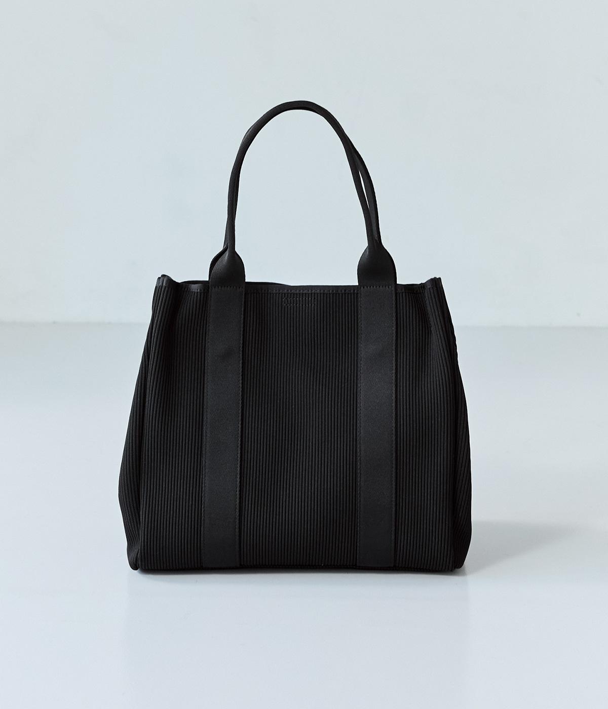 縦方向の畝が特徴のニットジャカードを使用しています。荷物をたくさん入れてもシルエットをきれいにキープしてくれる、しっかりとした厚みとハリ感が魅力です。