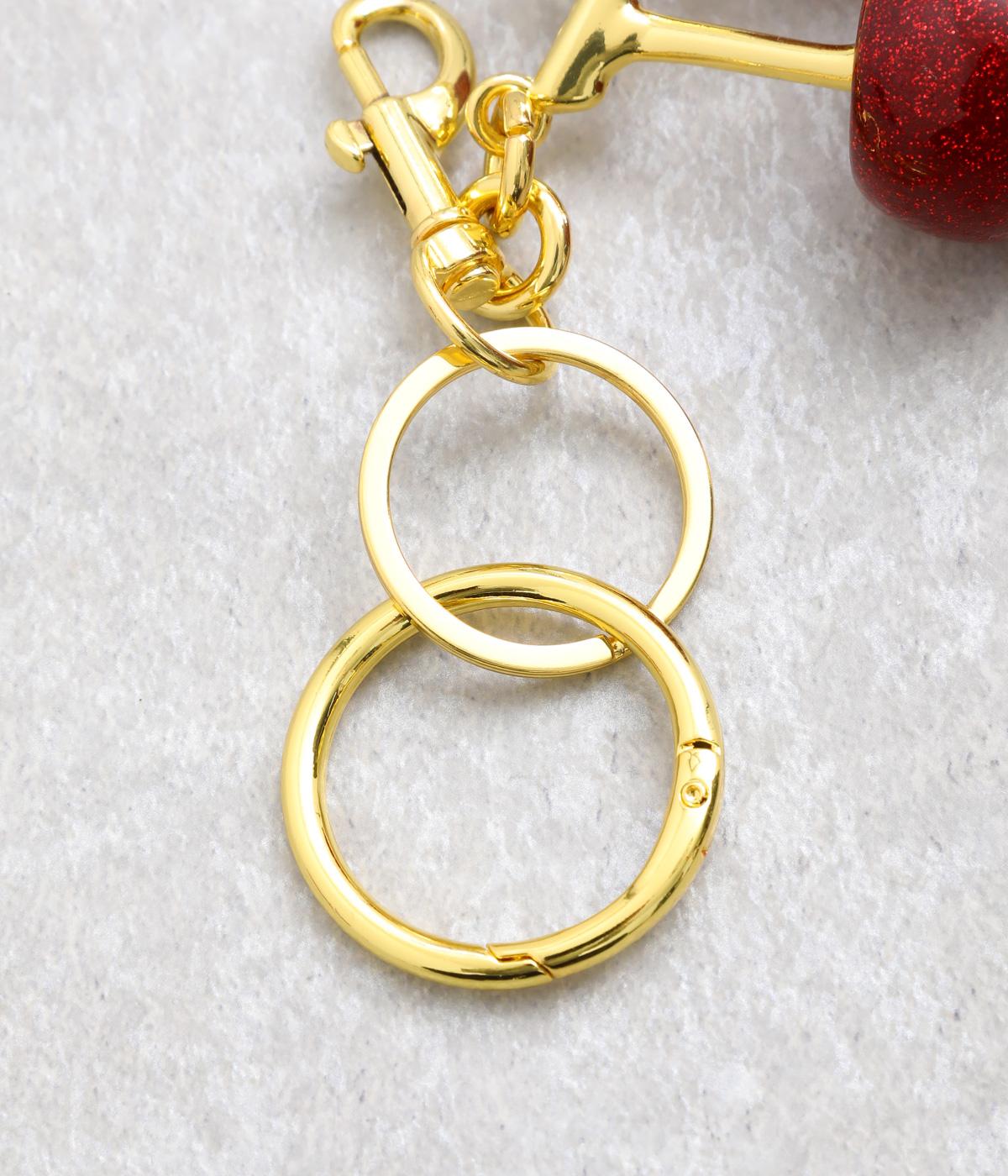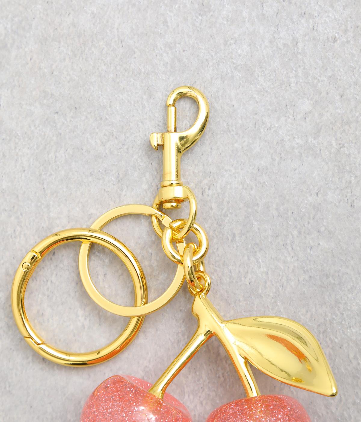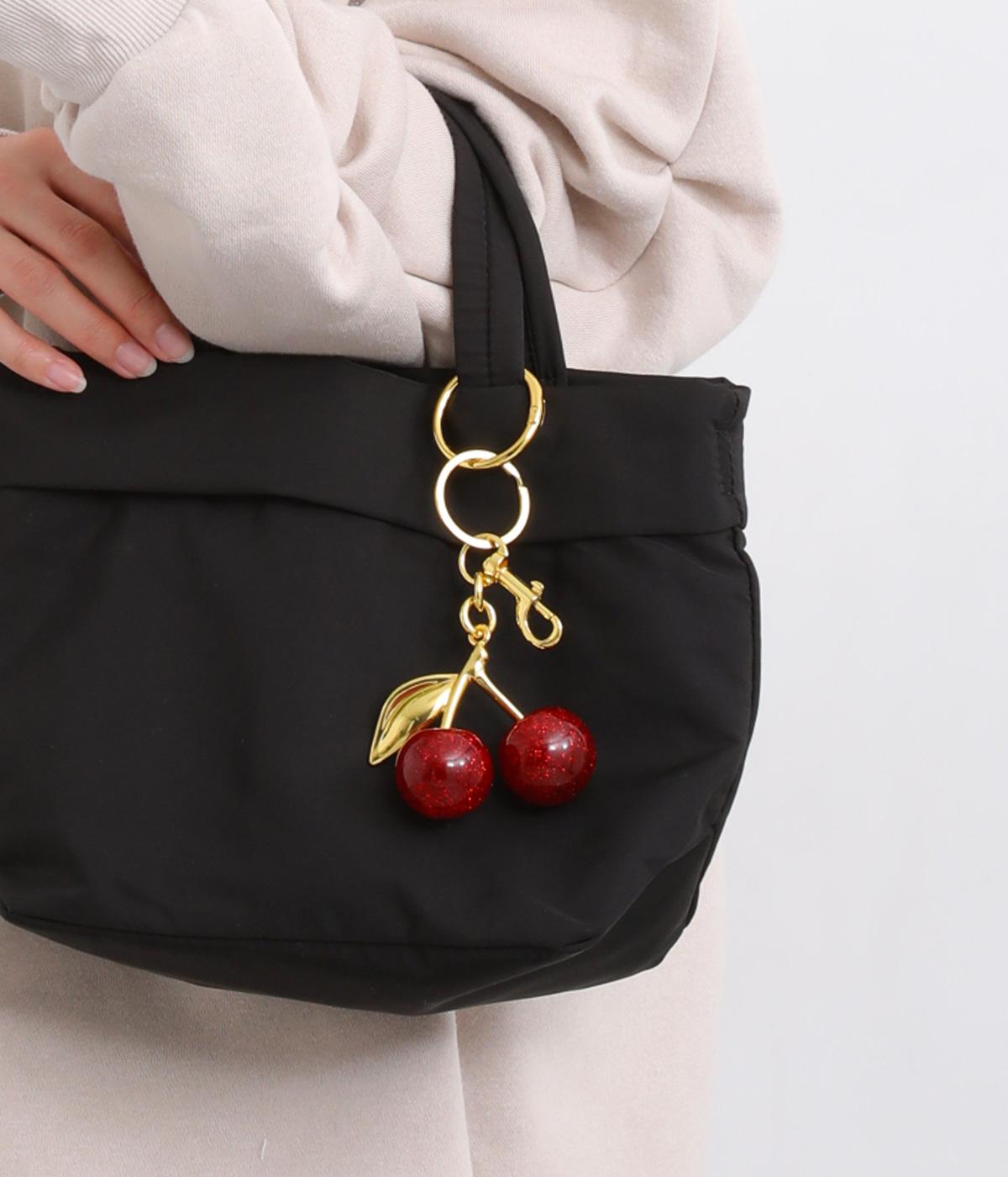 きらりと光るラメを閉じ込めた、さくらんぼモチーフのチャームです。ころんと立体的なフォルムがかわいらしく、バッグの持ち手につけるだけで存在感を放ちます。シンプルな装いに大人の遊び心を添えてくれるアイテムです。