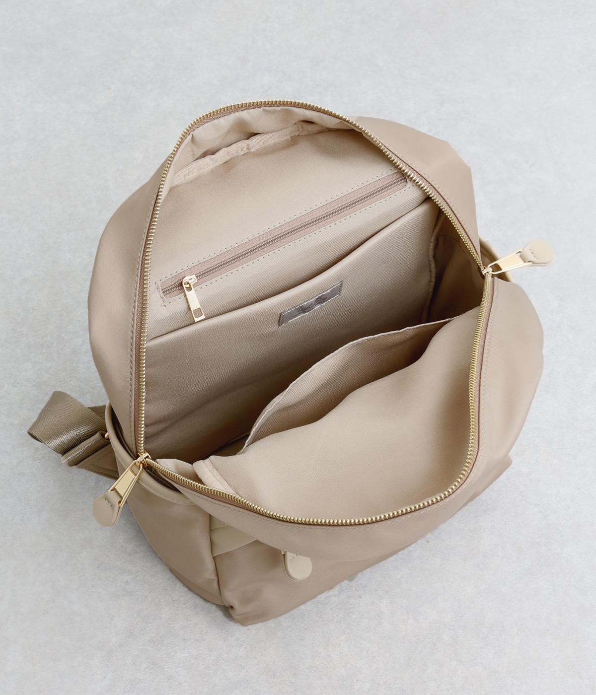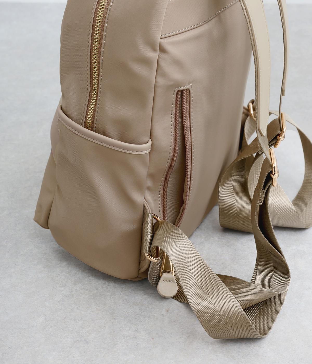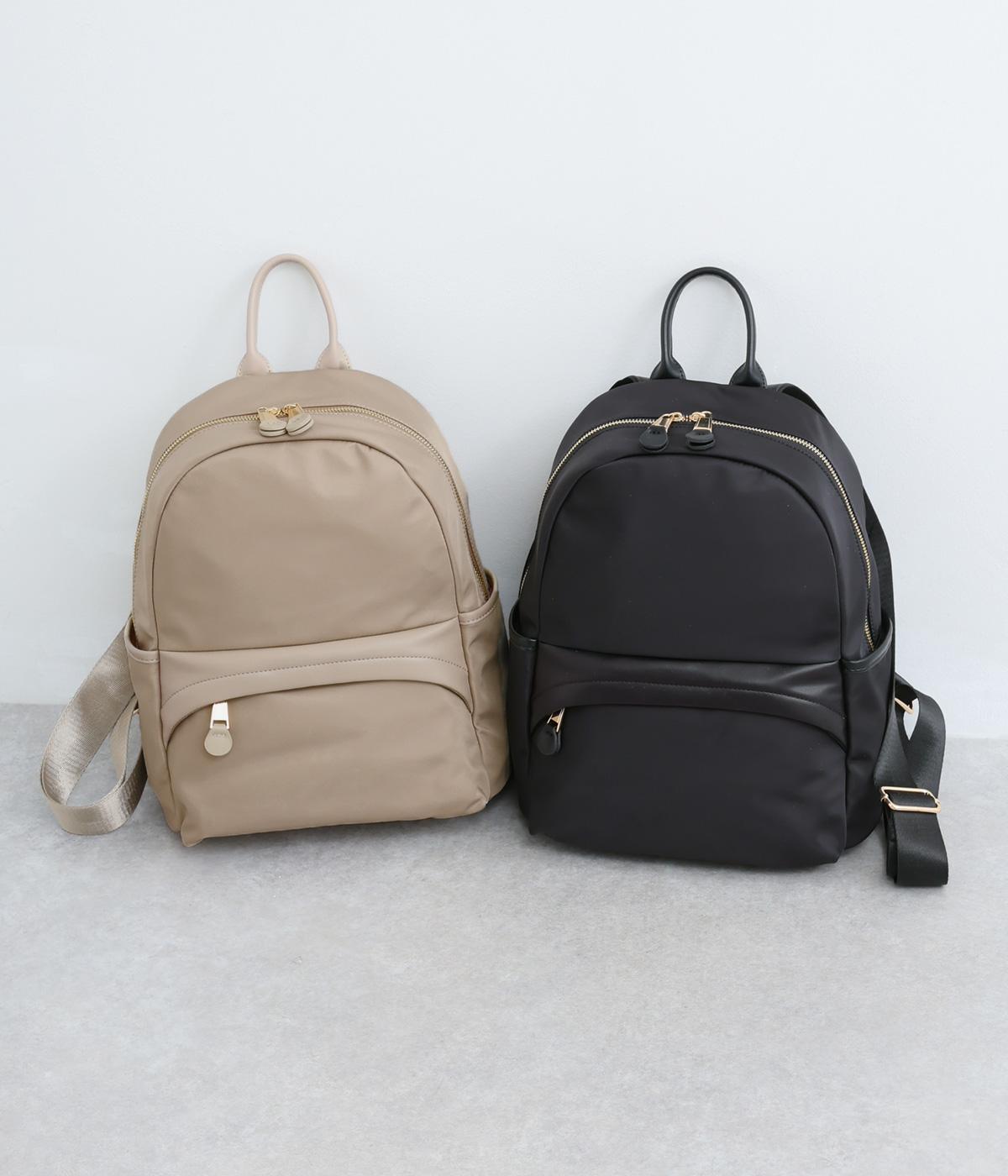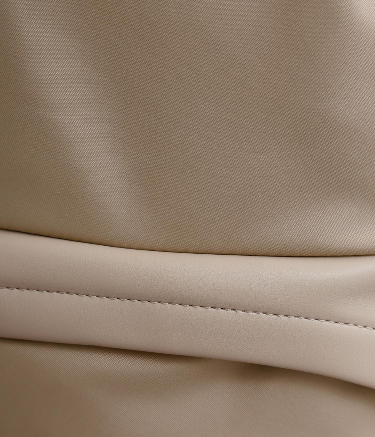 タフで扱いやすいナイロン素材に撥水加工をほどこしました。急な雨でも安心の使い心地です。軽量で持ちやすく、デイリーに使いやすい素材感です。