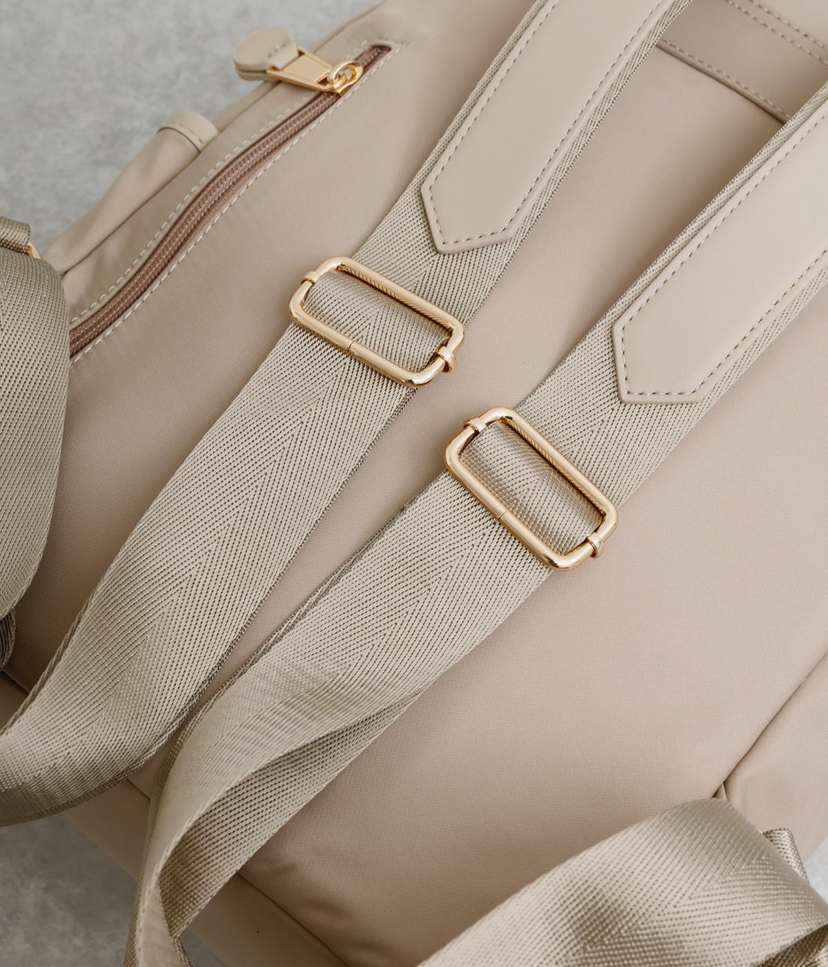 シンプルですっきりした見た目が日々のスタイリングにしっくりとなじみます。やや小ぶりながら、内側にパッド入りのポケットを配してタブレットやミニPCの収納ができ、通勤や通学にも最適です。オンオフ問わずに活躍する万能アイテムです。