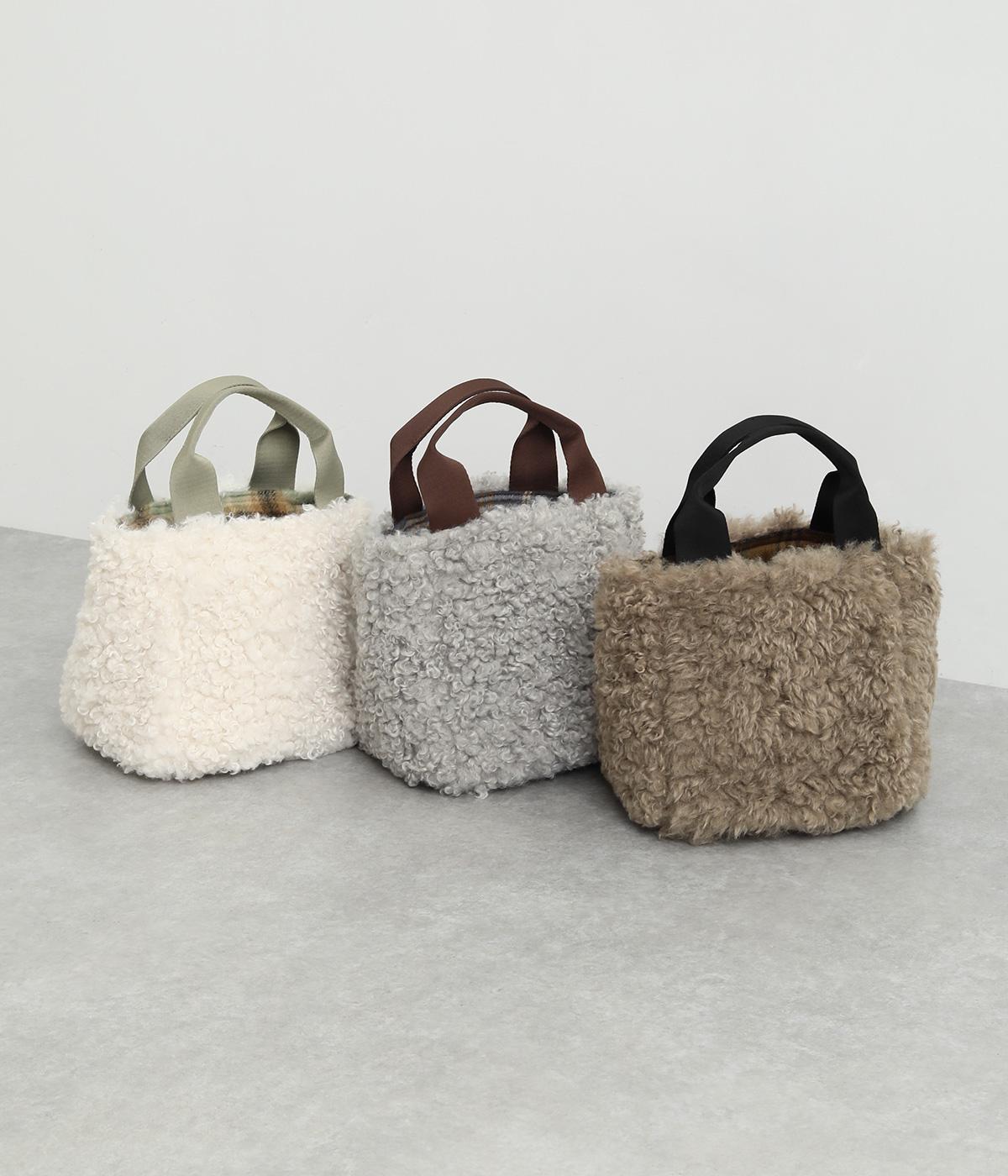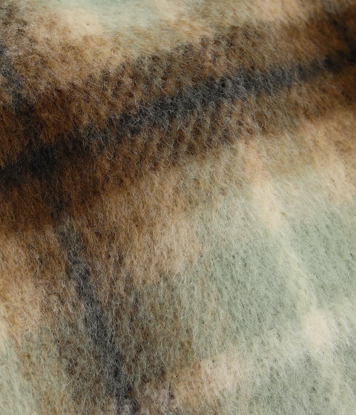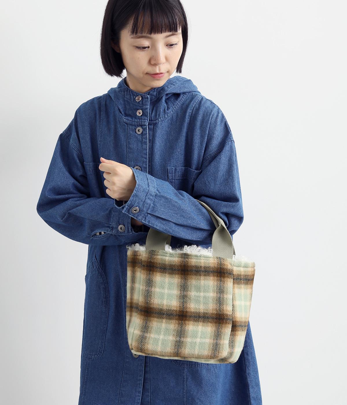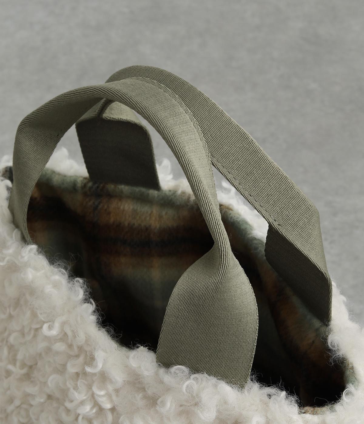 羊のようにくるくるとした毛並みが可愛らしいエコファーと、あたたかみのある起毛チェック柄のリバーシブル仕様。ボリューム感がありながらも、ポリエステル製で軽やかな仕上がりです。