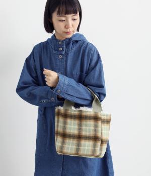 アイキャッチになるリバーシブルバッグは、印象ががらりと変わるのでバリュー感があります。ころんとしたフォルムが可愛らしく、自立するので使い勝手も◎。ハンドルには光沢のあるテープを配してコントラストをきかせました。