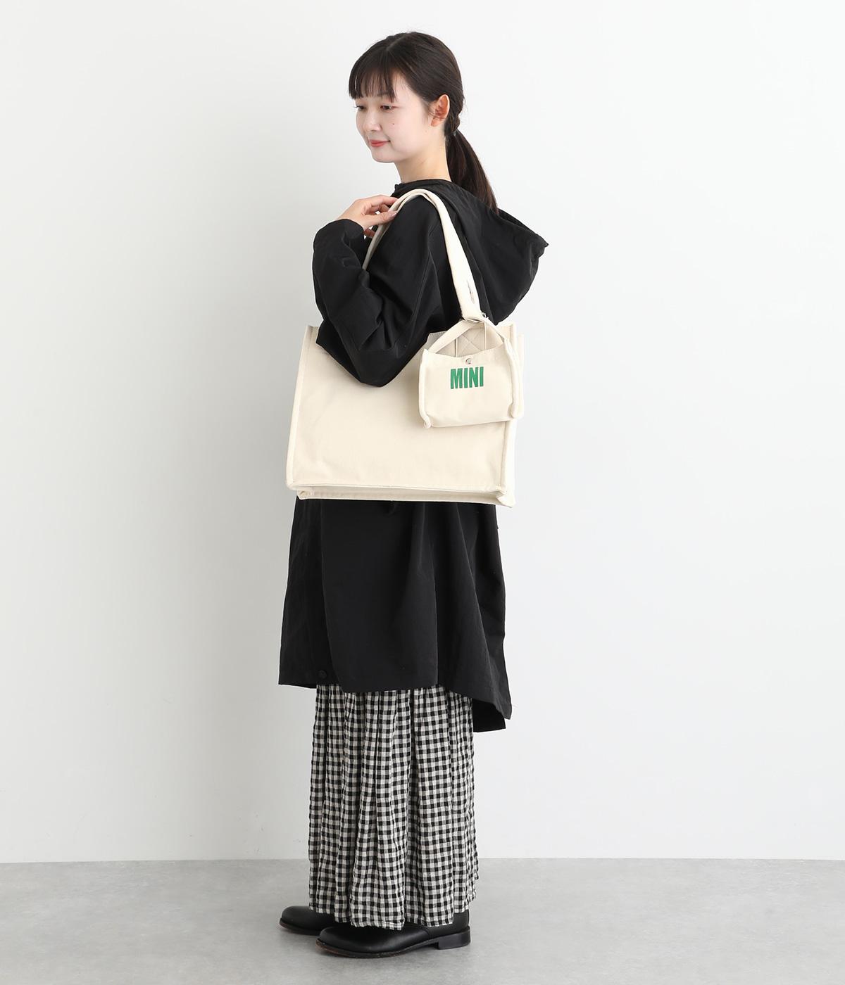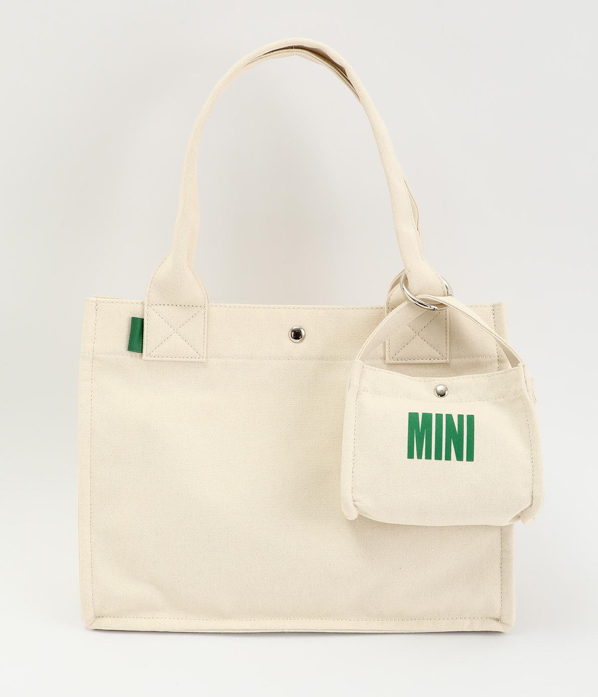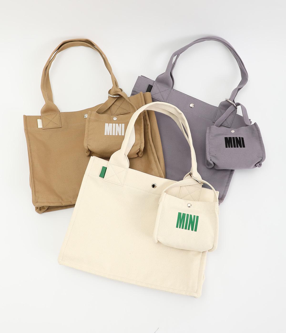 シンプルでタイムレスなコットンキャンバストートバッグ。MINIとフロッキープリントされた、同素材のミニバッグをセットにしました。