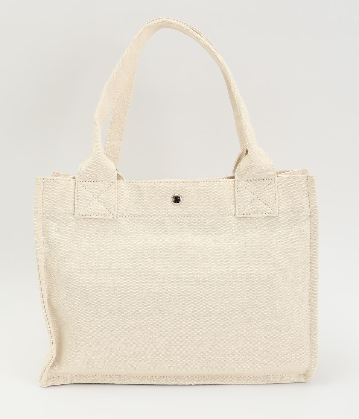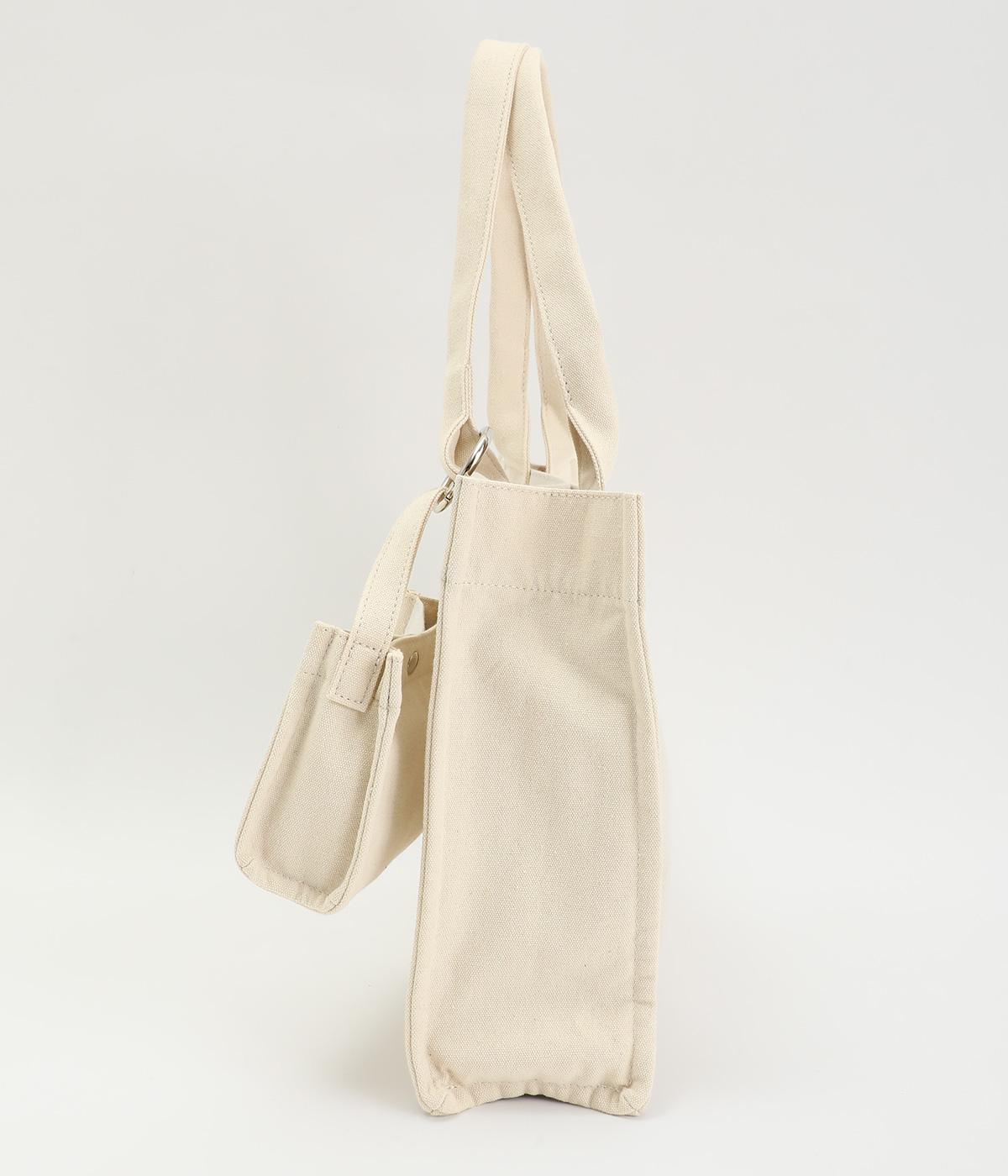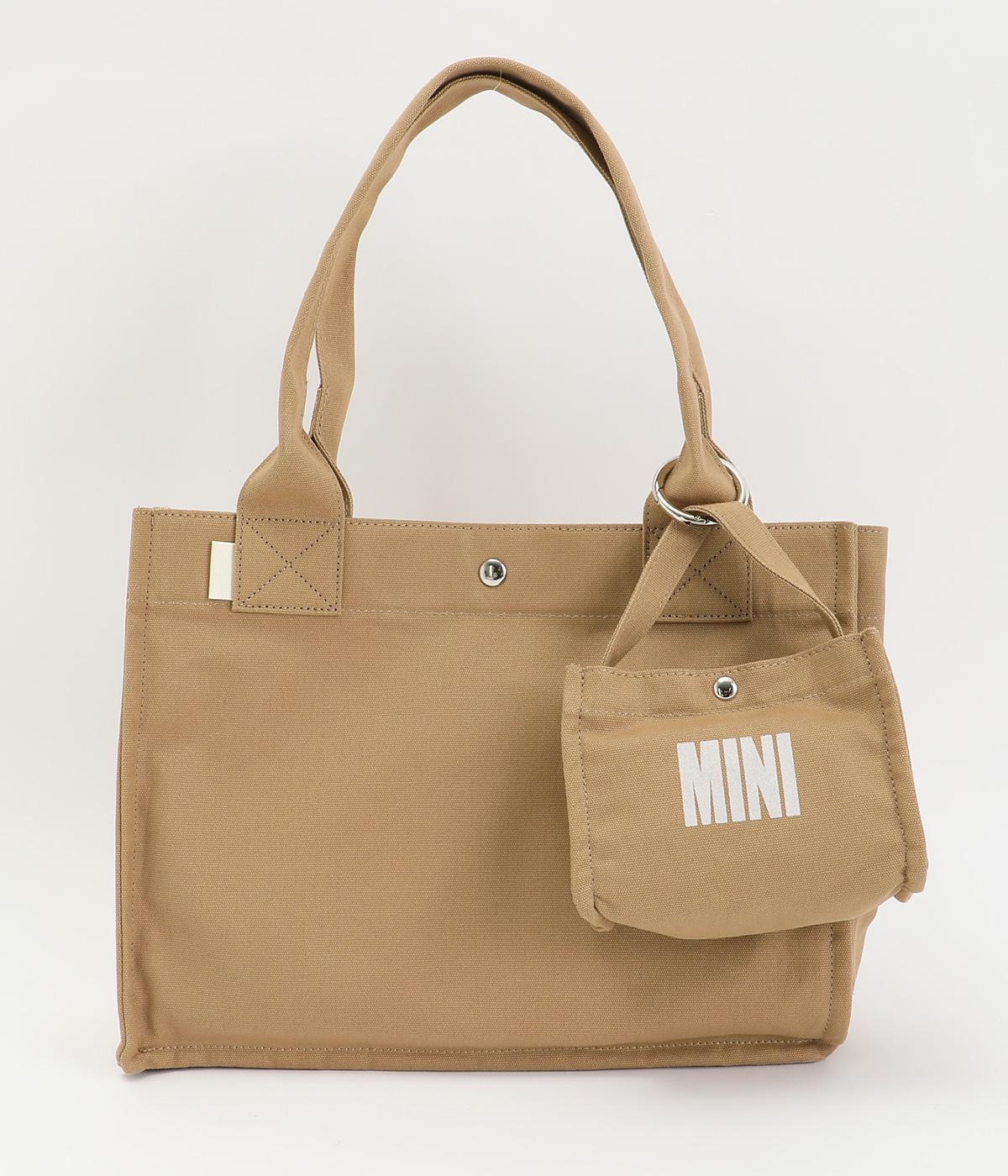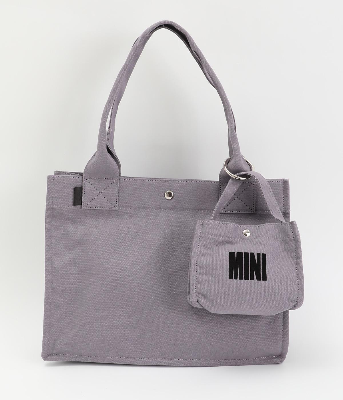 シンプルでタイムレスなコットンキャンバストートバッグ。MINIとフロッキープリントされた、同素材のミニバッグをセットにしました。