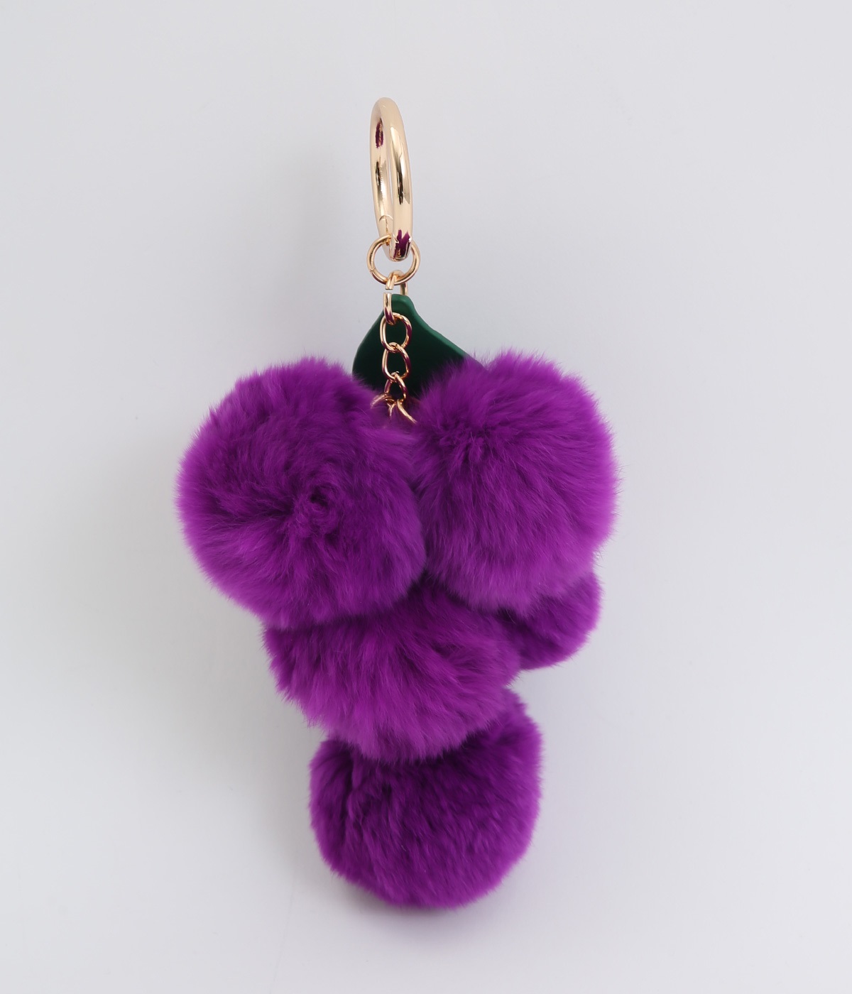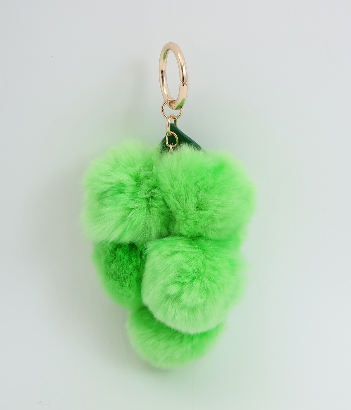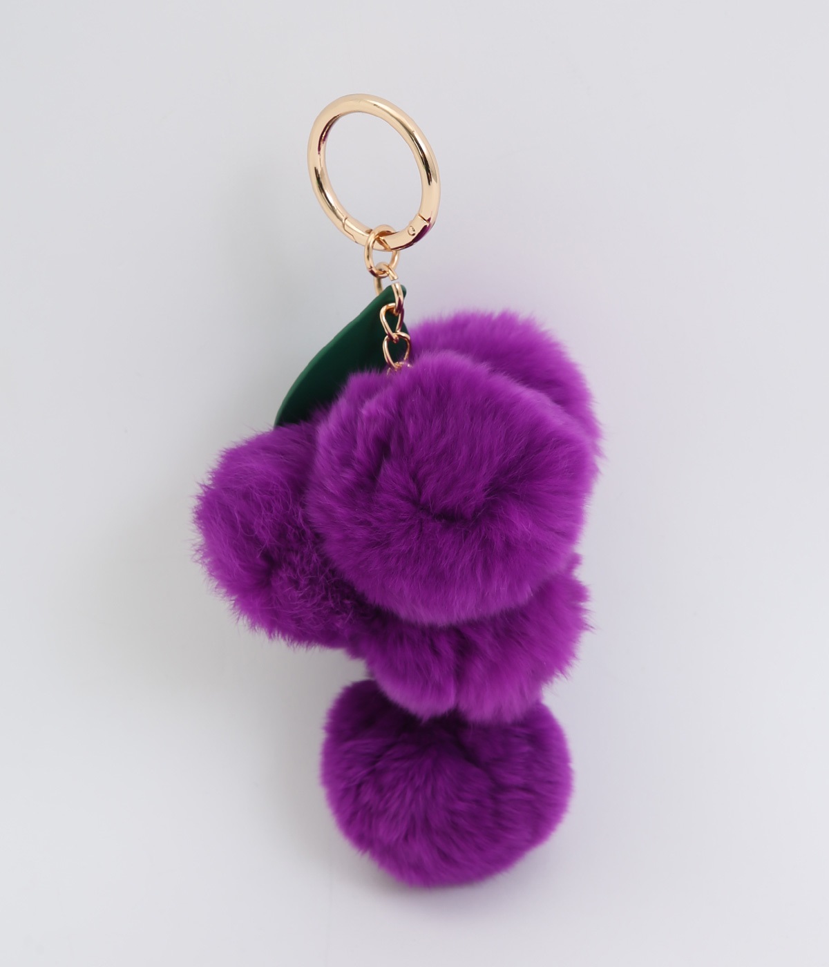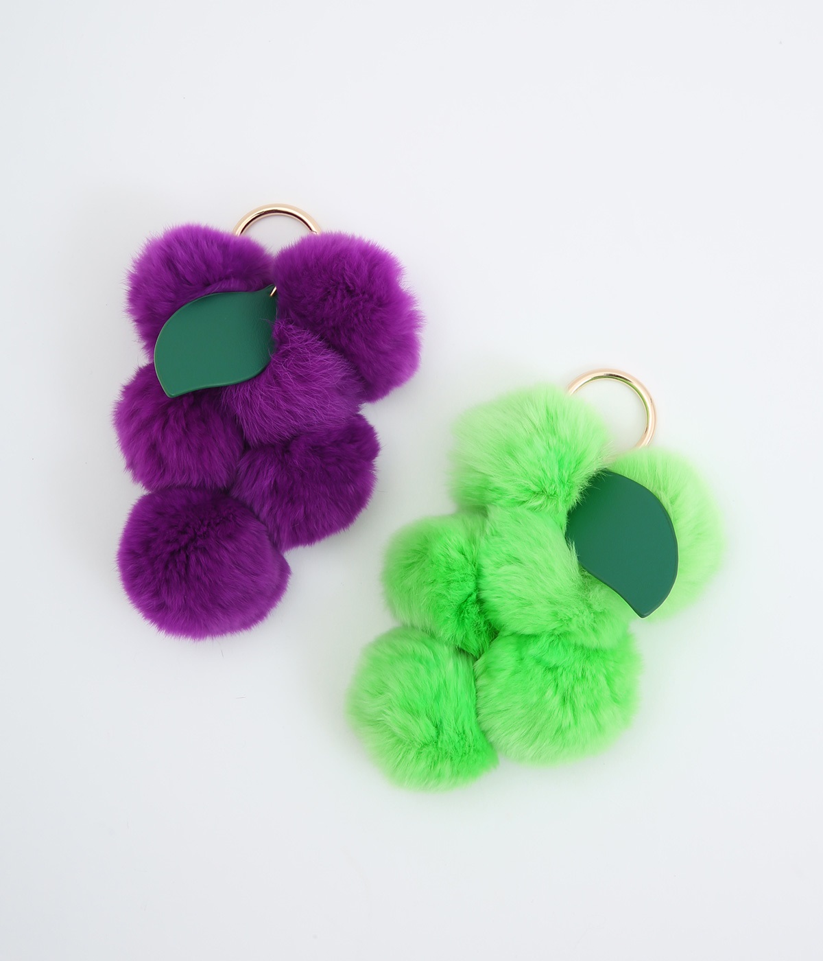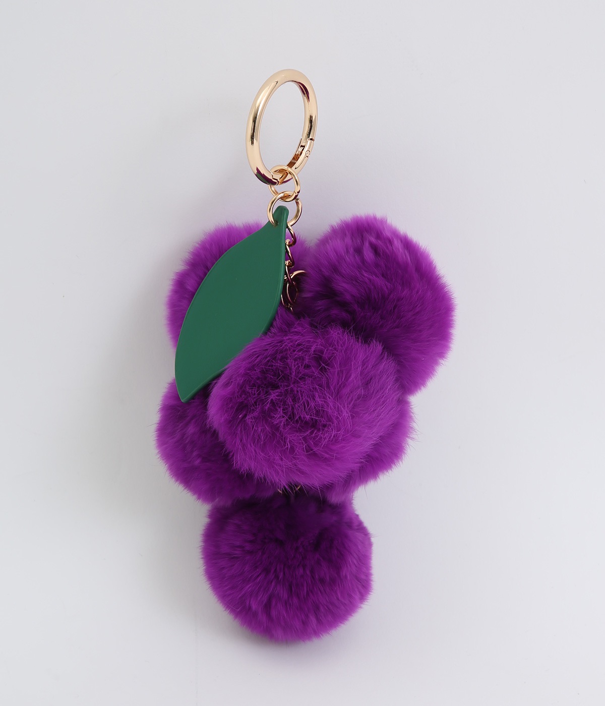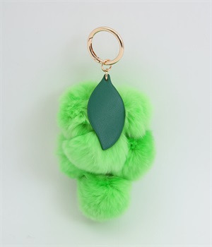 ふわふわのファーで大人かわいい要素をプラスした、人気チャームのマスカットバージョンです。ケミカルレザーで葉っぱも表現してデザイン性アップ。シンプルなバッグにつけたり、キーホルダー感覚でたのしめます。