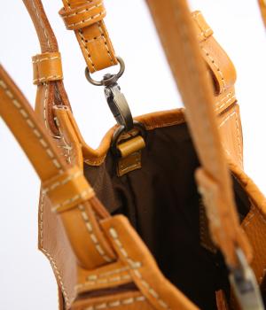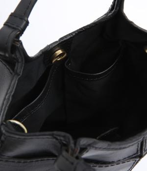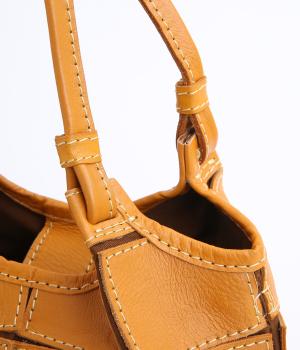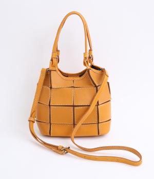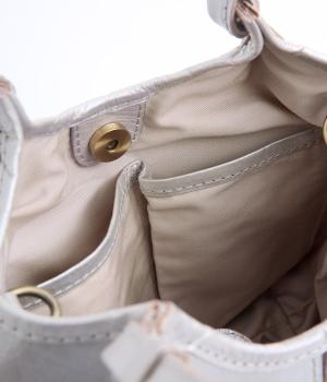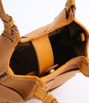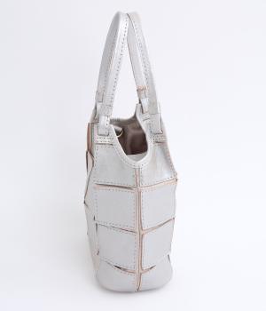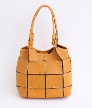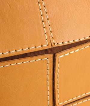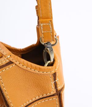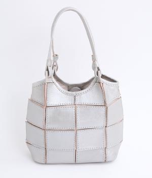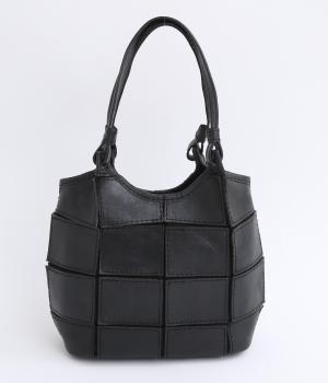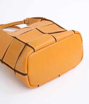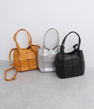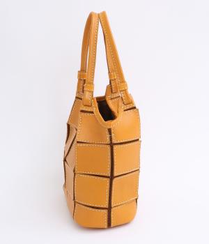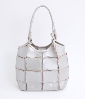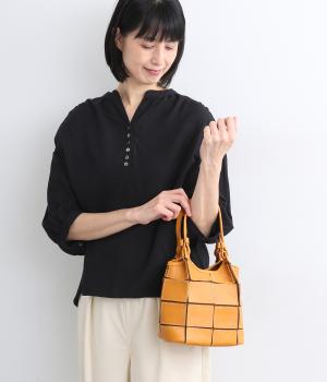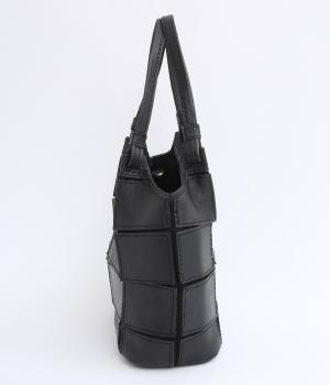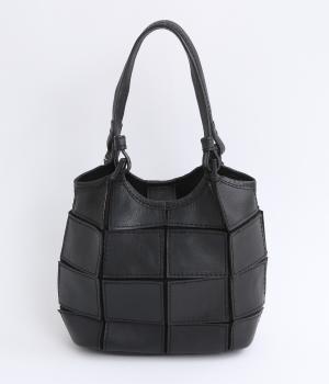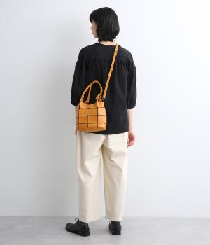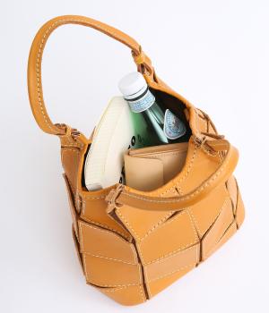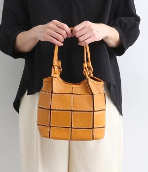 四角くカットされたレザーパーツをパッチワーク状に縫製をした、洗練された表情のトートバッグです。長財布や500mlペットボトルがしっかりと収まるちょうどいいサイズ感。取り外し可能なショルダーストラップつきで斜め掛けもできます。
