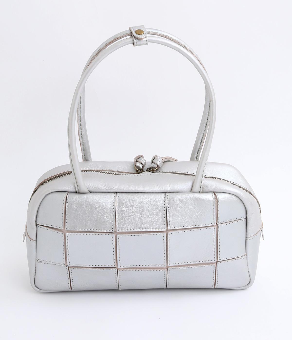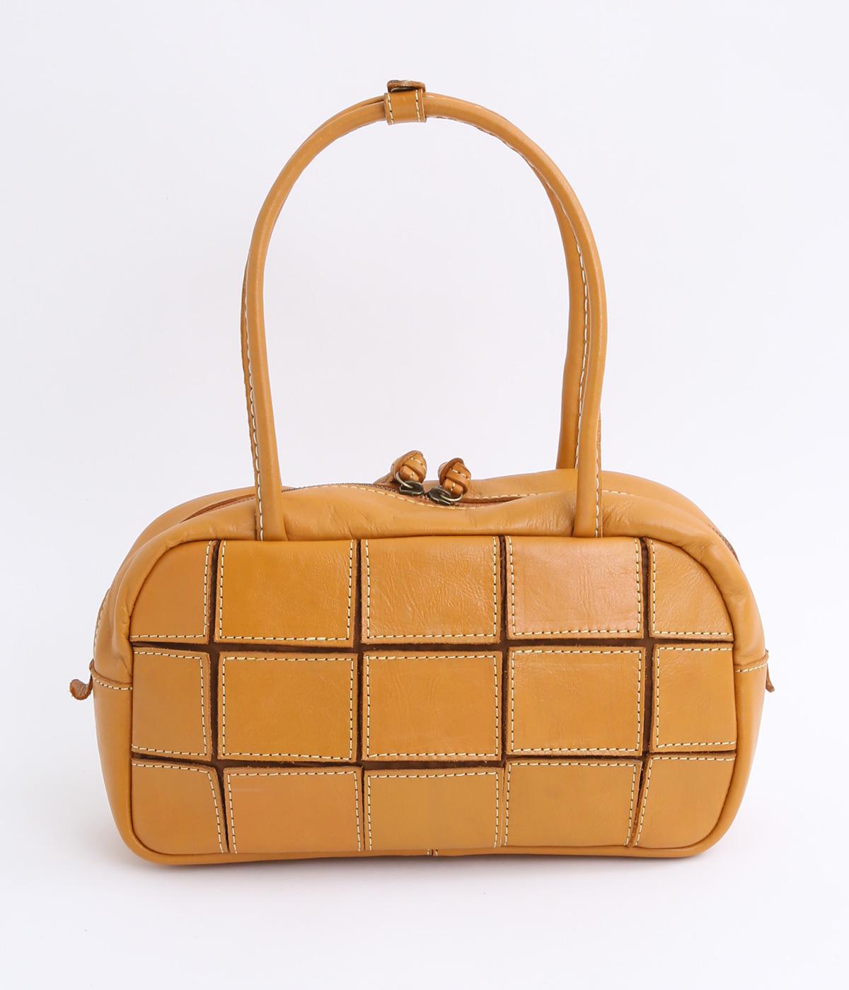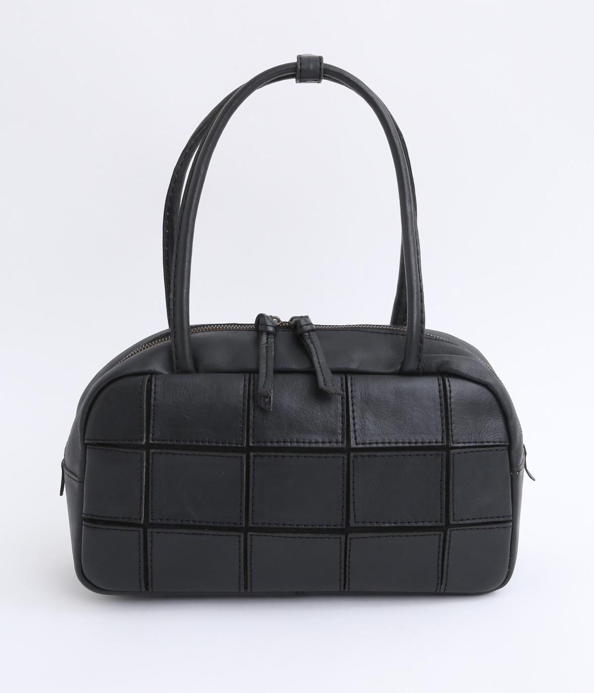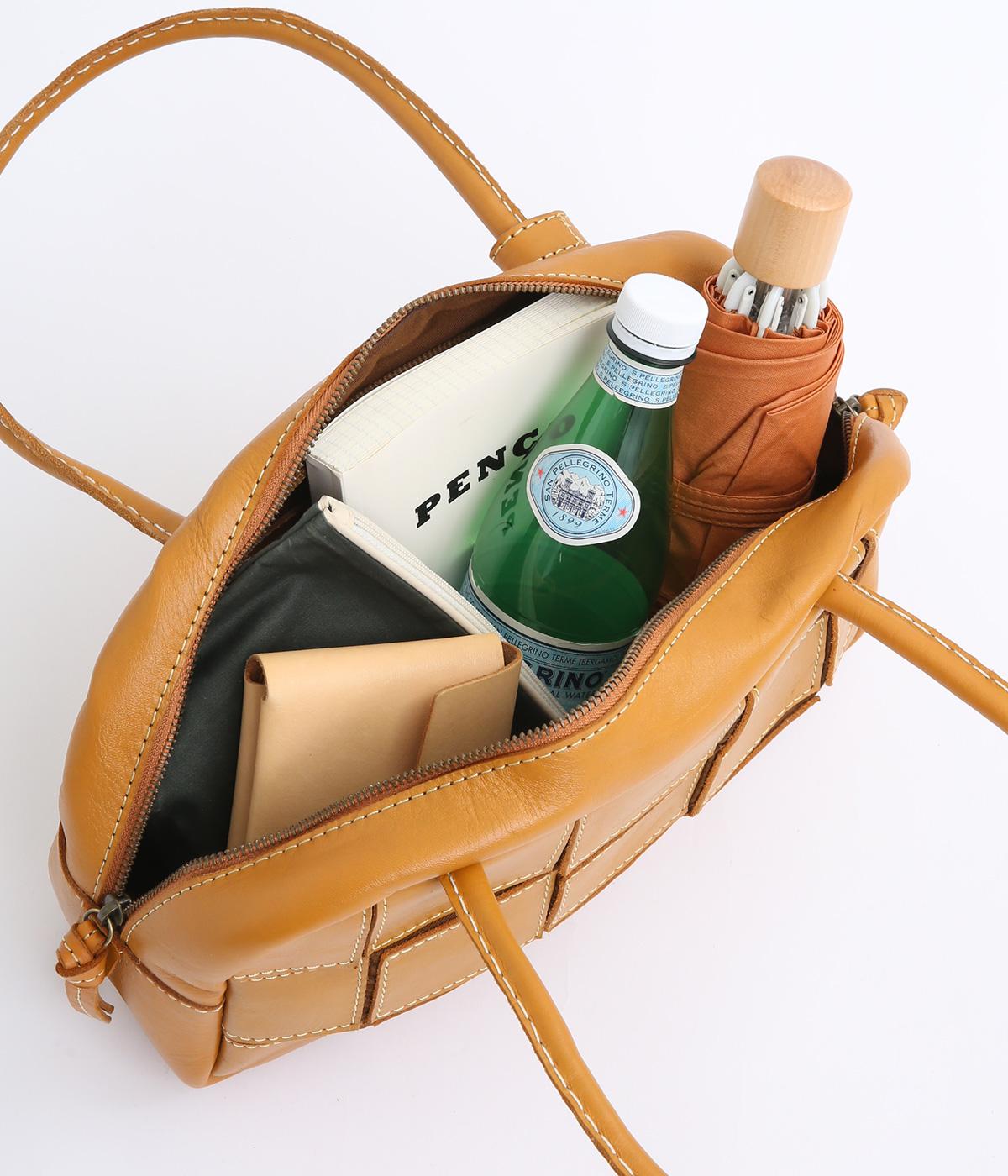 四角くカットされたレザーパーツをパッチワーク状に縫製をした、洗練された表情のトートバッグです。長財布や500mlペットボトルがしっかり収まる、普段使いにちょうどいいサイジングです。しっかり肩入れもできるのもおすすめのポイント。