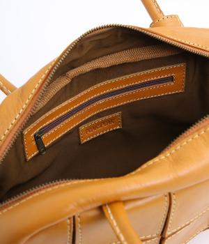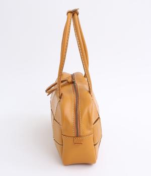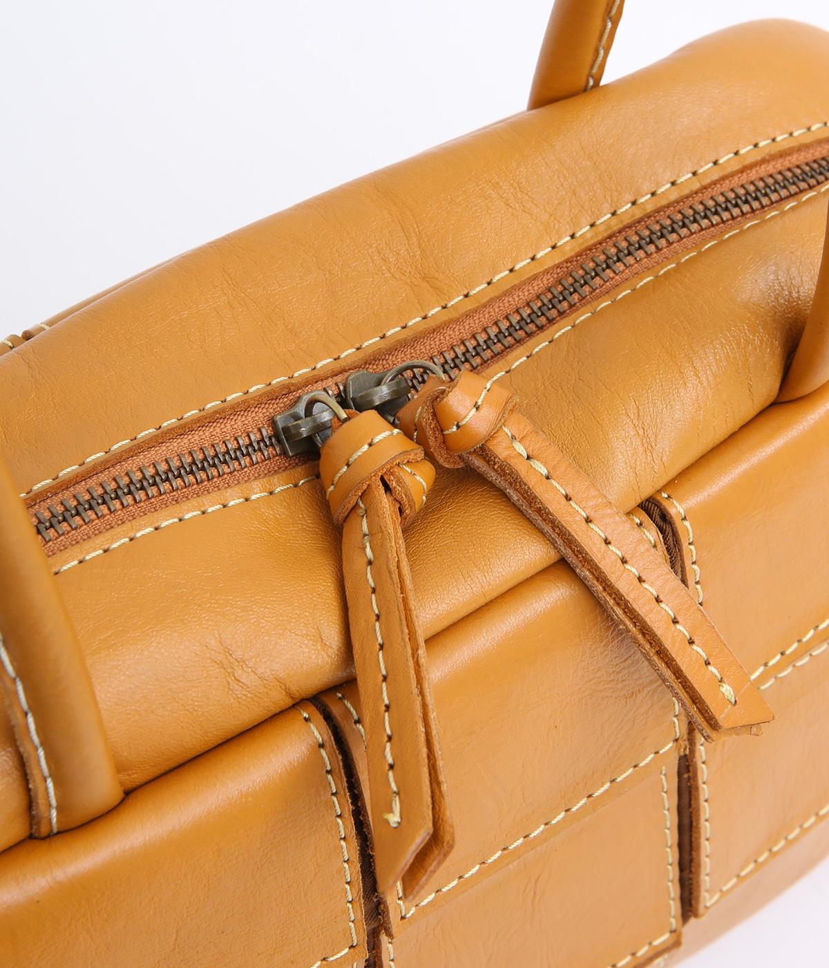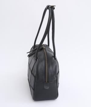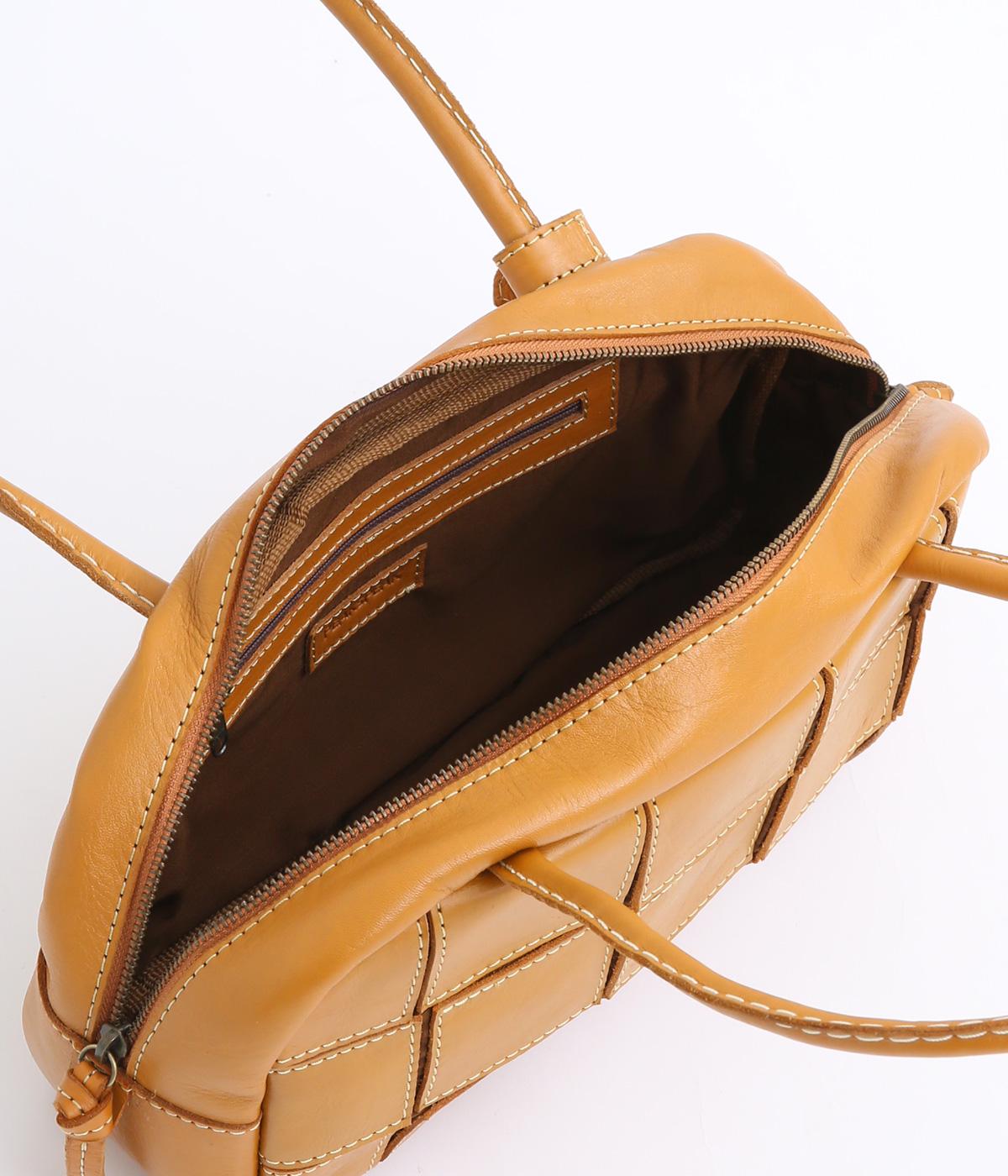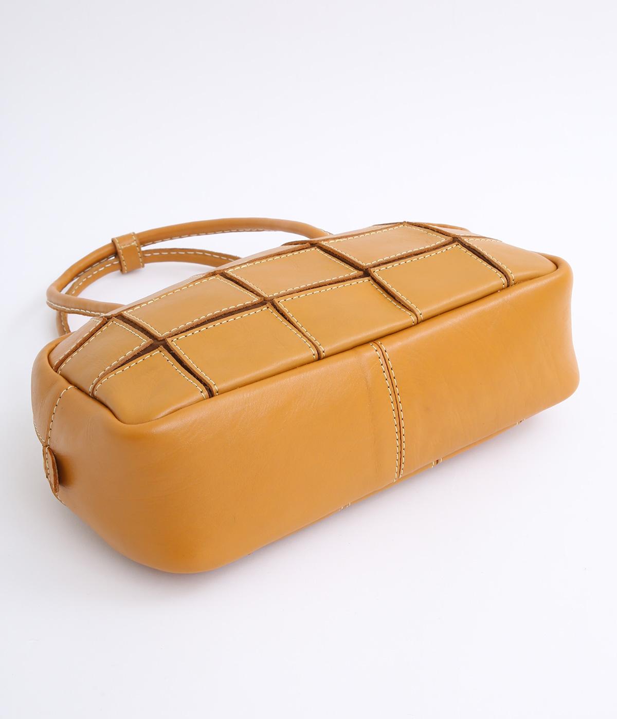 四角くカットされたレザーパーツをパッチワーク状に縫製をした、洗練された表情のトートバッグです。長財布や500mlペットボトルがしっかり収まる、普段使いにちょうどいいサイジングです。しっかり肩入れもできるのもおすすめのポイント。