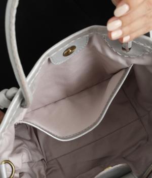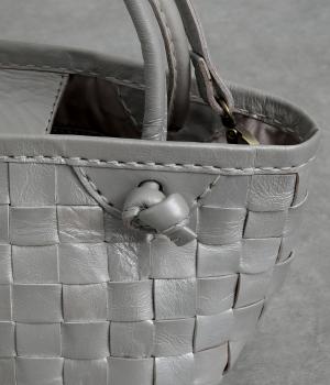 スタイリングを選ばないメッシュ編みのレザーバッグ。しっかりと底幅を取った立体的なフォルムで、見た目以上に収納力があります。ショルダーベルトは取り外し可能で手提げにもなる2way仕様。マグネットボタンのタブで中身の飛び出し防止も。