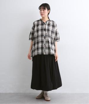 リネンドットプリント タックギャザースカート