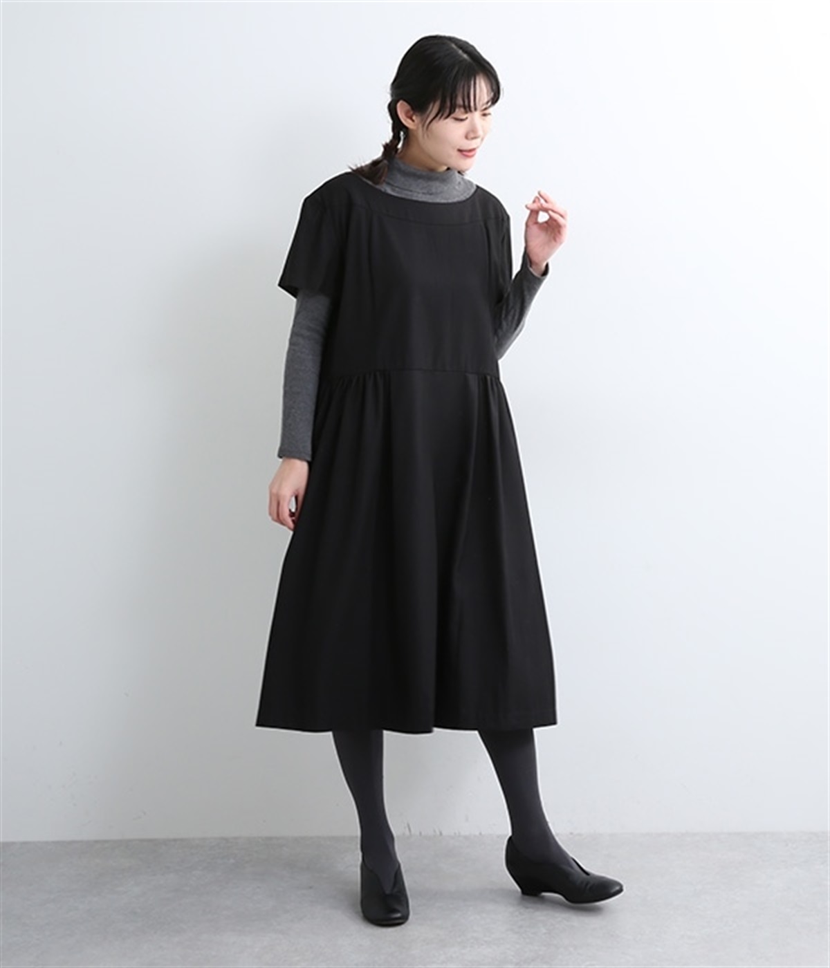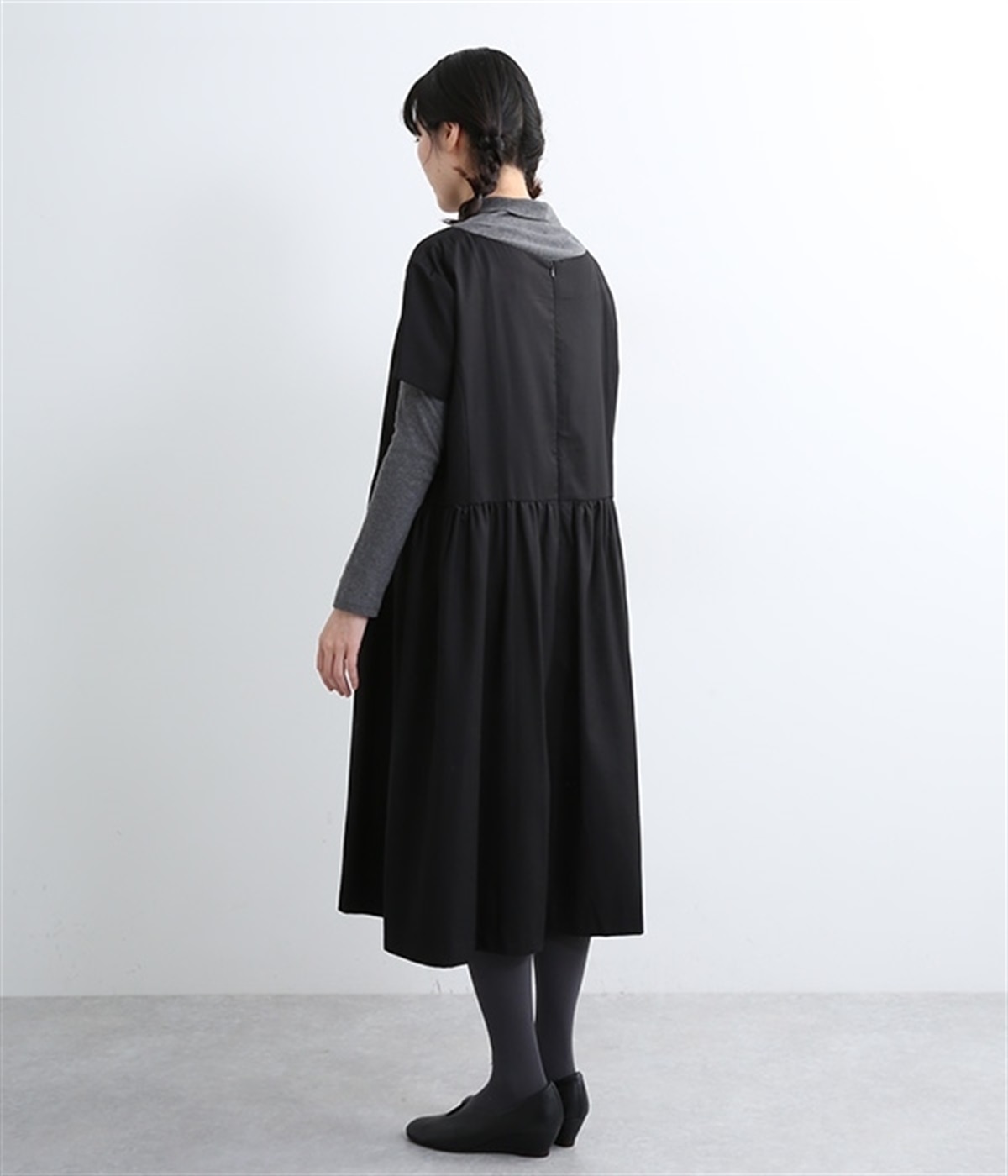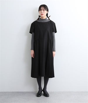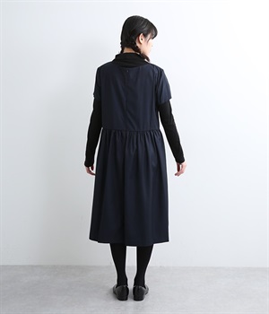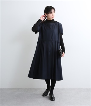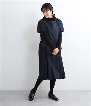 ヨークの切替が上品さを引き立てるワンピース。高めの位置のウエスト切替えからはほどよくギャザーが入り、広がりすぎない美しいラインを表現しています。後ろネックはジップ仕様で、着脱のしやすさも◎。二の腕をカバーする、計算されたサイジングが魅力の一枚。シンプルで洗練されたデザインで、パールやヒールなどの小物使いが生えるアイテムです。