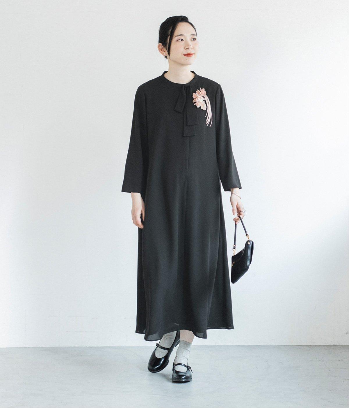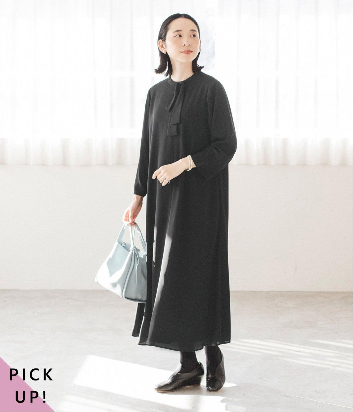 【慶弔両用】大切な日のボウタイAラインワンピース(ブラック-MP)