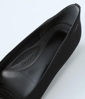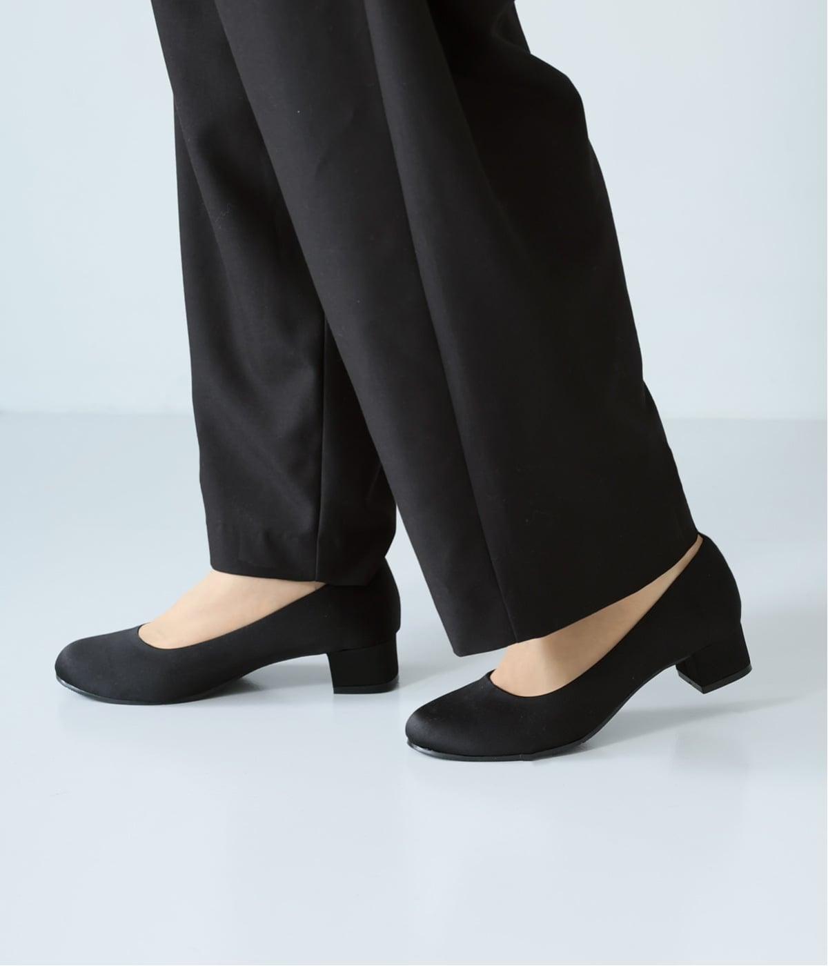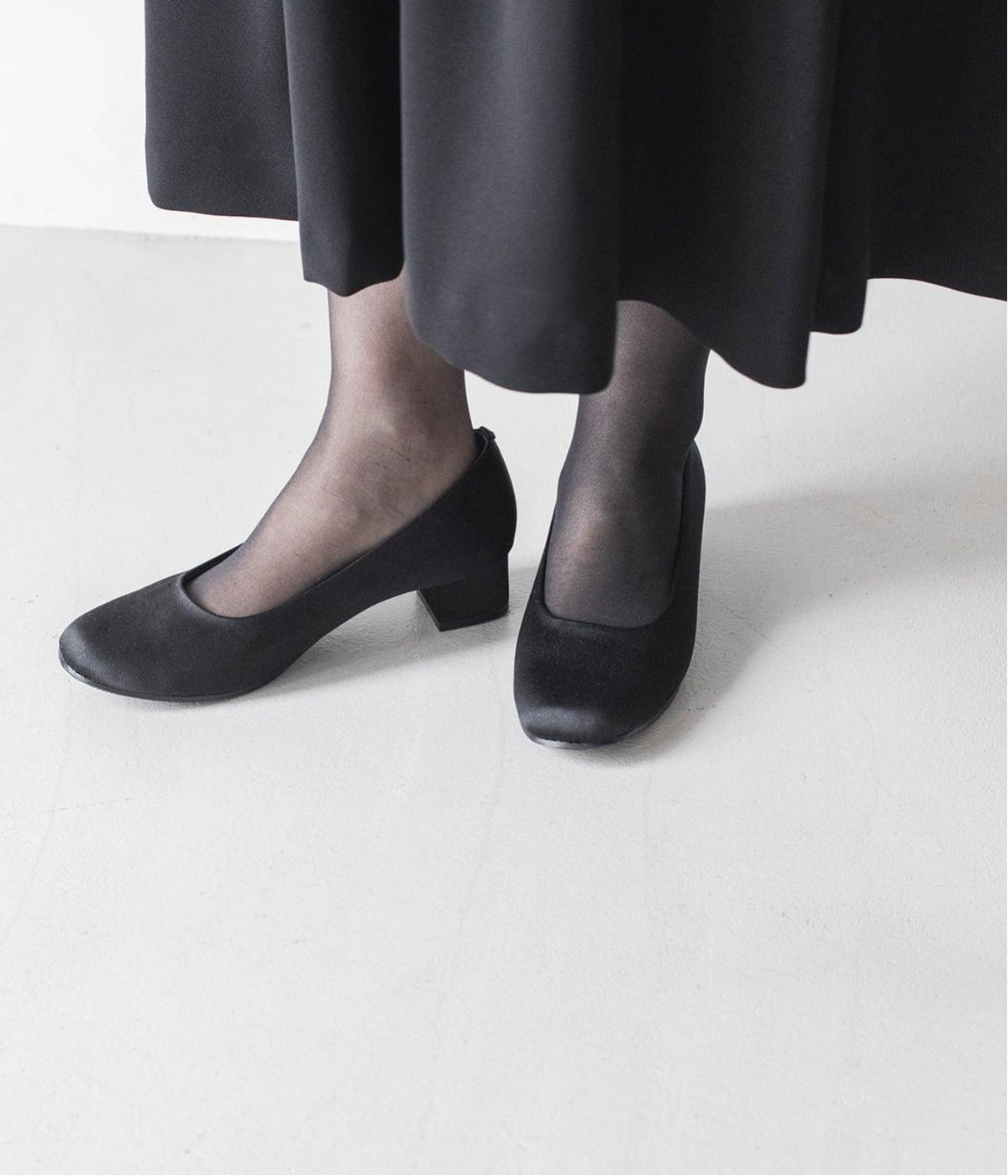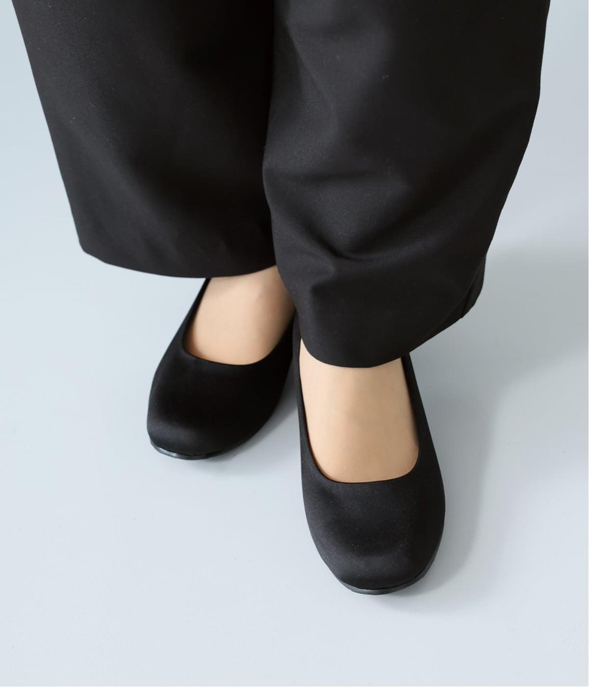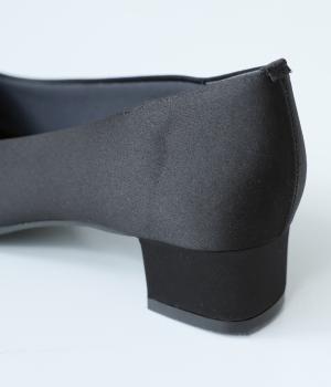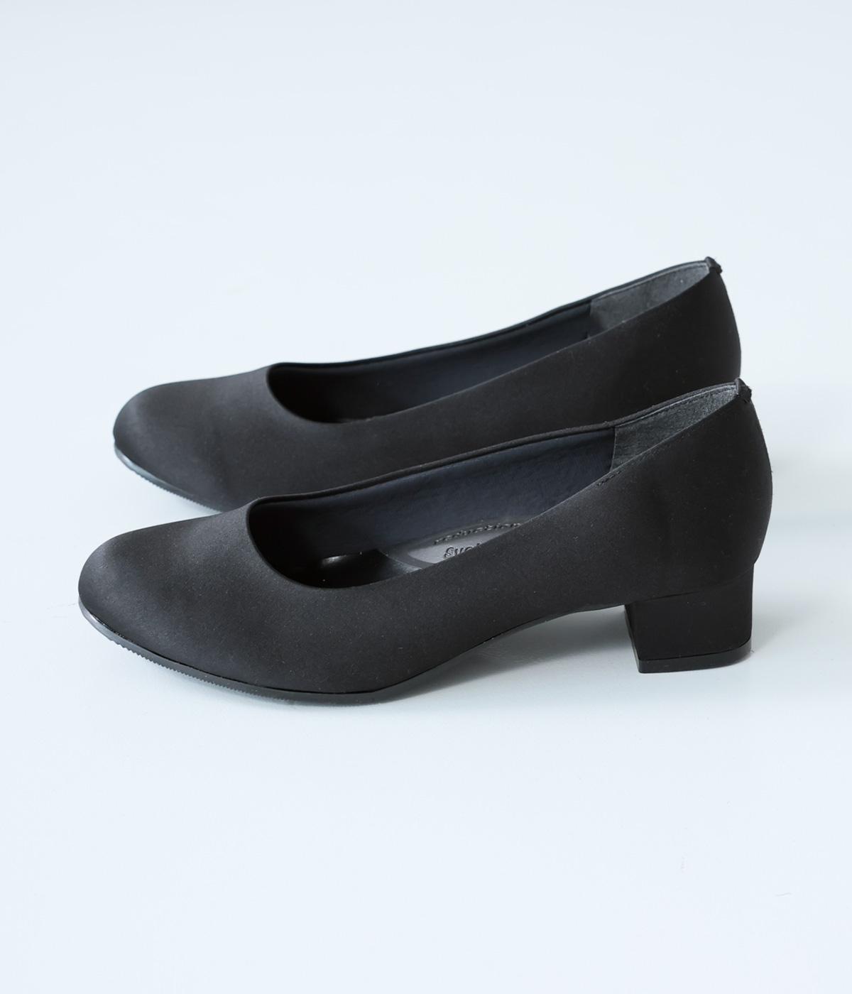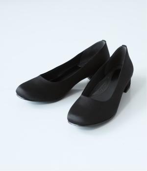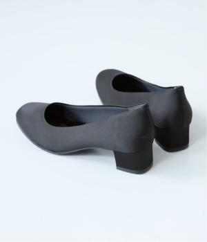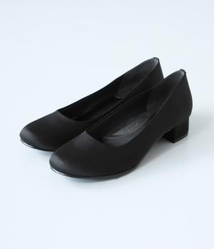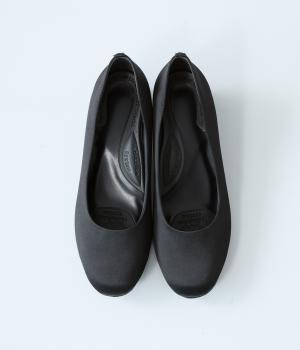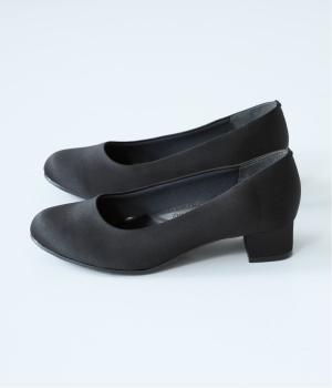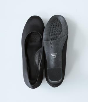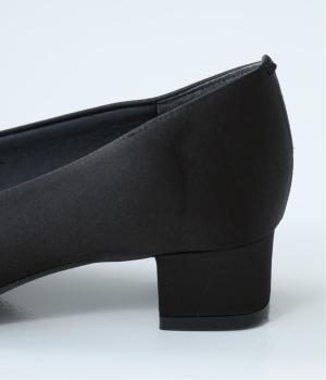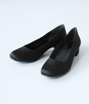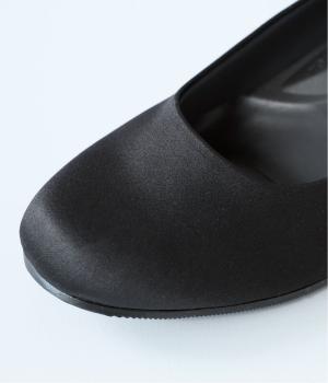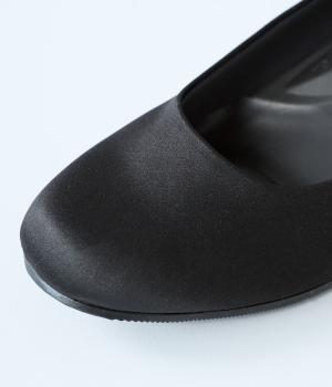 上品なサテン素材を使用。しなやかな光沢があり、フォーマルなシーンにも最適です。クッション性のあるインソールを採用し、長時間履いても疲れにくいのも◎。撥水加工で雨の日も安心です。