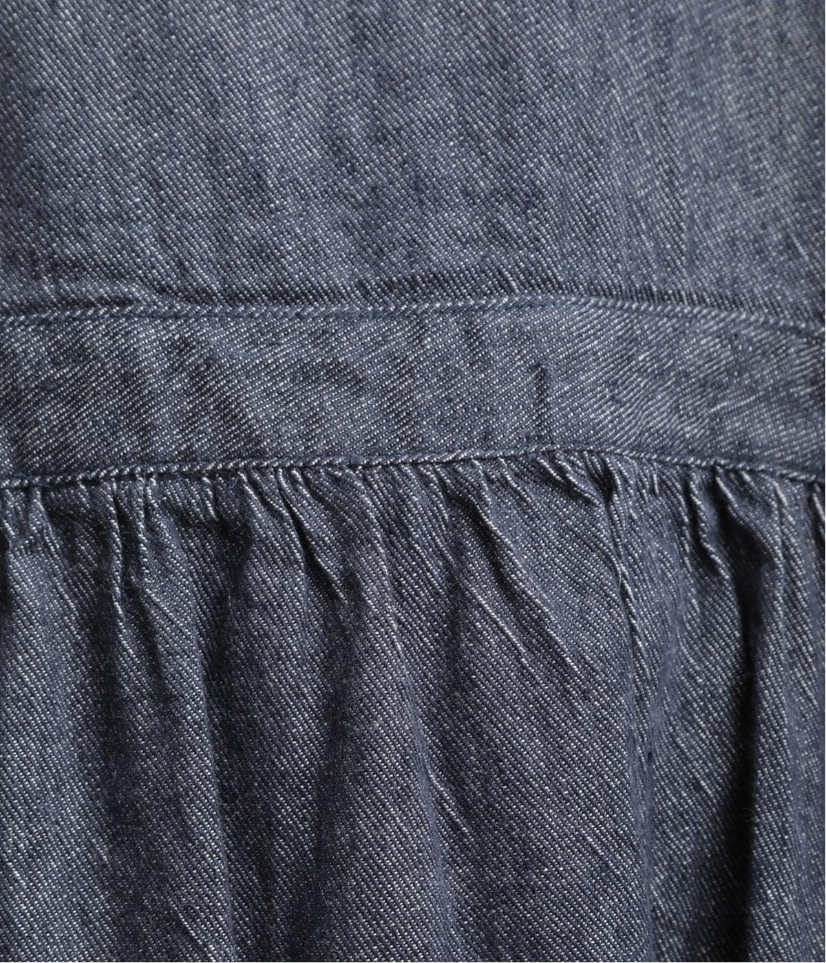 コットンリネンをデニム仕立てにした、やわらかな風合いとほどよいハリをあわせ持つ生地です。ネップが素朴な表情を添え、さりげない奥行きを演出。ナチュラルなシワ感がリラックスした印象をつくり、着るほどになじむ素材です。