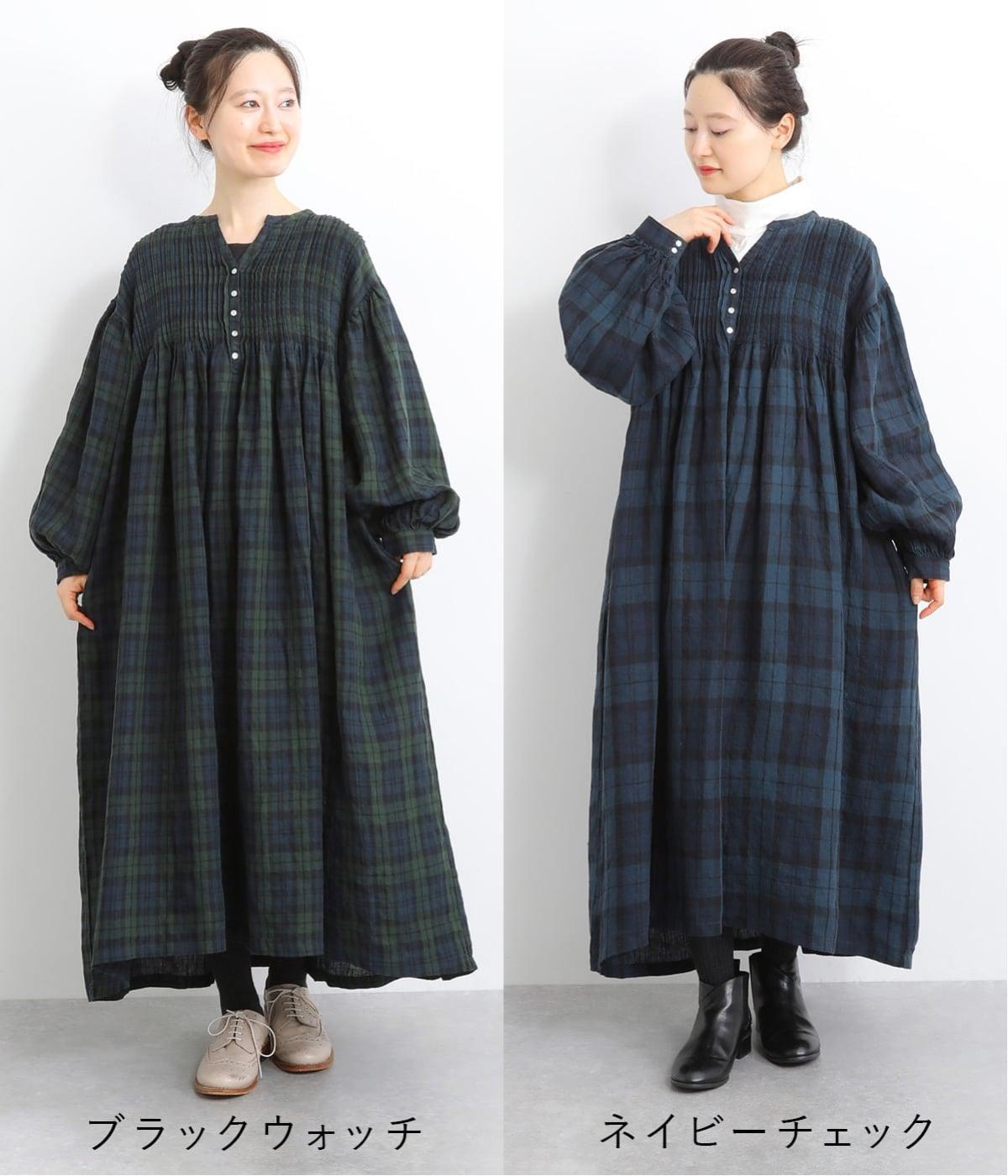 14番手リネン細ピンタックワンピース