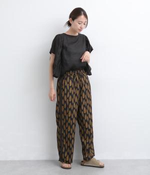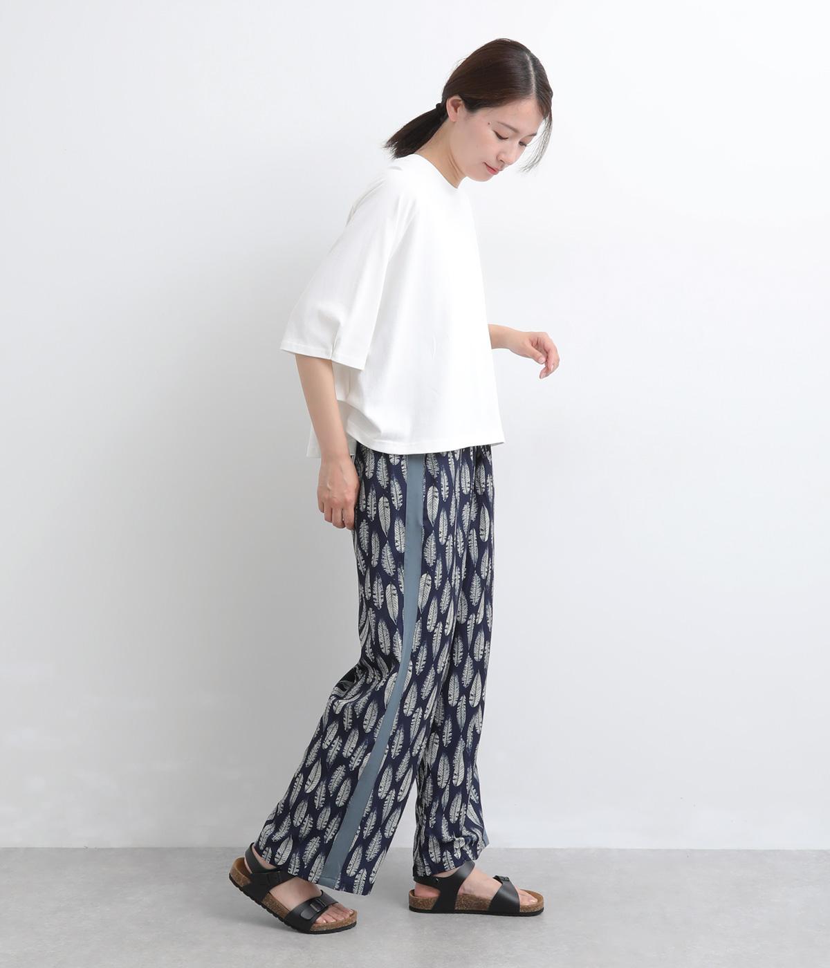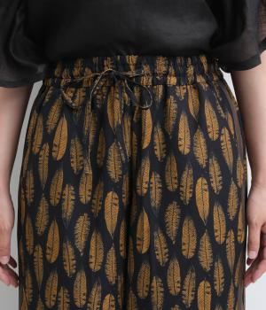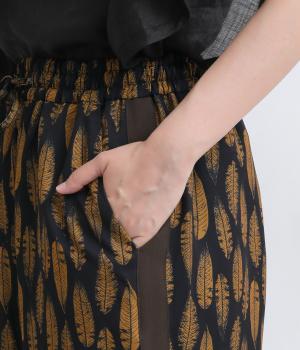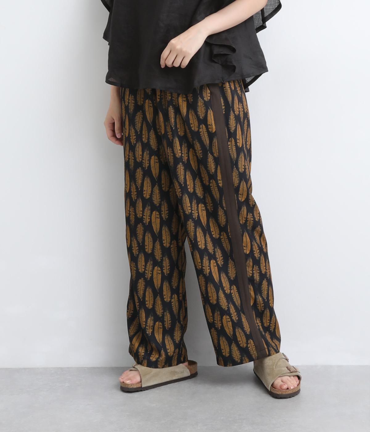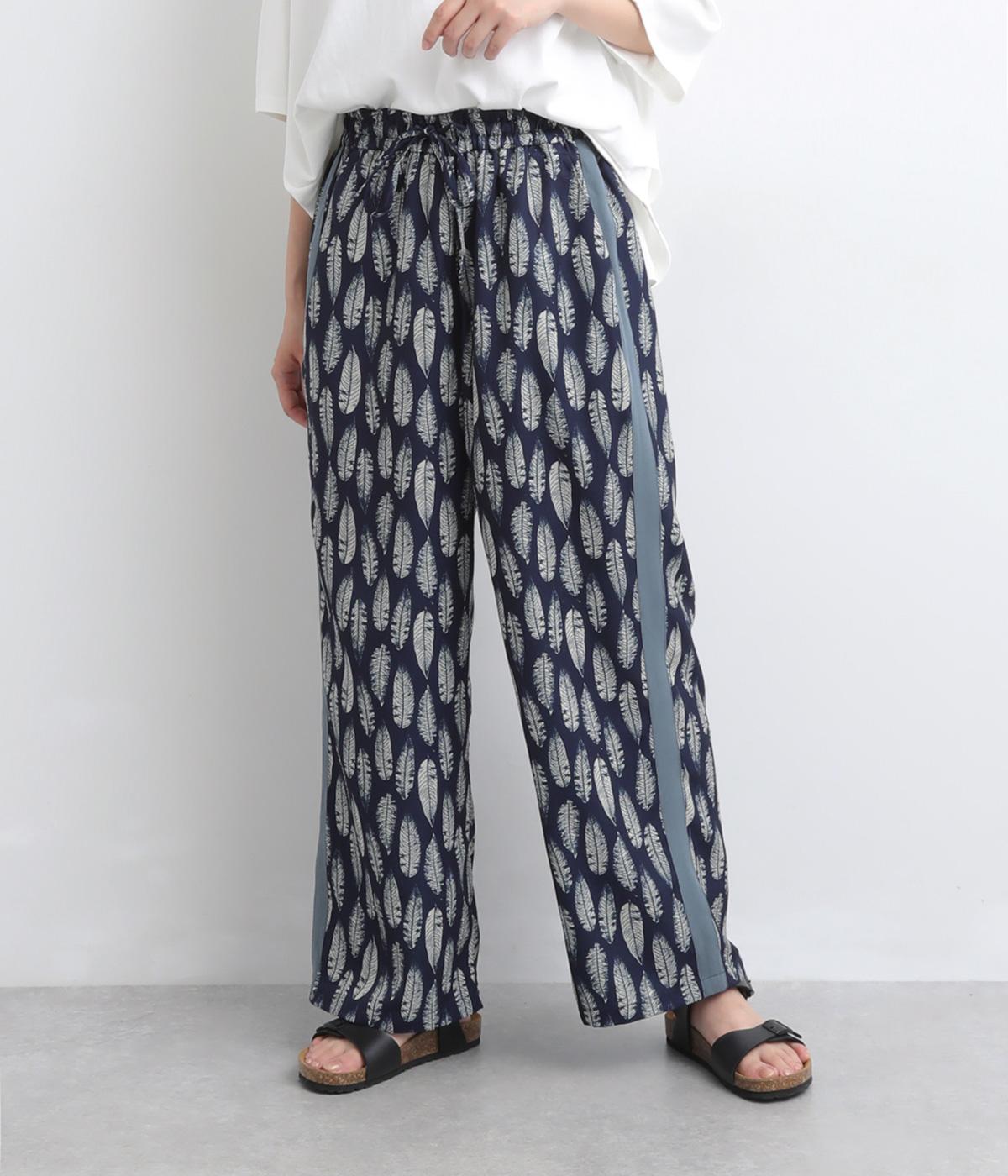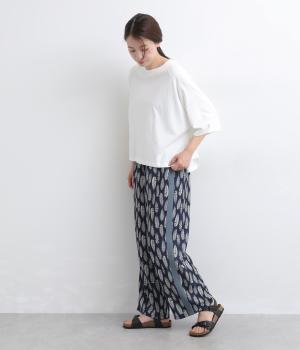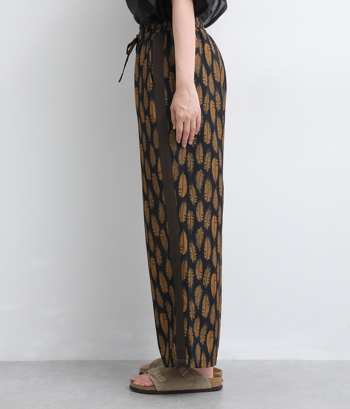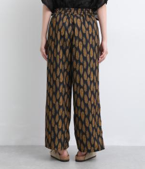 オリジナルのアフリカン柄プリントが着こなしのインパクトになるパンツ。セミワイドシルエットでトップス合わせしやすく、大人のこなれ感を演出。サイドに配色ラインを入れることで総柄も間延びせずメリハリを。ウエスト総ゴム&調整紐つきです。