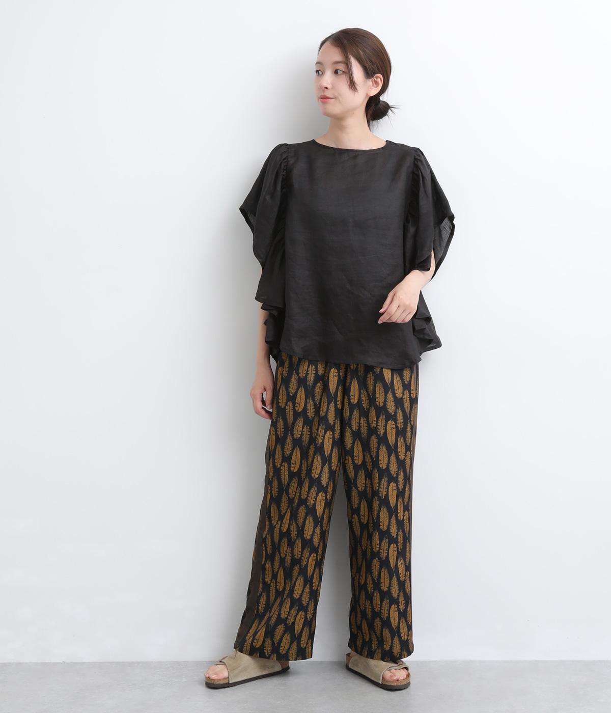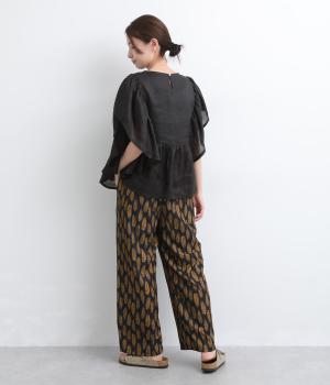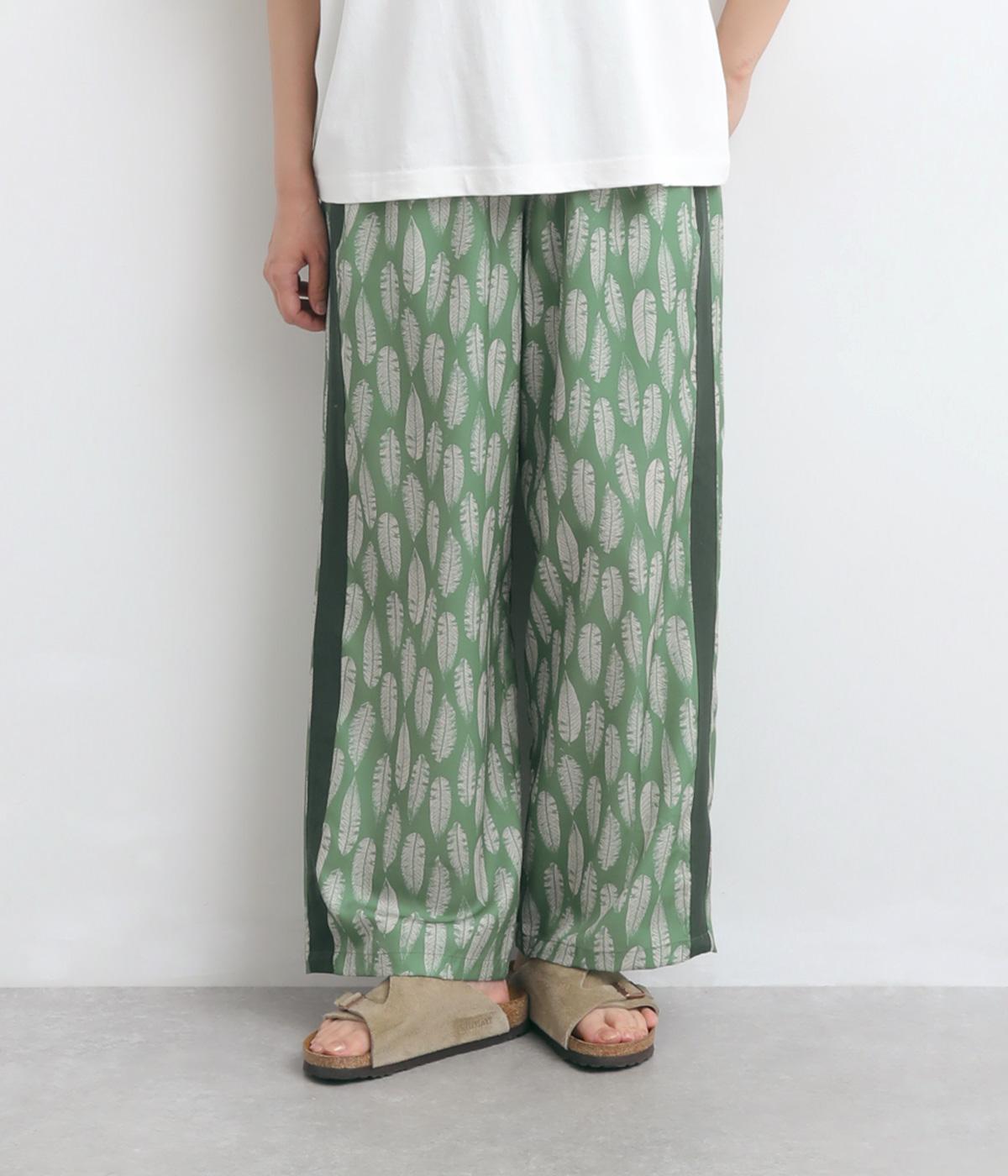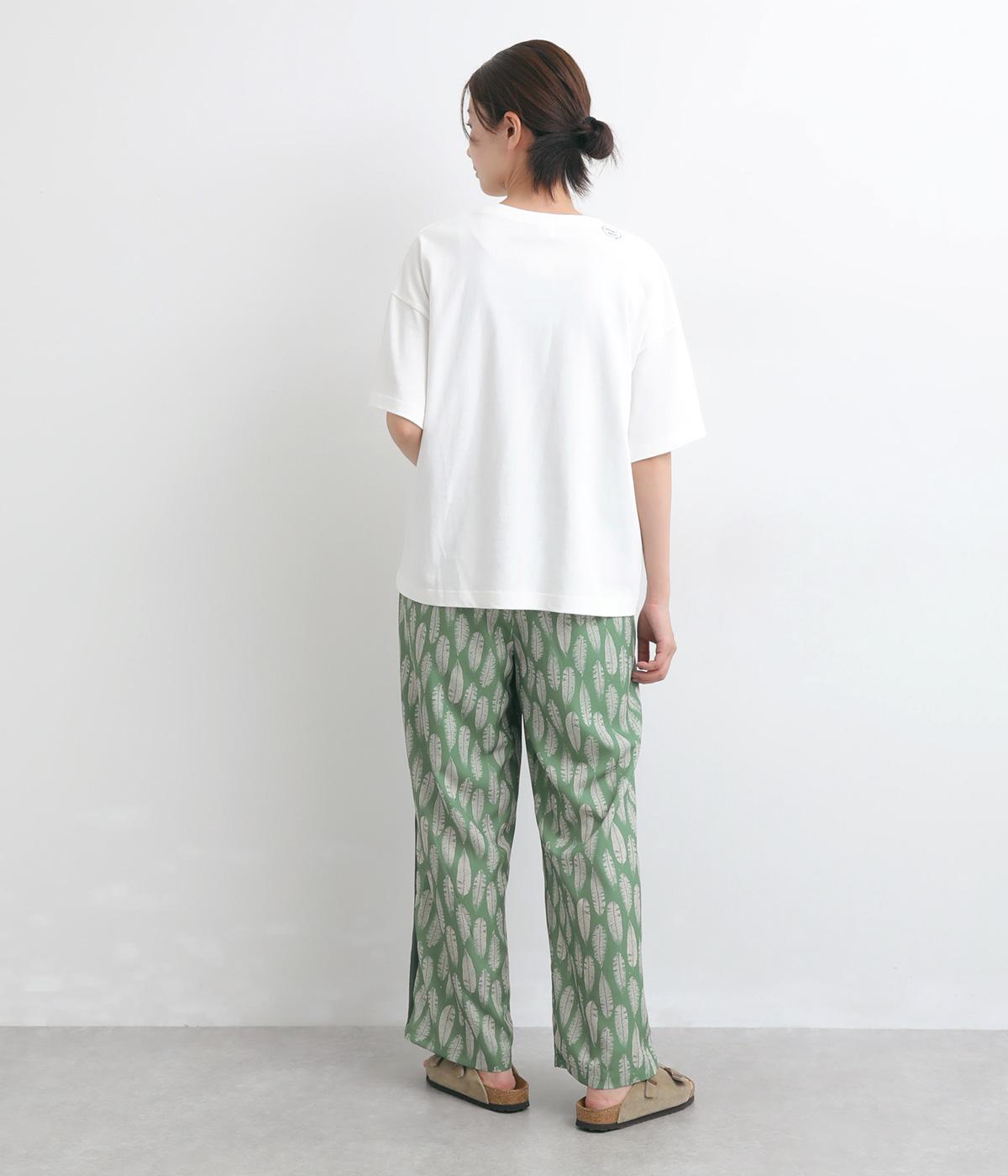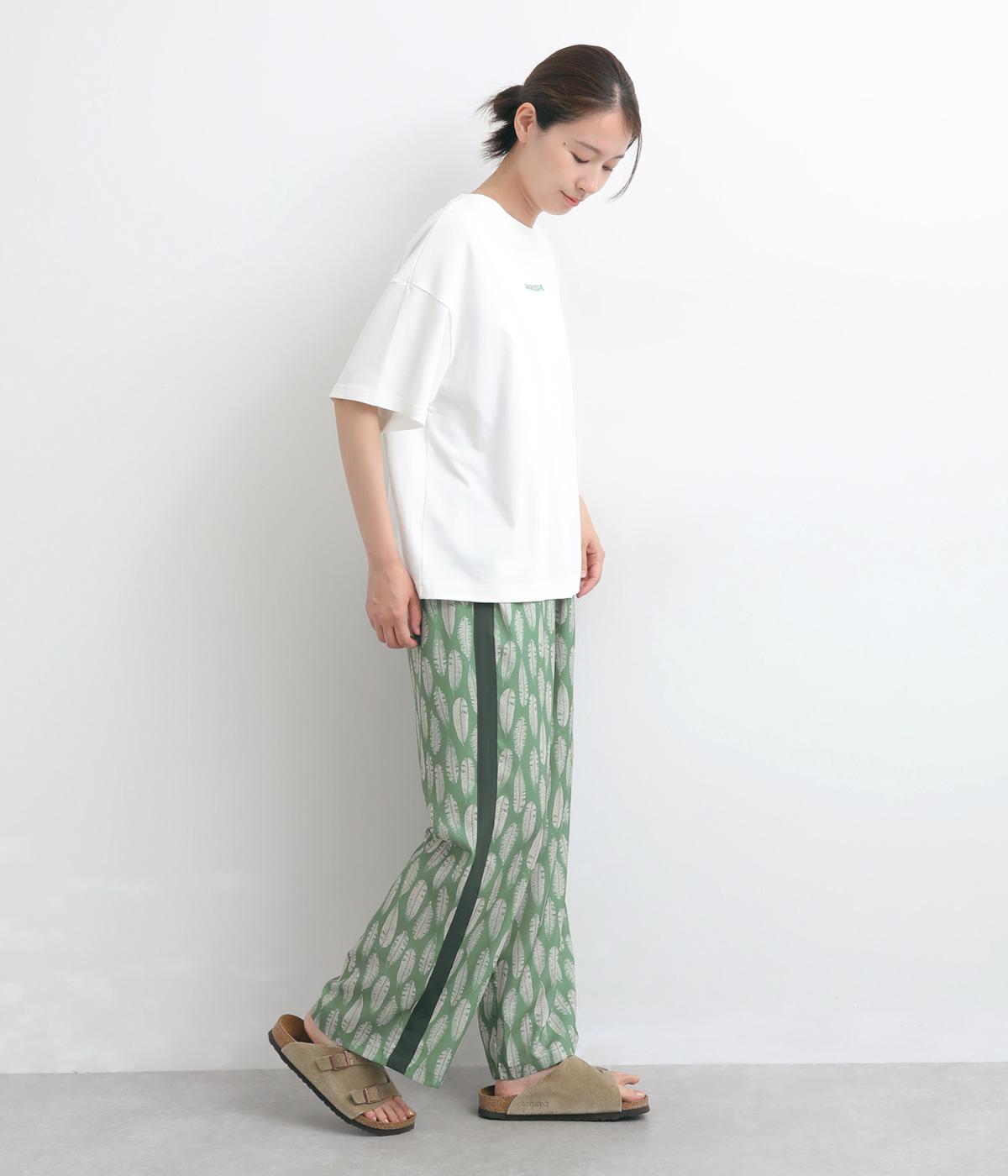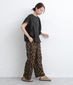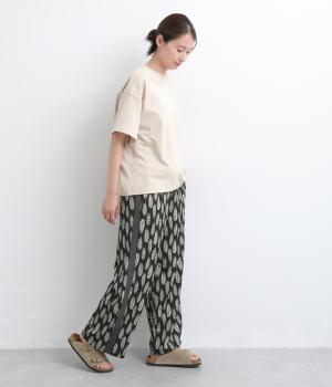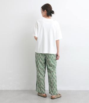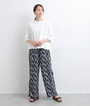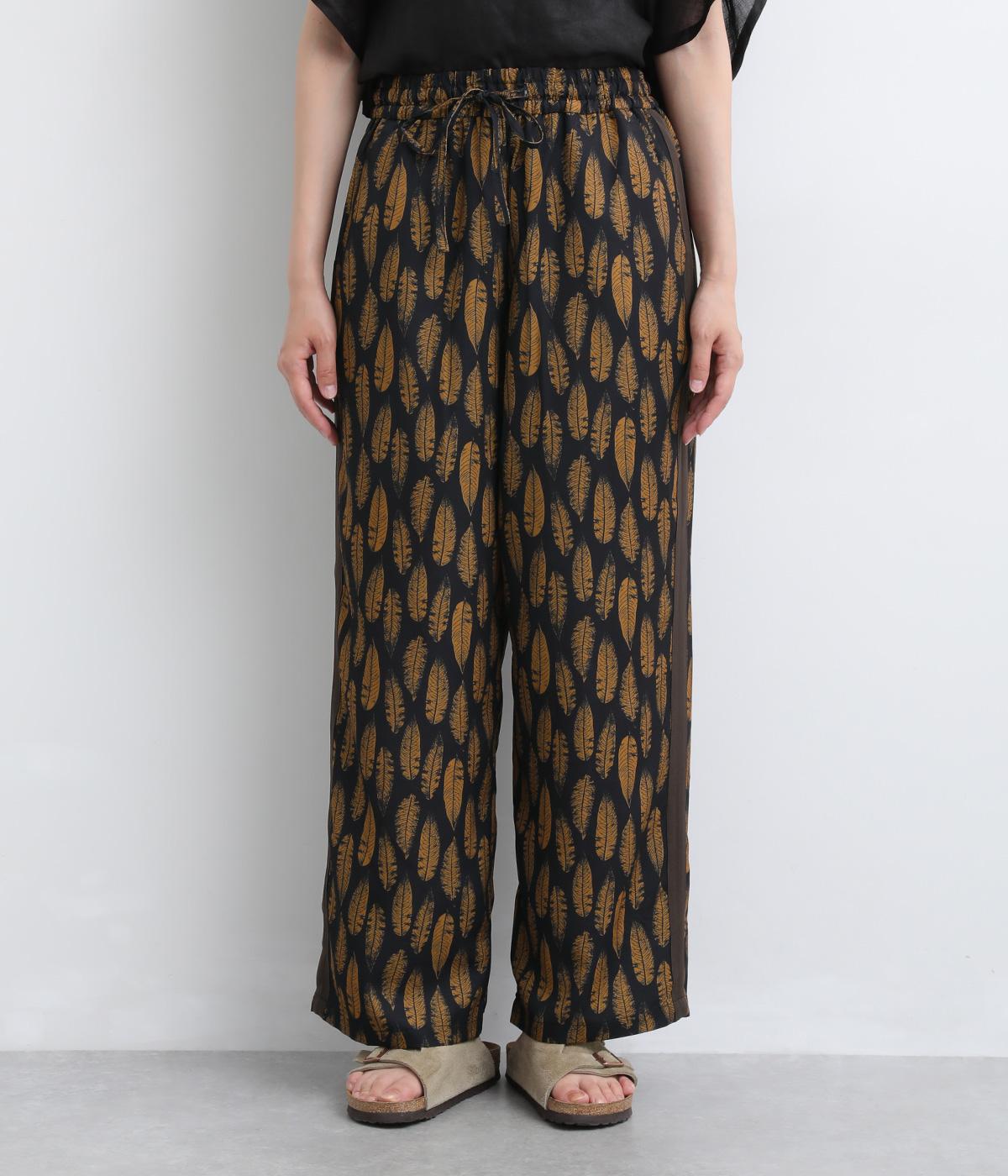 オリジナルのアフリカン柄プリントが着こなしのインパクトになるパンツ。セミワイドシルエットでトップス合わせしやすく、大人のこなれ感を演出。サイドに配色ラインを入れることで総柄も間延びせずメリハリを。ウエスト総ゴム&調整紐つきです。