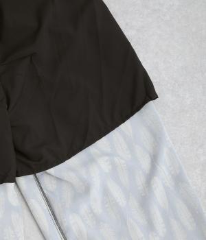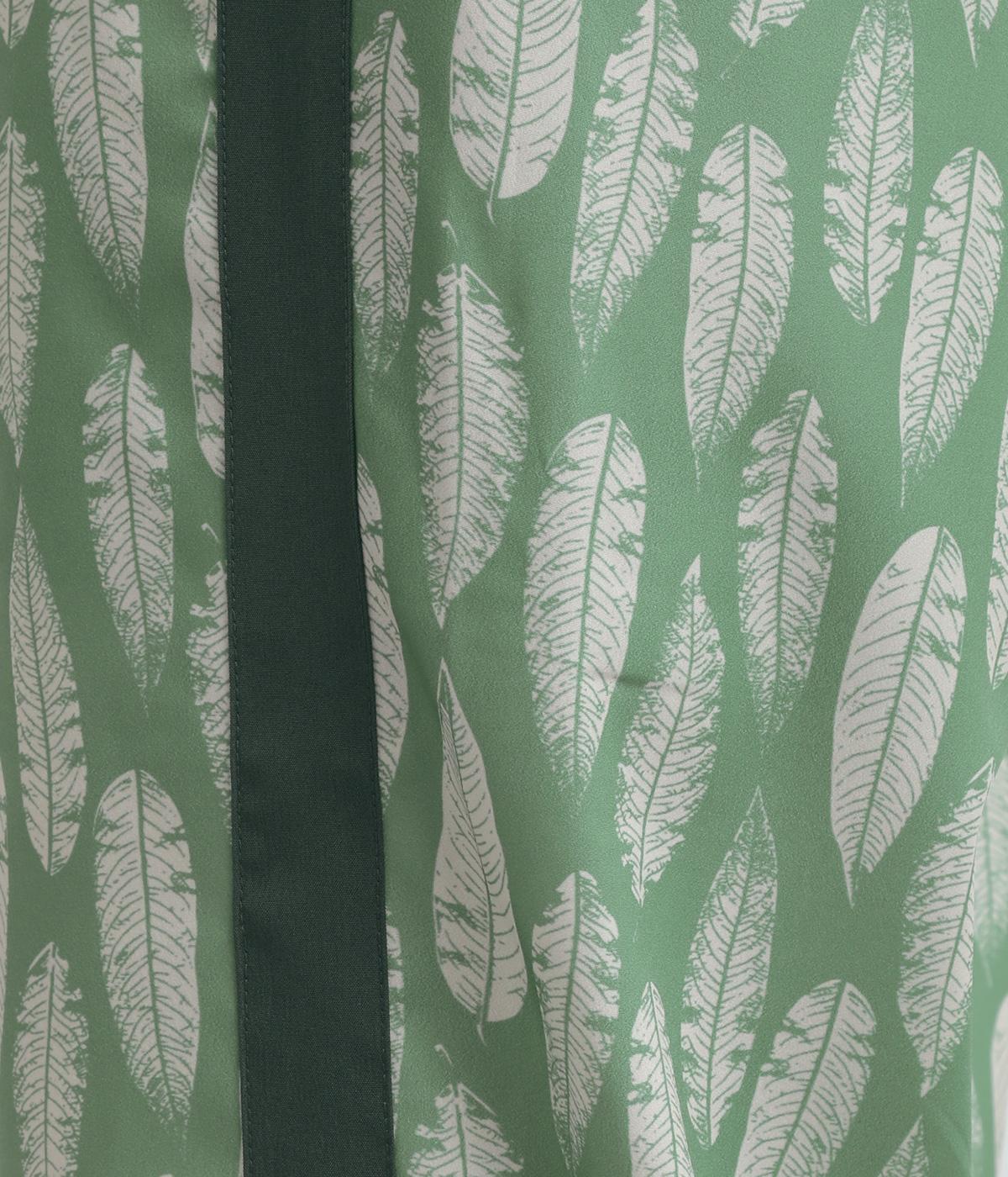 光沢をおさえたさらりとした表面感が特徴の生地を使用。総柄でも派手見えせず品のいい印象を与え、シワになりにくいのでデイリーに活躍。ひざ部分まで裏地つき。