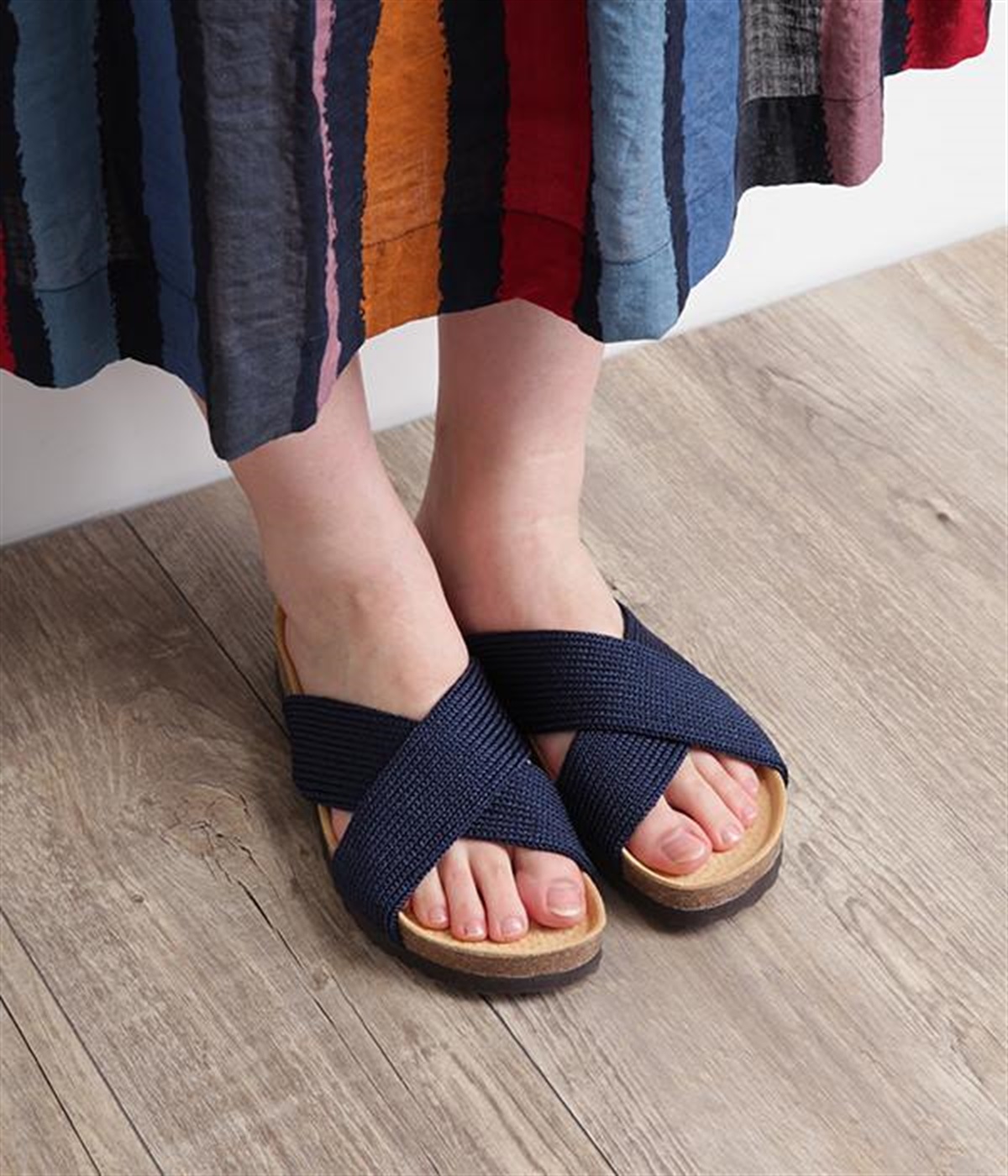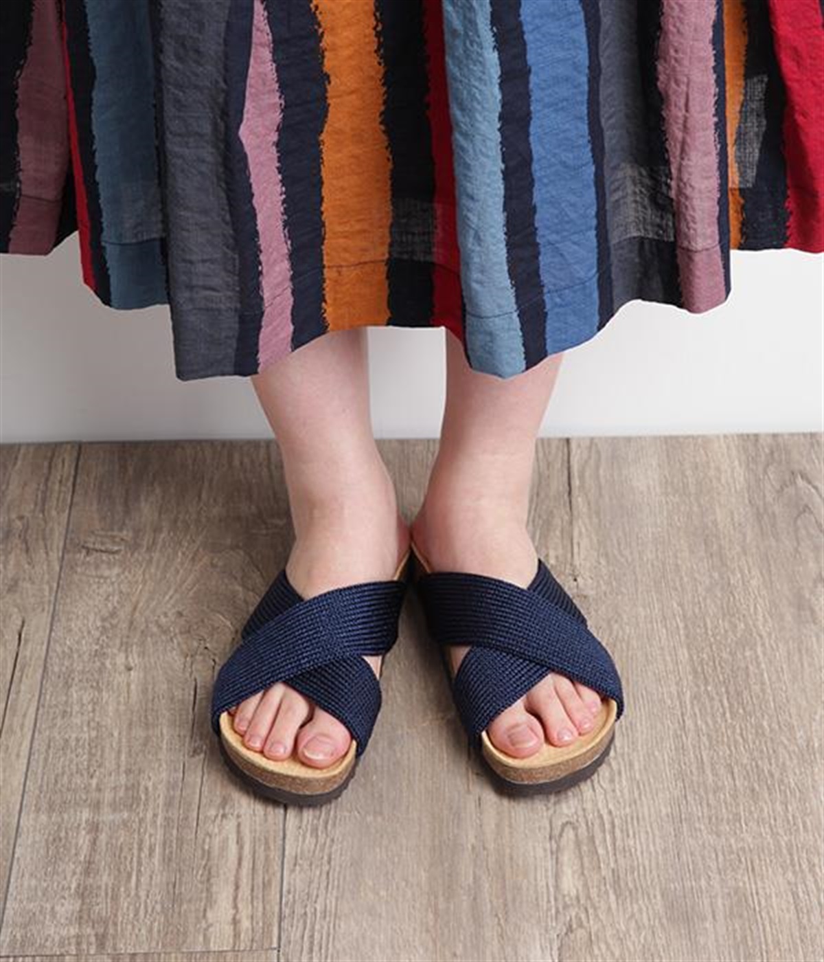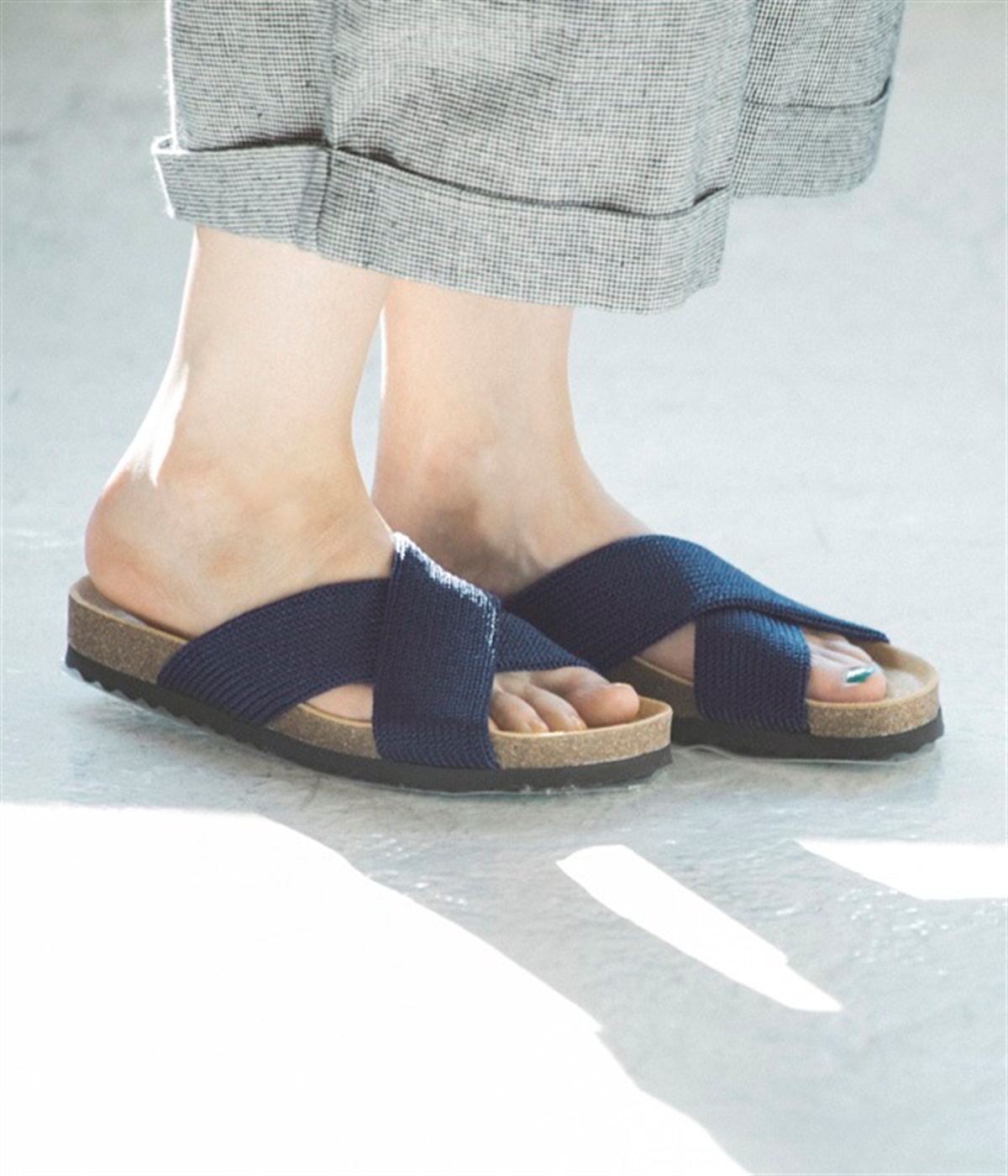 天然コルクと豚革の2重構造になったインソールと波型の靴底が、適度なクッション性で衝撃を和らげてくれます。脚や膝・腰に掛かる負担を軽減してくれるので、サンダルでも歩行をしっかりサポートしてくれます。安定感のある太めのクロスバンドデザインで、絶妙なバンドカラーが大人なカジュアルコーデにマッチします。汚れがひどい際は丸洗い可能なのも嬉しいポイントです。