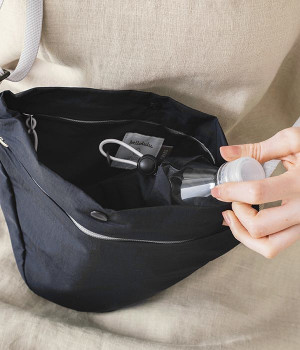 シンプルなデザインで、年齢や性別を問わず愛用できるショルダーバッグです。軽量で使い勝手がよく、軽快なお出かけスタイルが完成。三角のかわいらしいフォルムが、着こなしにアクセントをプラスします。環境に配慮されたリサイクルナイロン素材には、撥水加工が施されているので雨の日も安心。お散歩や旅行時のサブバッグとしてなど、幅広いシーンで活躍してくれます。
