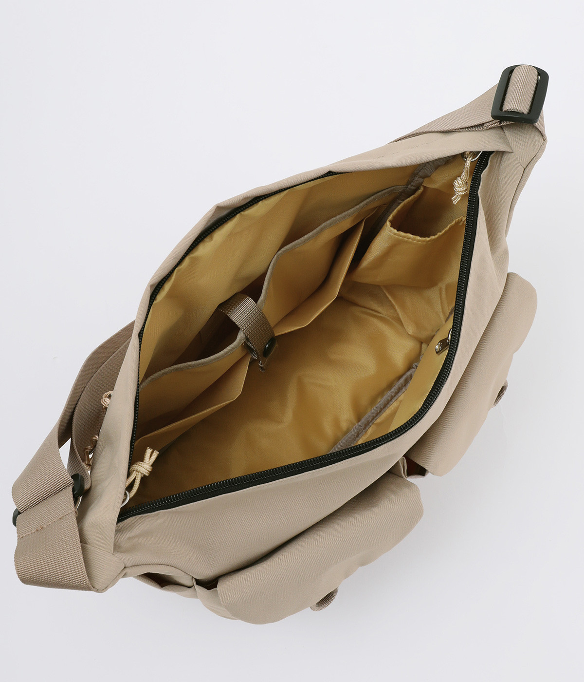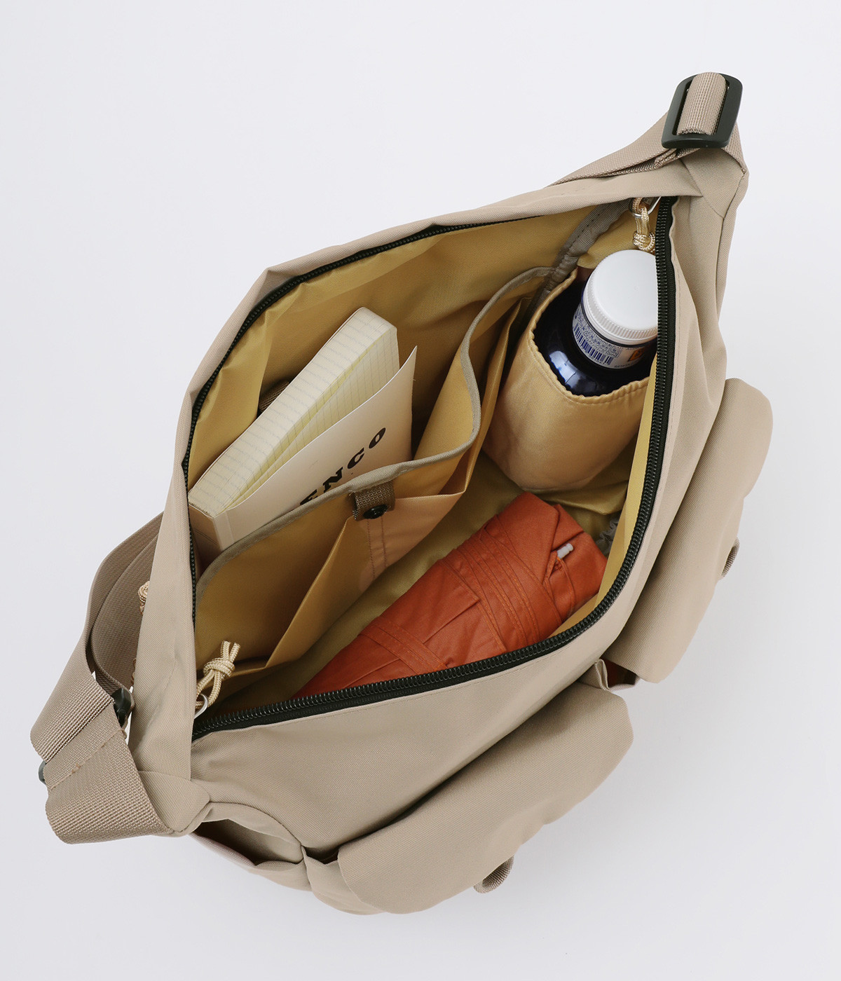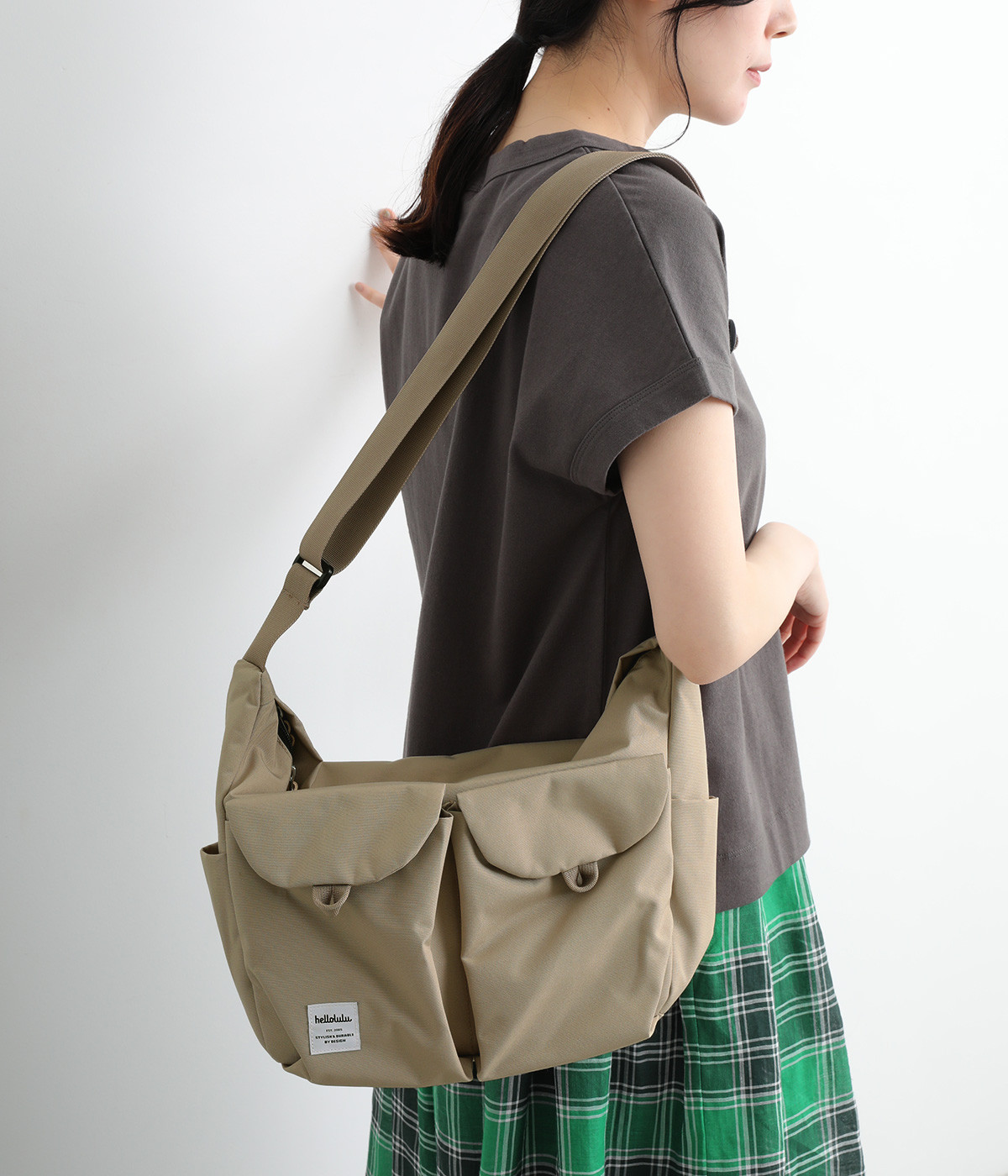 大きめのフロントポケットが特徴のクロスボデイバッグです。外側にも内側にもポケットがたくさんあるので荷物が整理しやすく使い勝手の良さが◎。ふだん使いはもちろん、通勤や週末のちょっとした遠出のお出かけにもおすすめです。