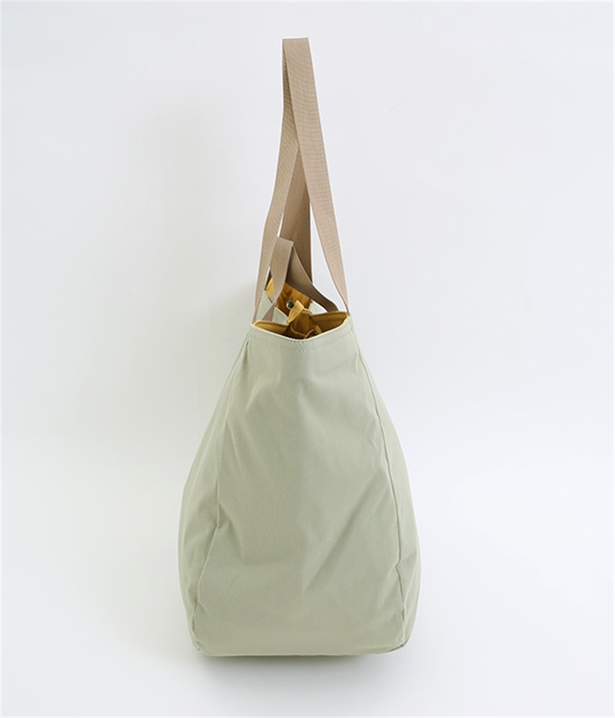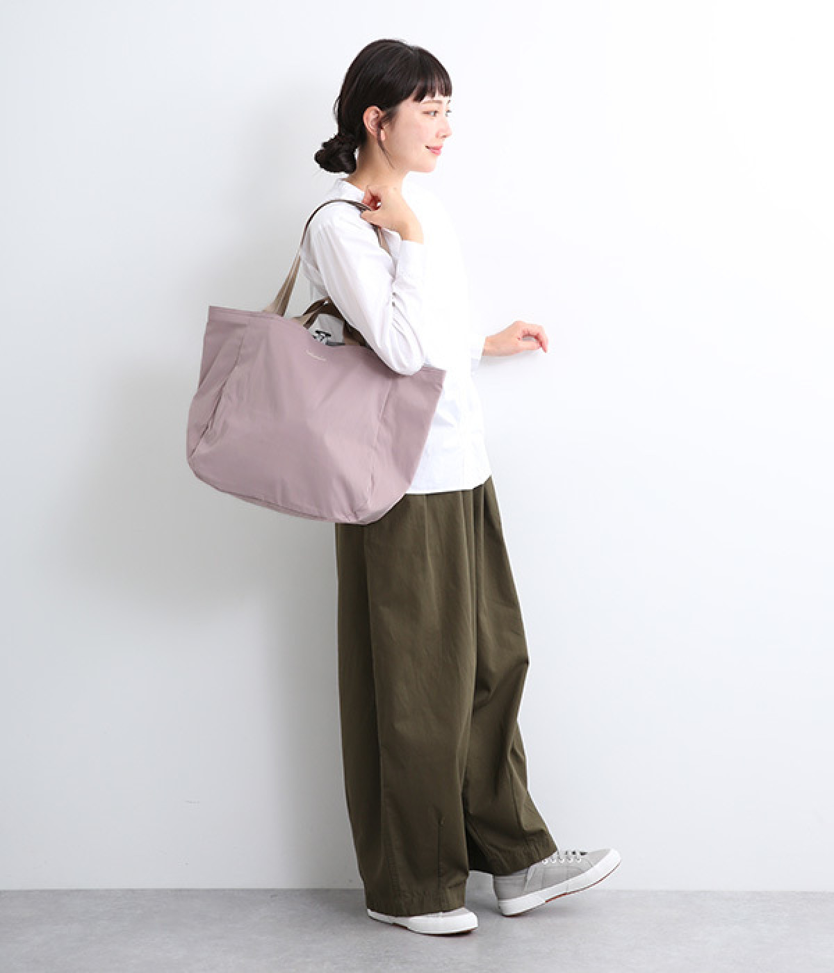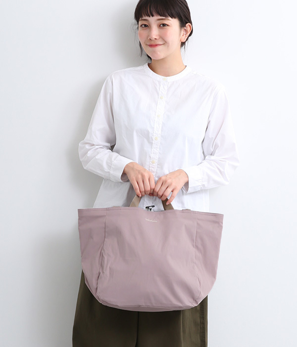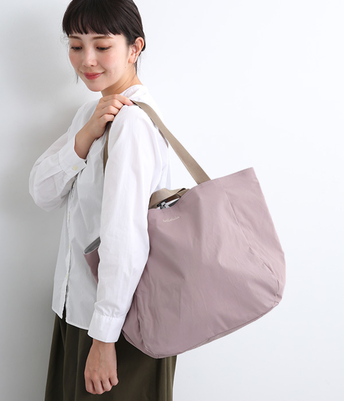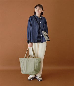 環境に配慮したリサイクルポリエステルを使用。さらりとした軽やかな生地感で持ちやすく、デイリー使いに重宝します。