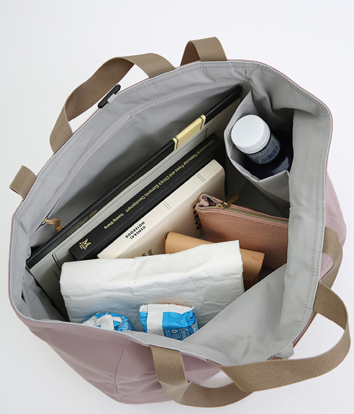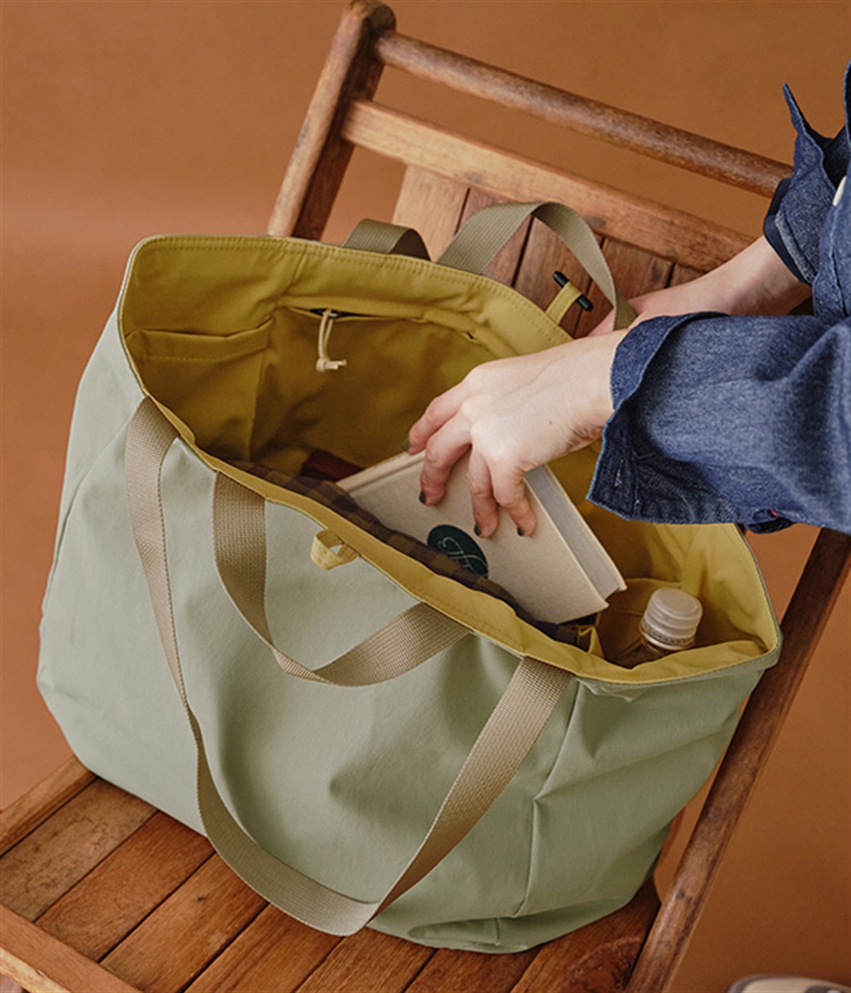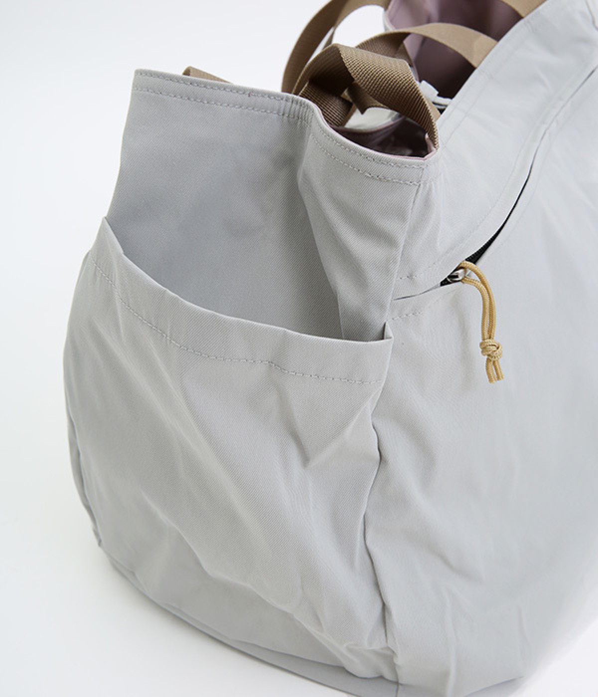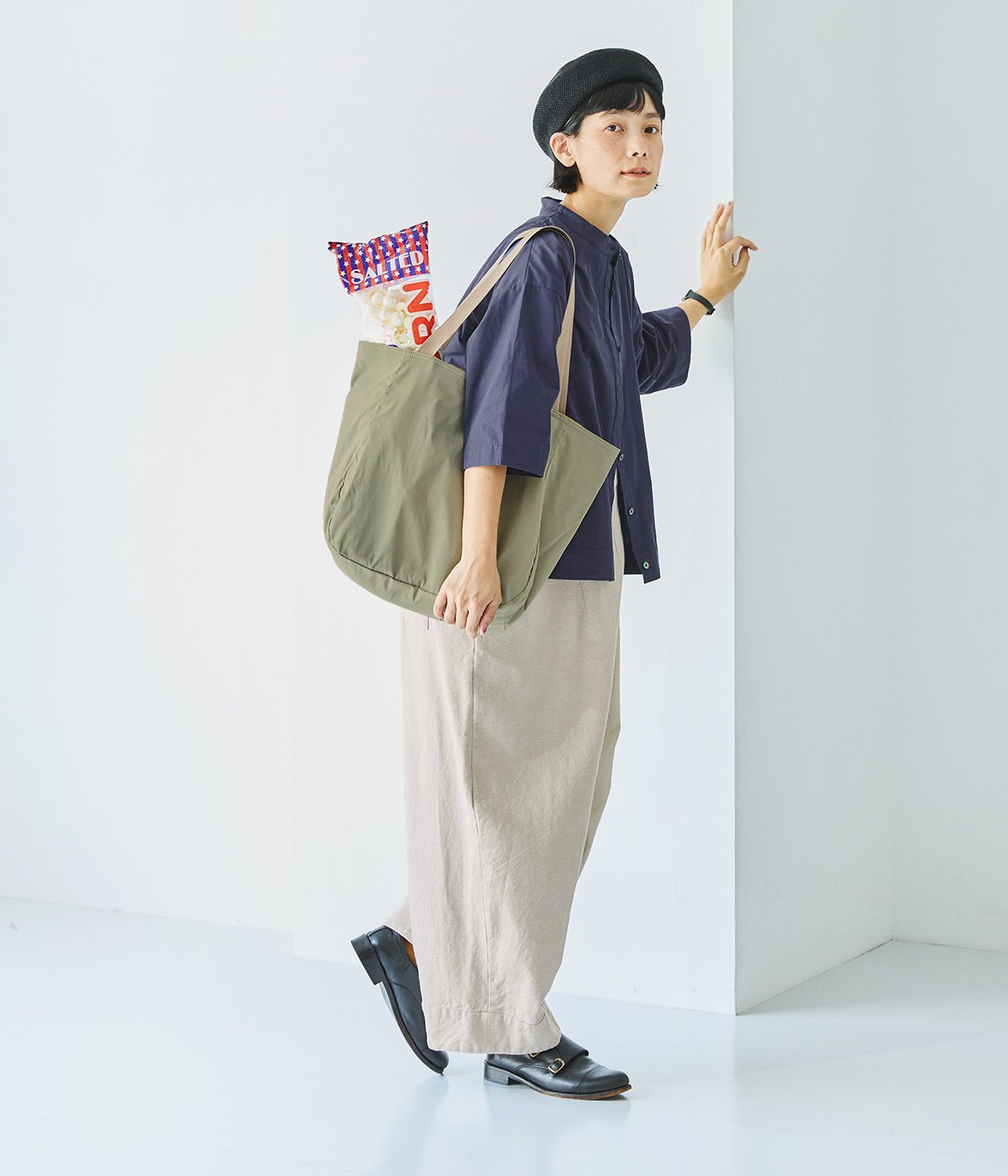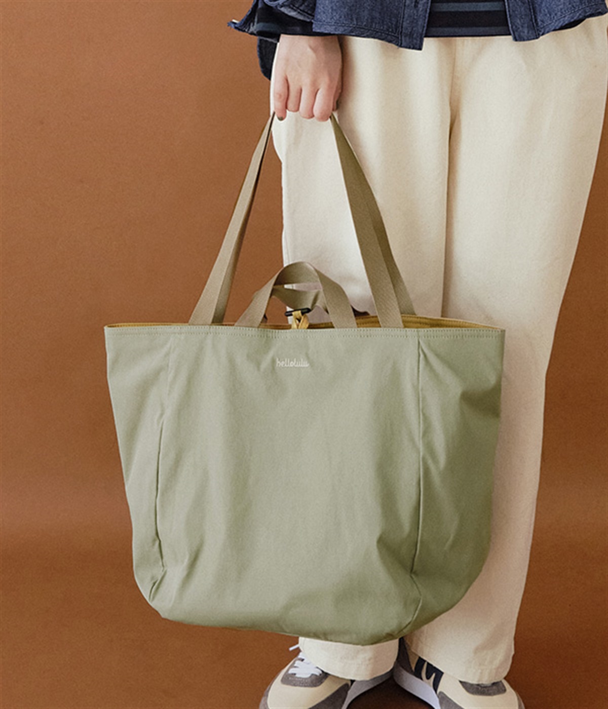環境に配慮したリサイクルポリエステルを使用。さらりとした軽やかな生地感で持ちやすく、デイリー使いに重宝します。