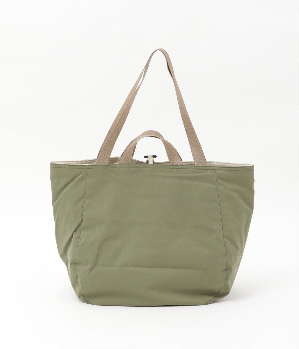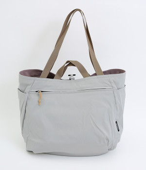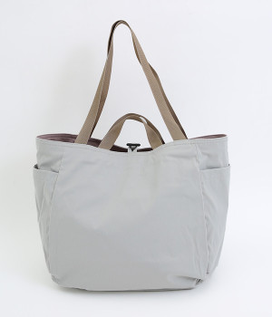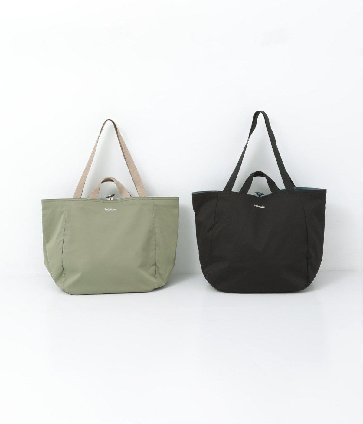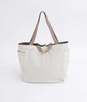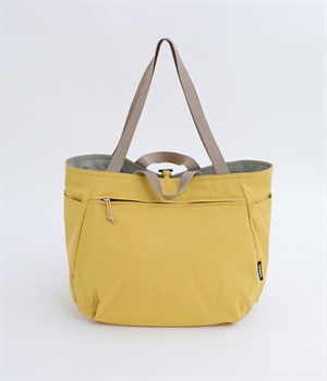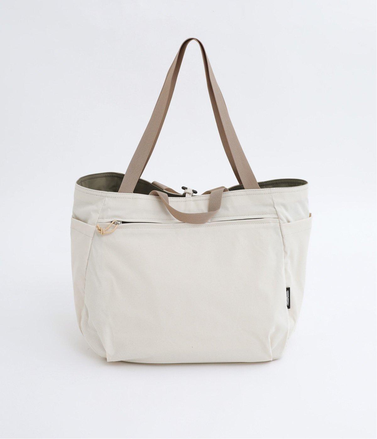 2種類のカラーがたのしめるリバーシブル仕様のトートバッグ。デイリーにはもちろんアウトドアシーンにもぴったりな大容量サイズです。ファスナー仕様を含めた3つのポケットを配しており、水筒や小物の整理整頓に便利。長さの異なるハンドルつきで肩掛けもできます。