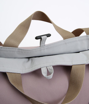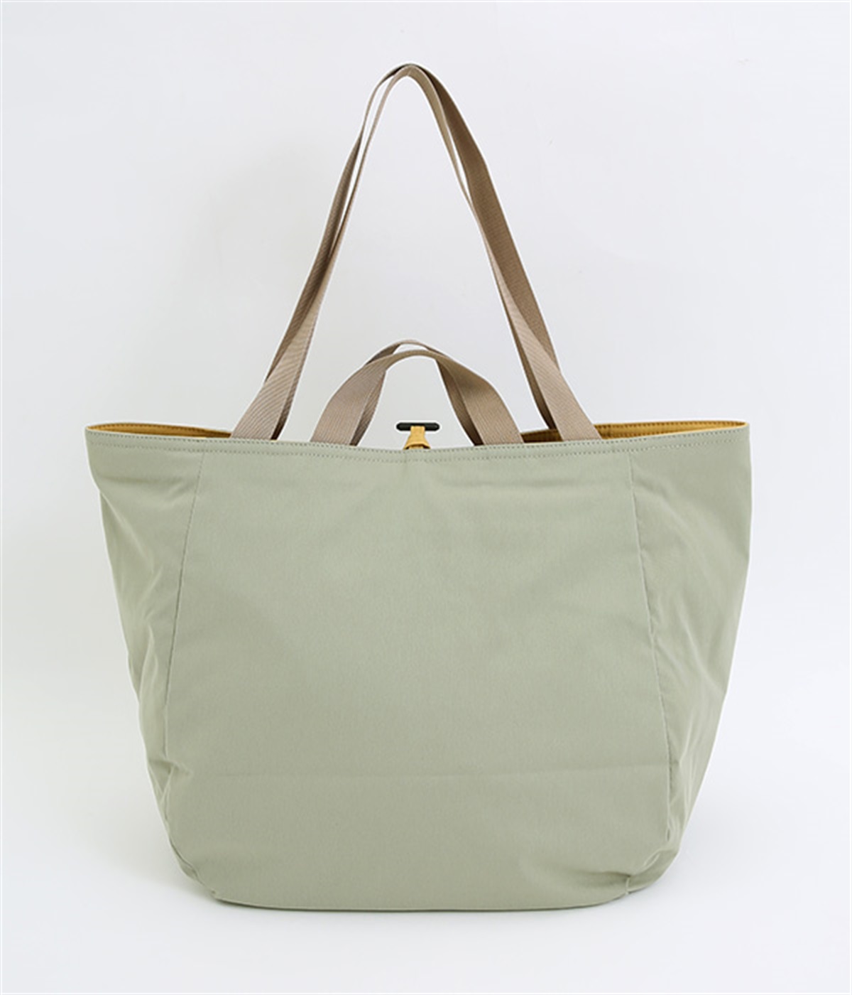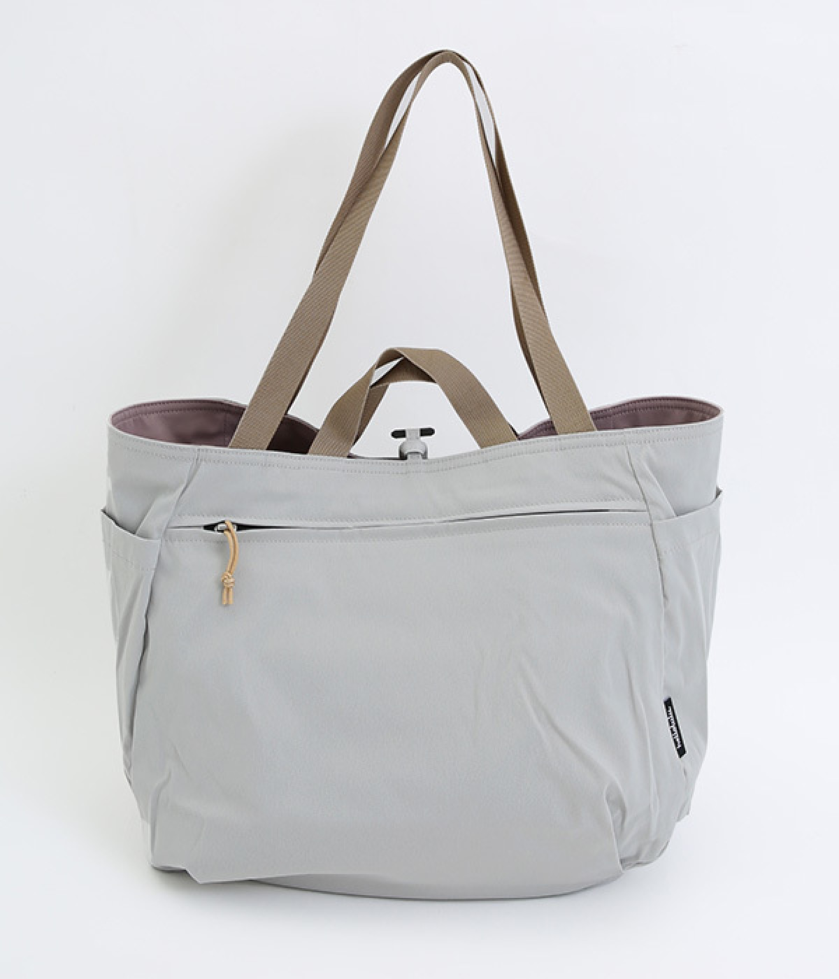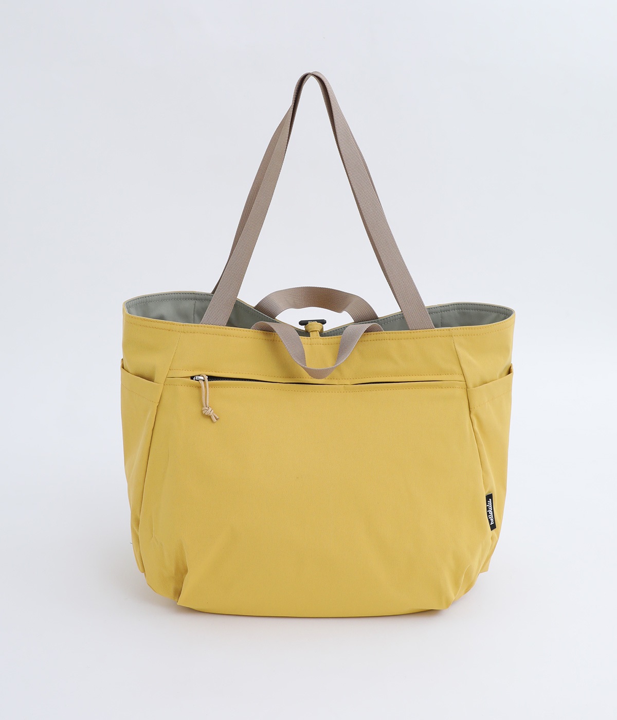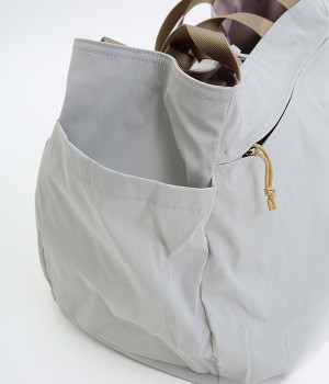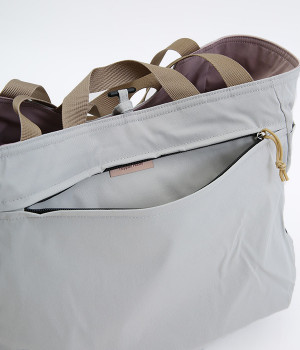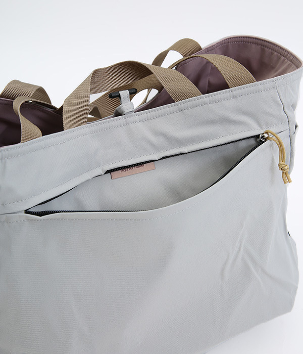 2種類のカラーがたのしめるリバーシブル仕様のトートバッグ。デイリーにはもちろんアウトドアシーンにもぴったりな大容量サイズです。ファスナー仕様を含めた3つのポケットを配しており、水筒や小物の整理整頓に便利。長さの異なるハンドルつきで肩掛けもできます。