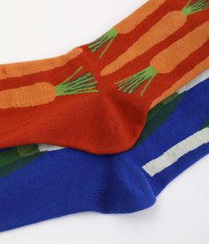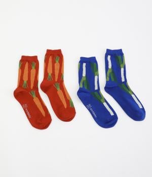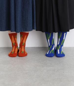 世の中のネギ好きとニンジン好きの声に応えた、ユーモアたっぷりなベジタブルソックスの登場。大胆に描かれていながらも意外とスタイリングになじみやすく、ポップなカラーも好評でアソビ心の詰まったワンポイントになります。