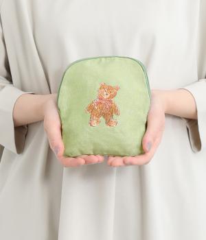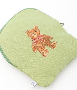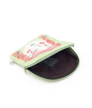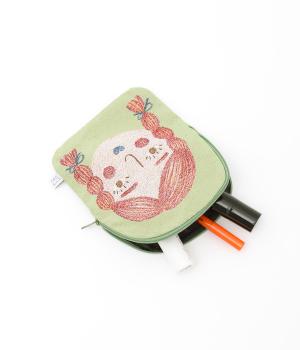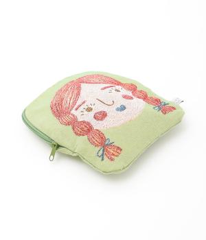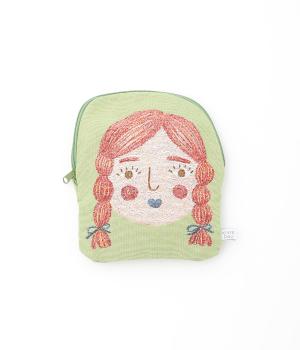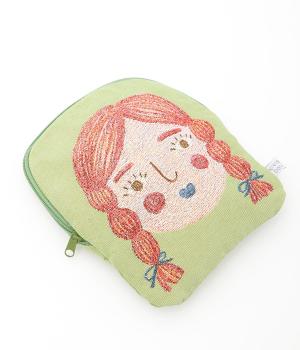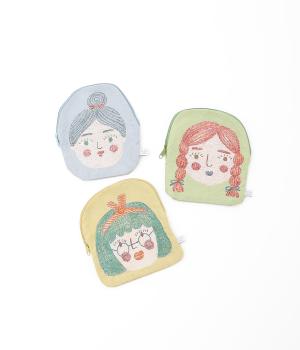 表は女の子のお顔、裏にはお気に入りアイテムがデザインされたキュートなポーチ。かばんに入れて持ち歩くのにもぴったりなコンパクトなサイズ感です。