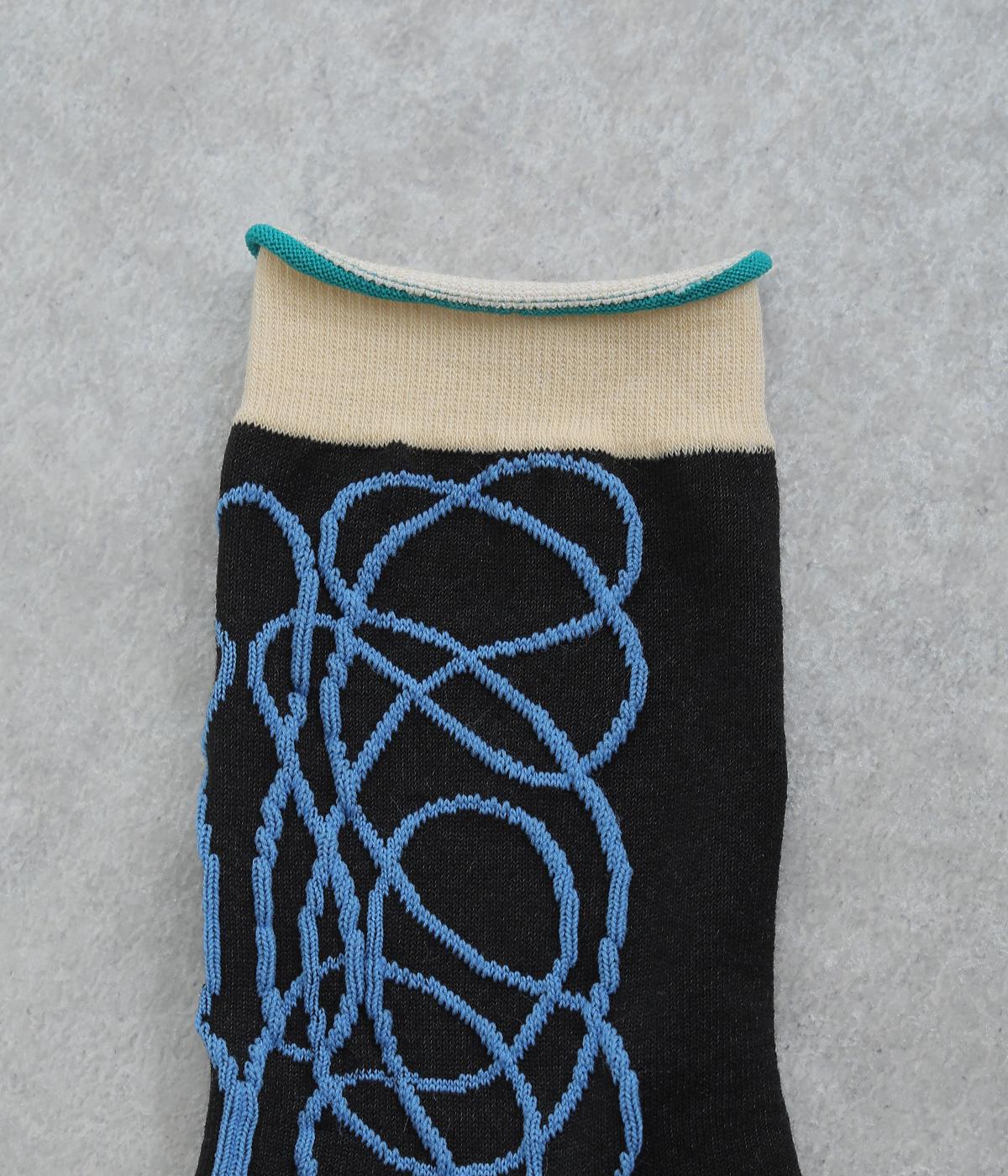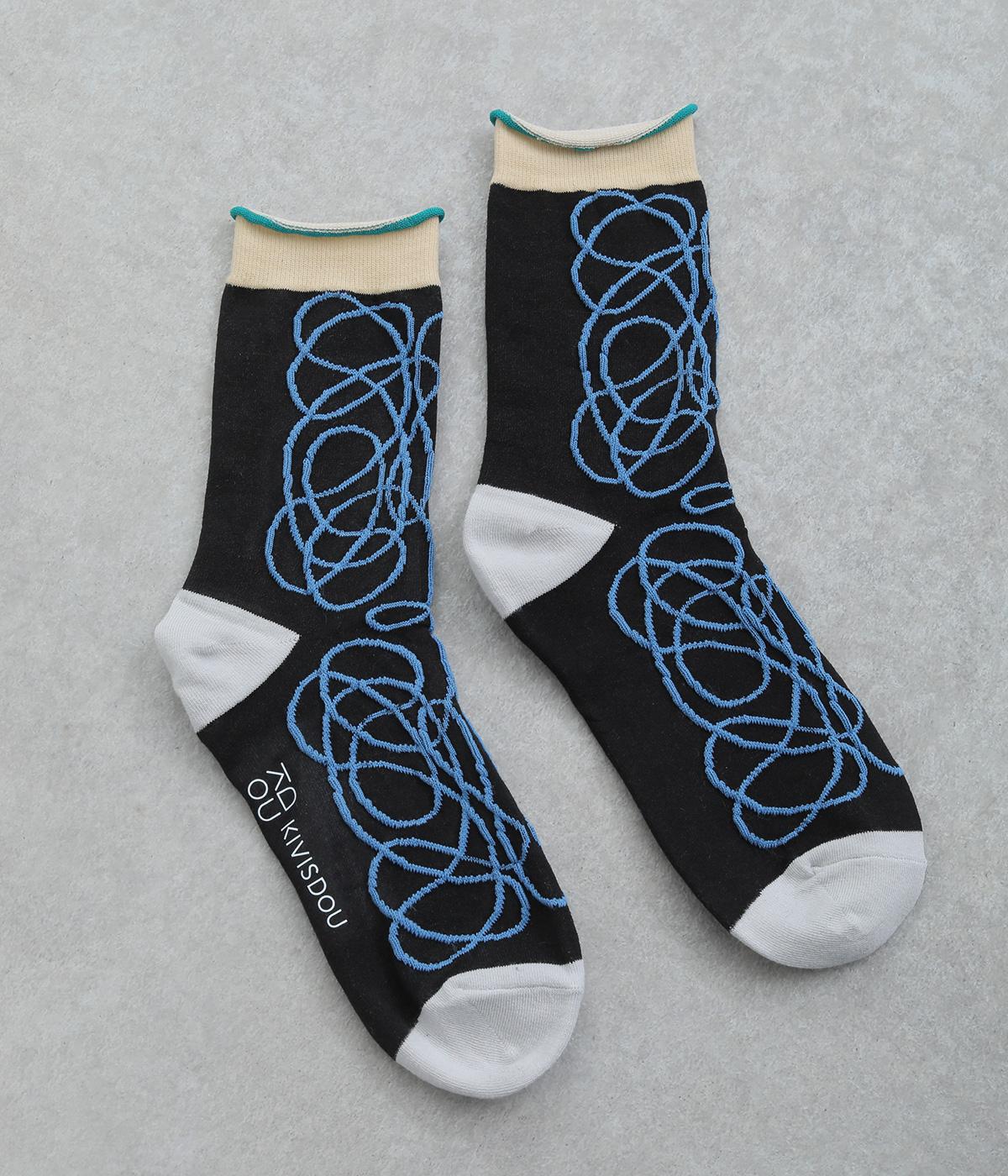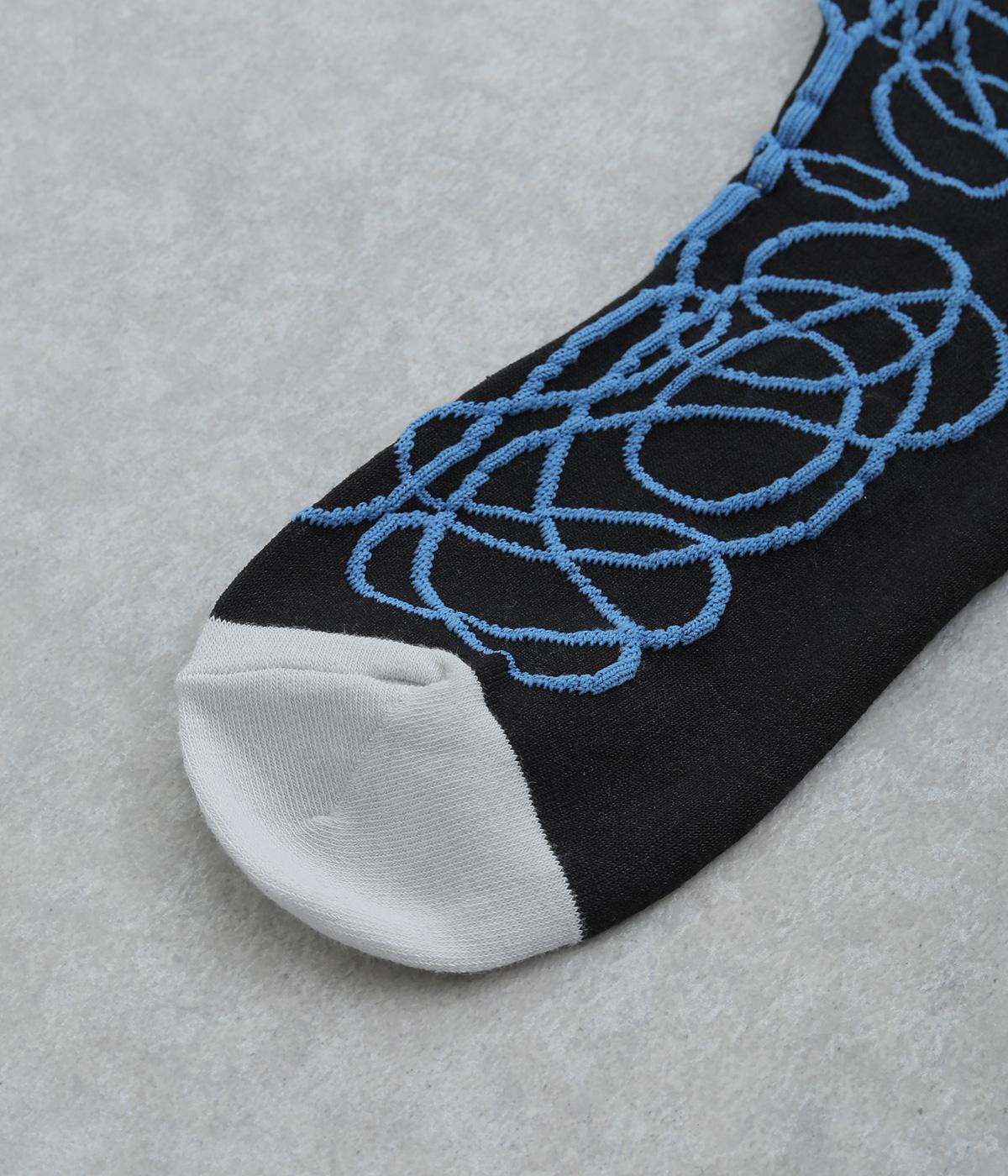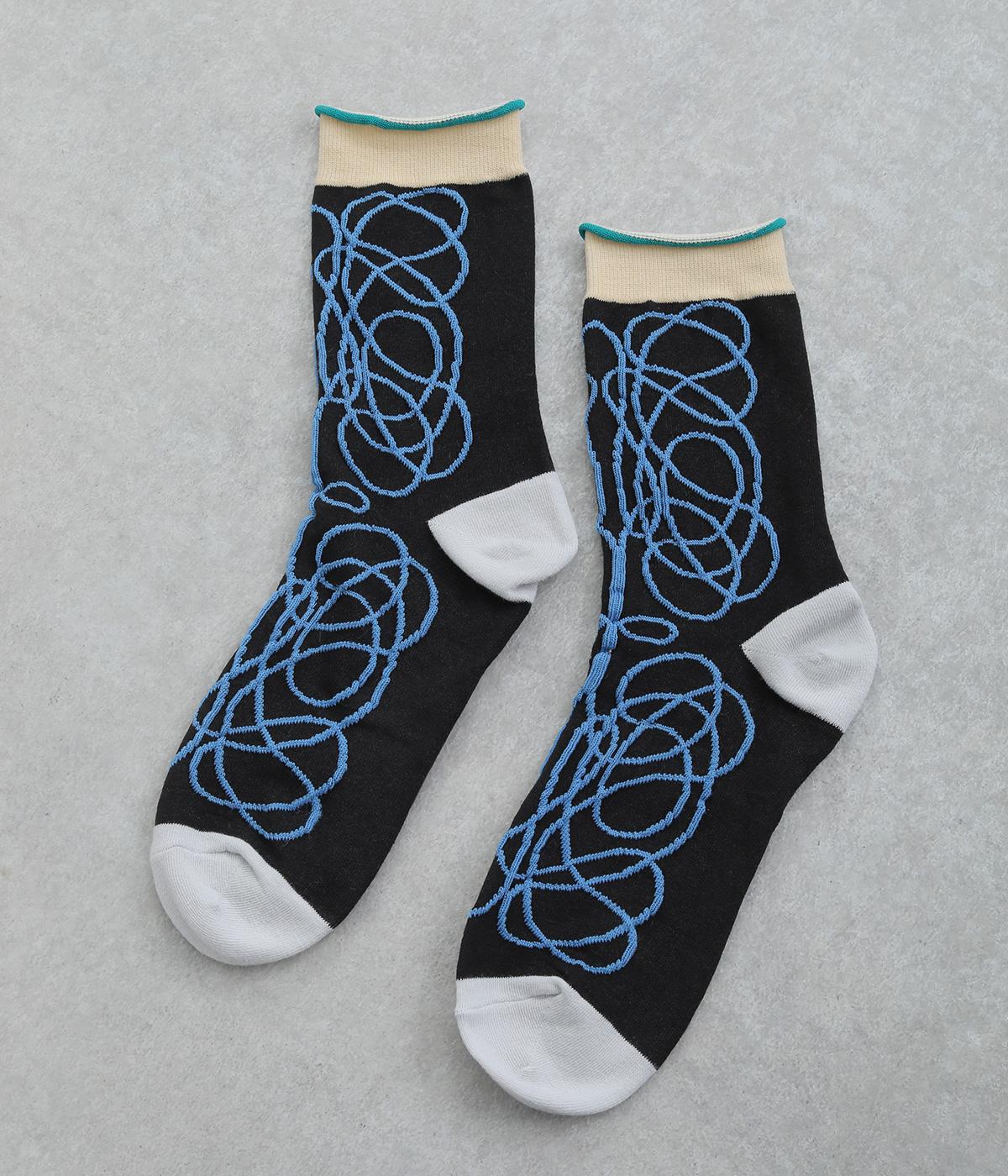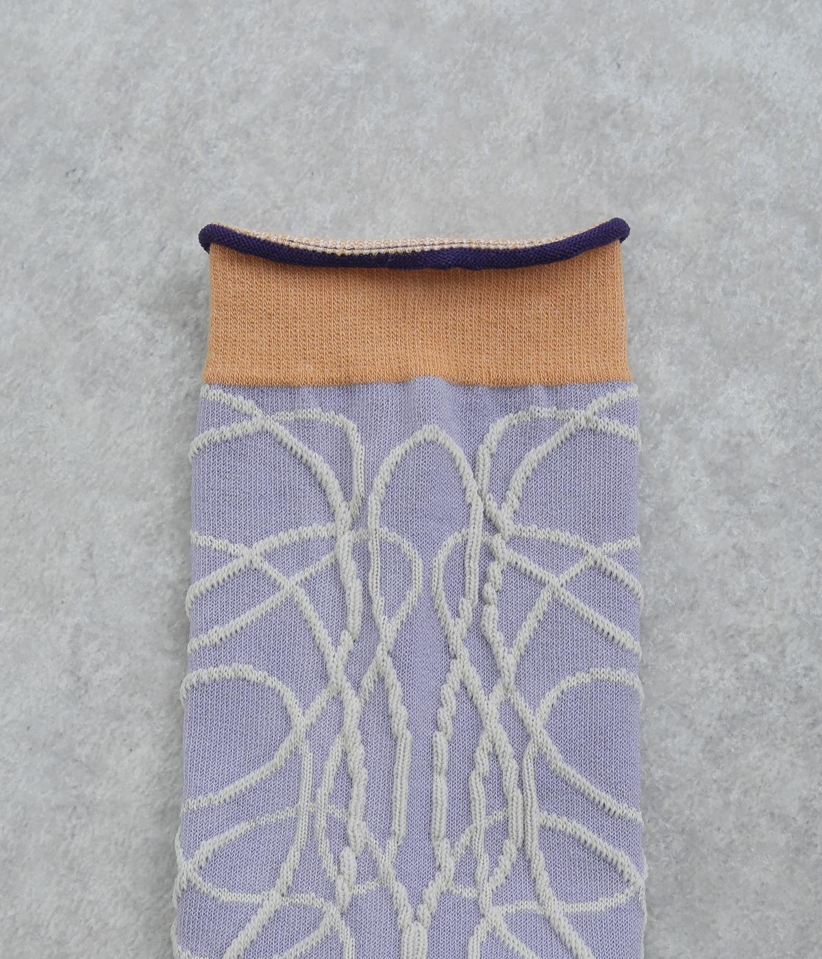 パステルカラーをベースに、ぐるぐるとしたロープ模様をフロート編みで立体的に表現したソックス2足セット。やわらかな色合いに遊び心のある柄が映えるデザインです。