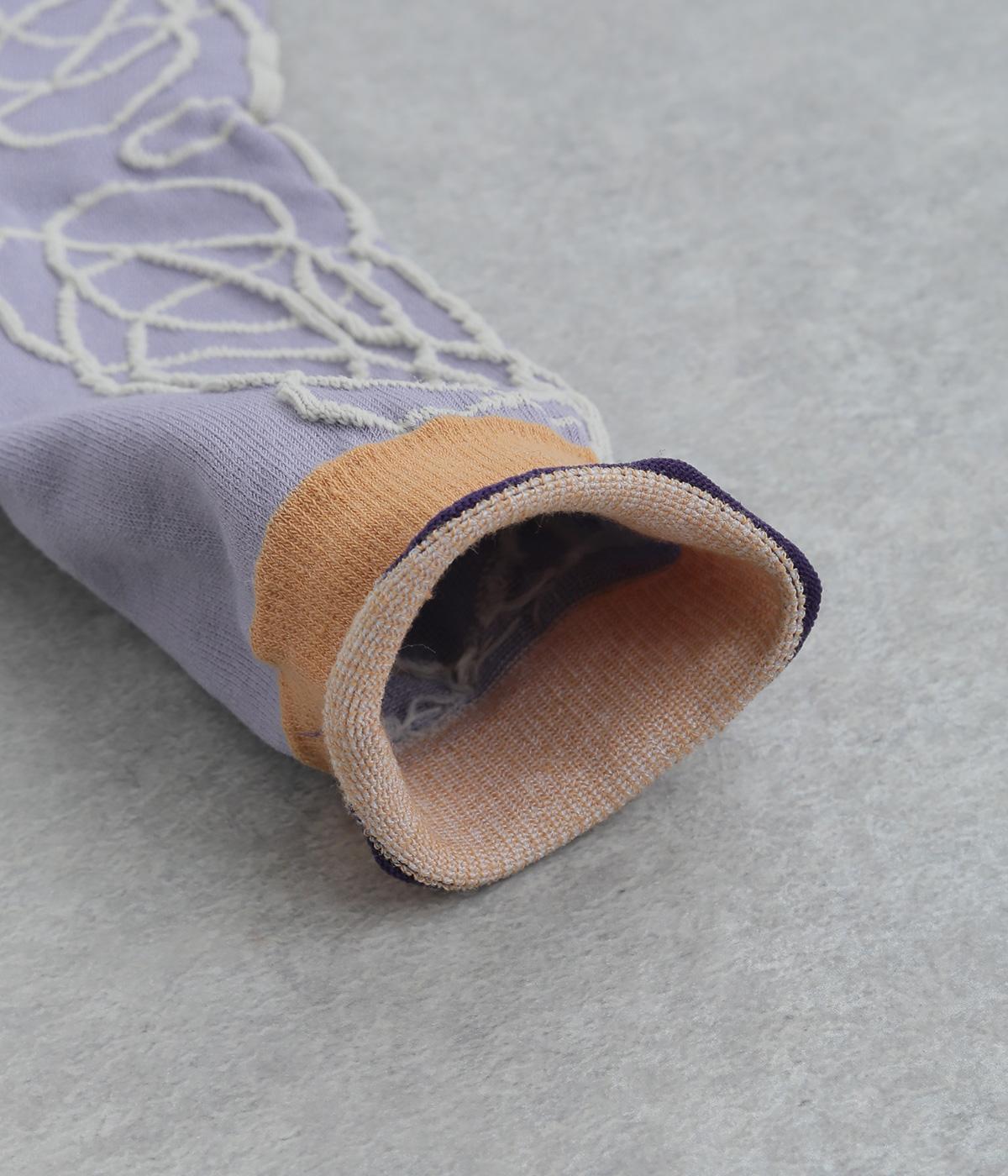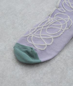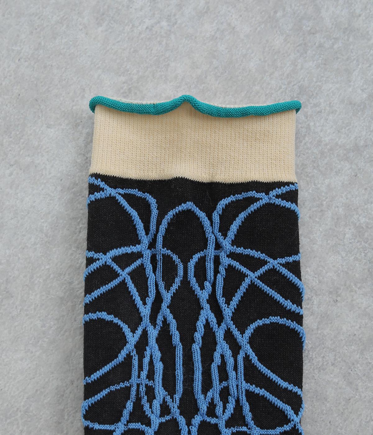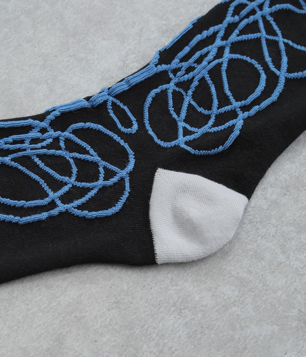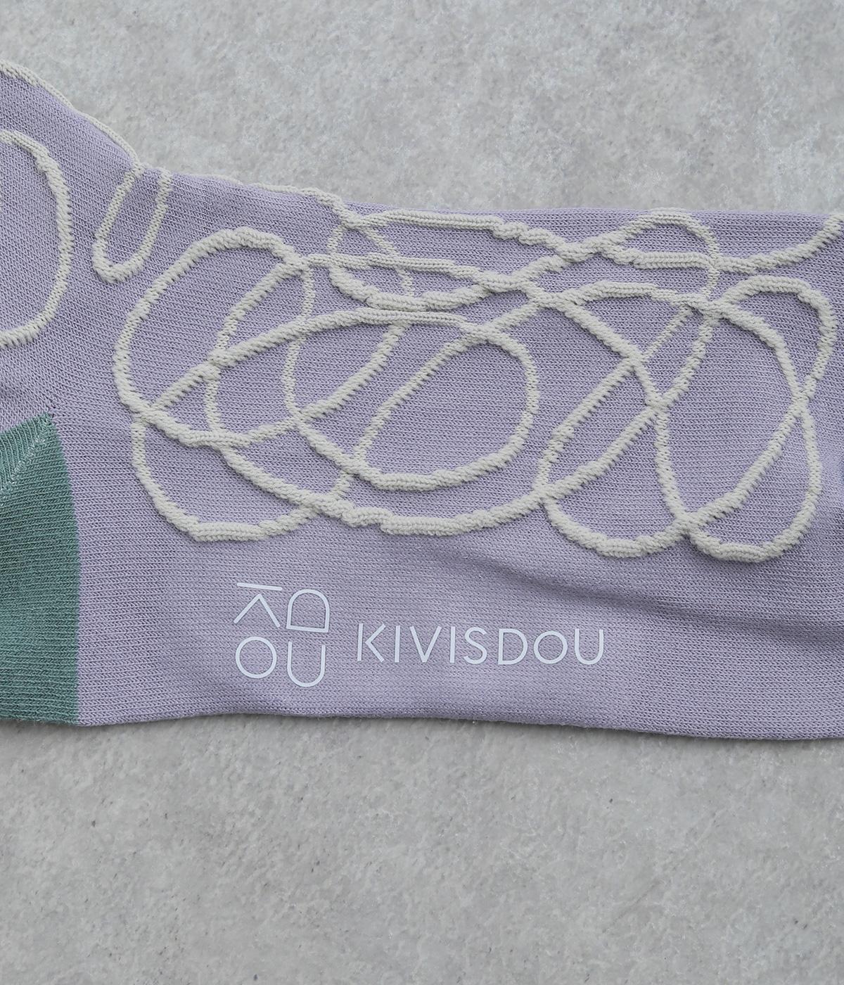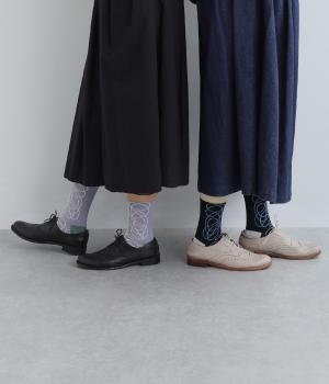 パステルカラーをベースに、ぐるぐるとしたロープ模様をフロート編みで立体的に表現したソックス2足セット。やわらかな色合いに遊び心のある柄が映えるデザインです。