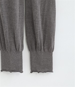 コットンとポリエチレンを混紡した、伸びがよくさらりと涼しい薄手のニット生地を使用しています。ゆるくガーゼのように編みたてており、ほんのりと透け感をたのしめるのも魅力。暑さの残る時期にもぴったりです。