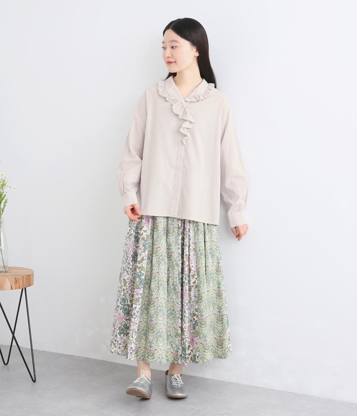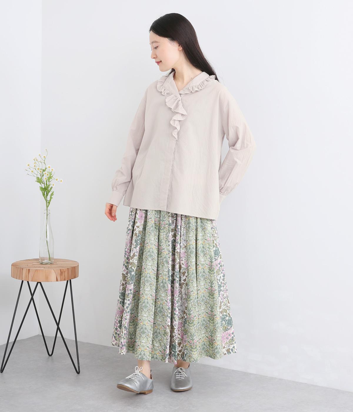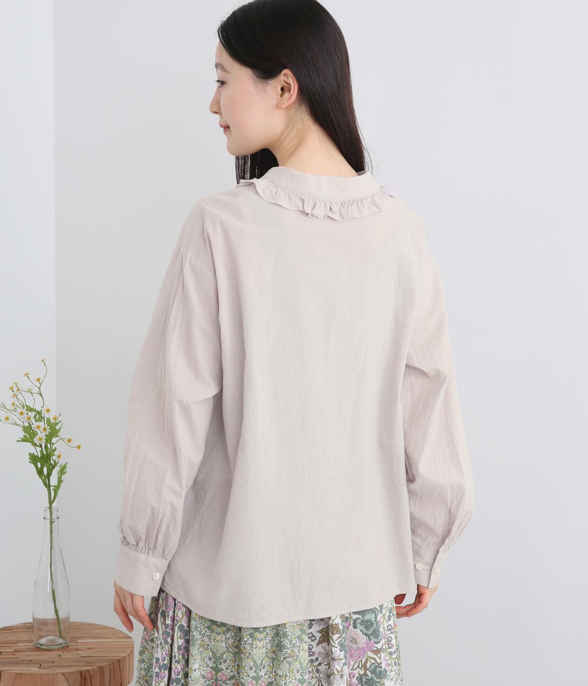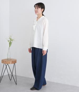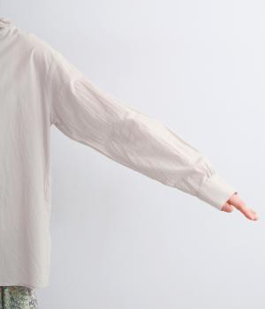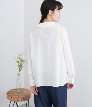 細い糸で織り上げたコットンローン生地を使用しています。生地を揉み込む仕上げで、薄手ながらふんわりと膨らみ、ソフトな肌ざわりに。上品な透け感で軽やかな着心地です。