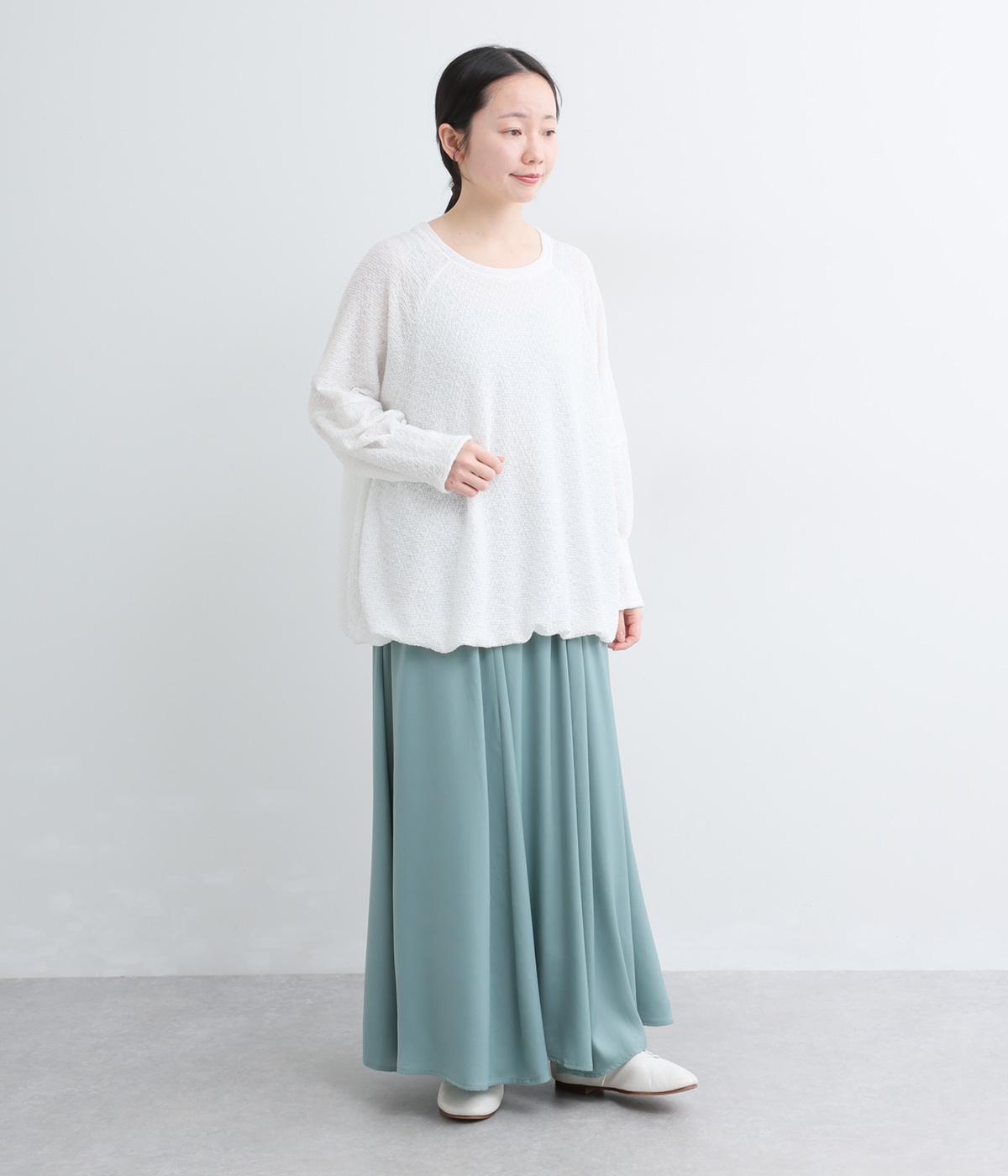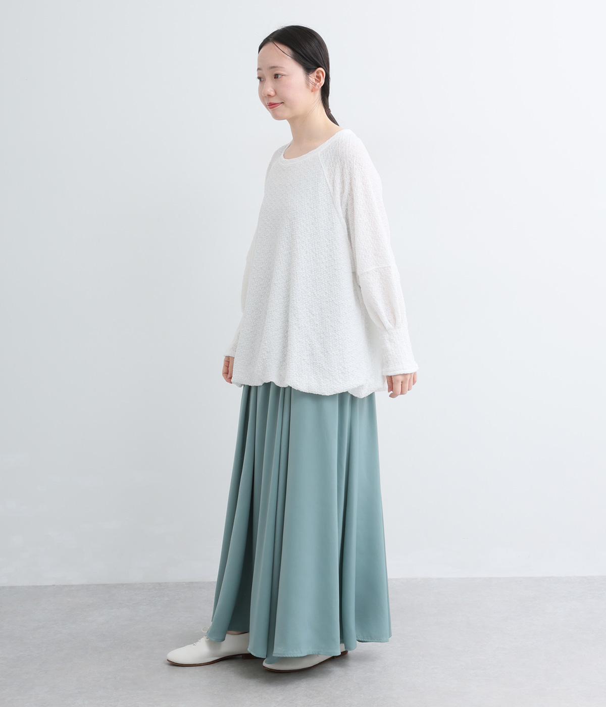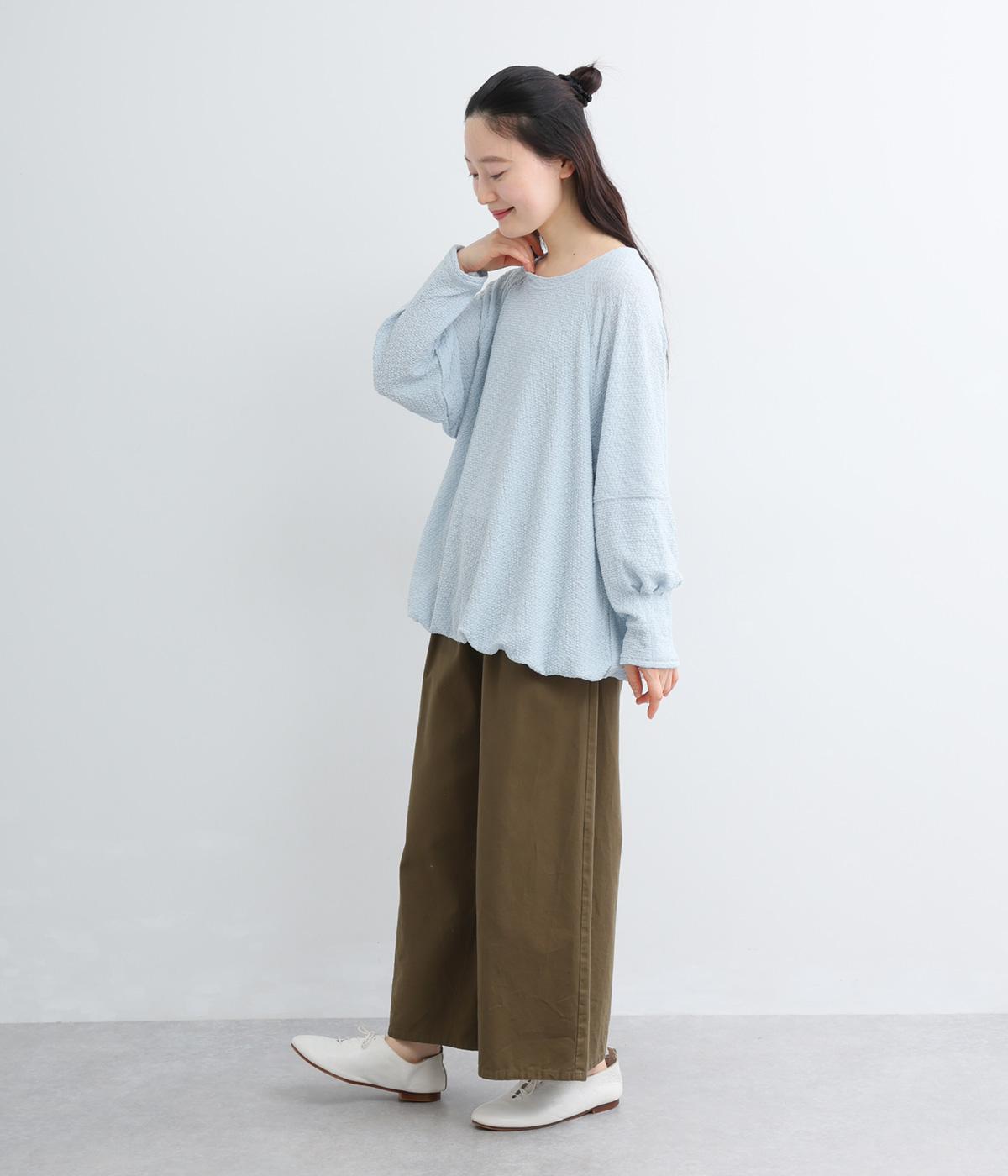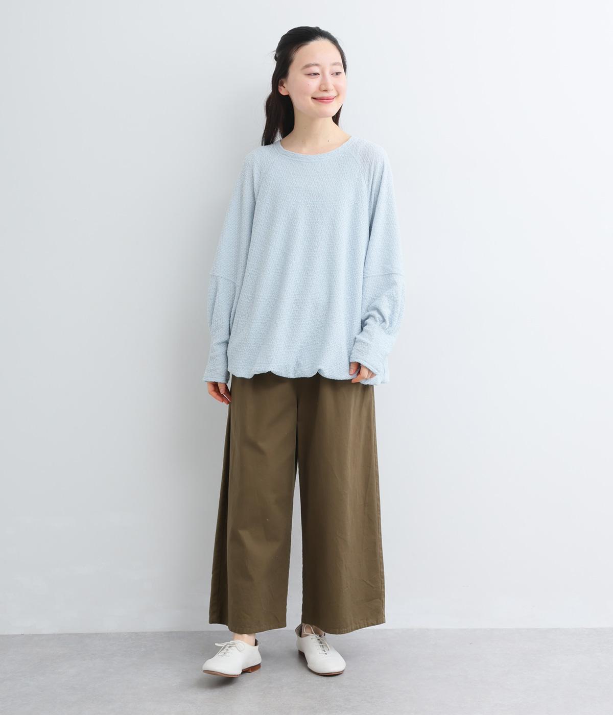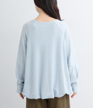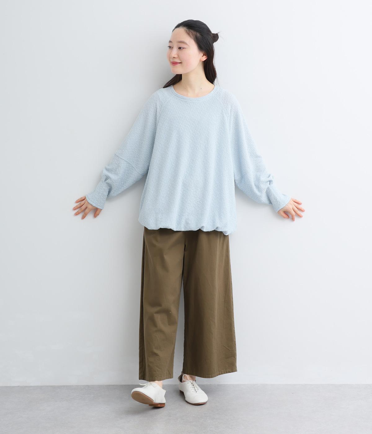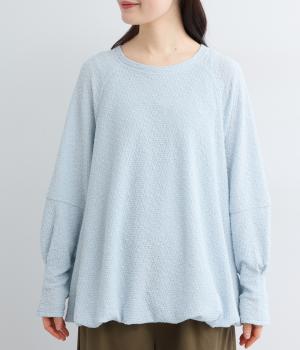裾バルーンのふっくらしたシルエットが着映えする一枚。ラグラン袖が肩まわりのラインをやわらかく描き、袖口タックですっきりとメリハリをプラス。さわやかなカラーに清涼感のある素材であたたかな季節にも活躍します。