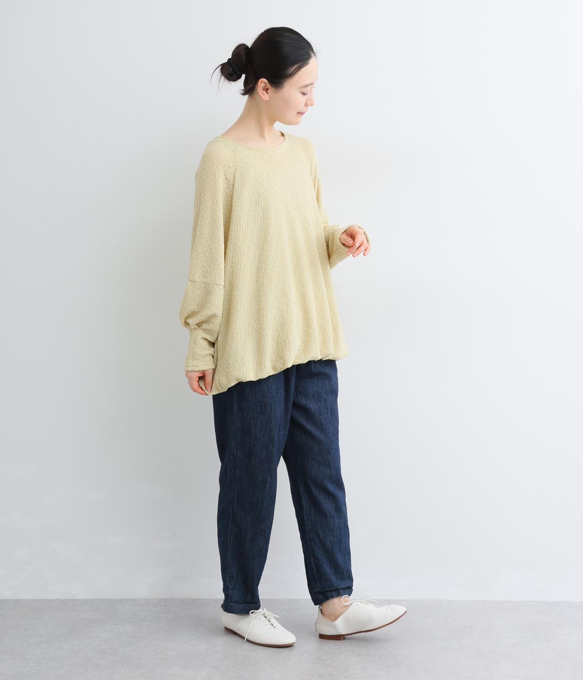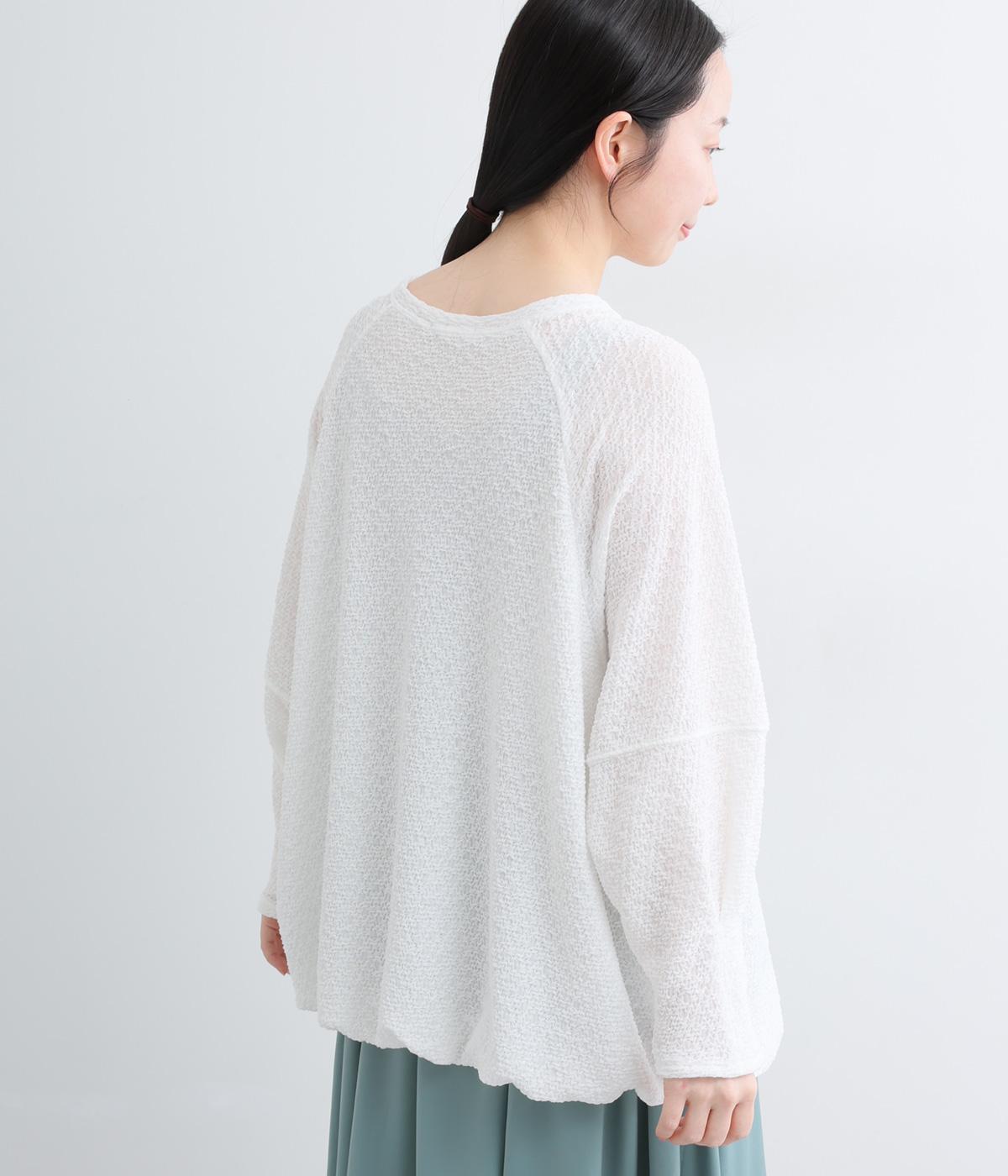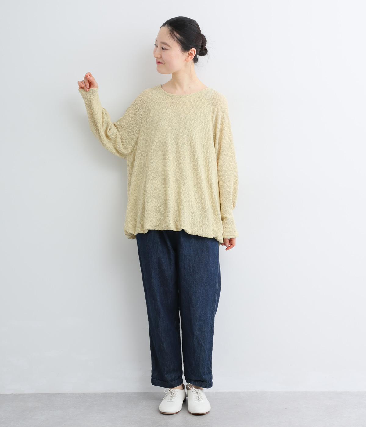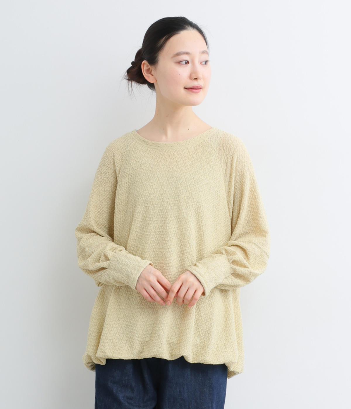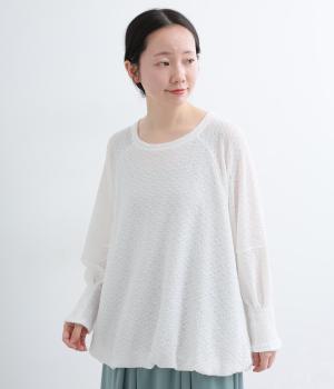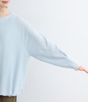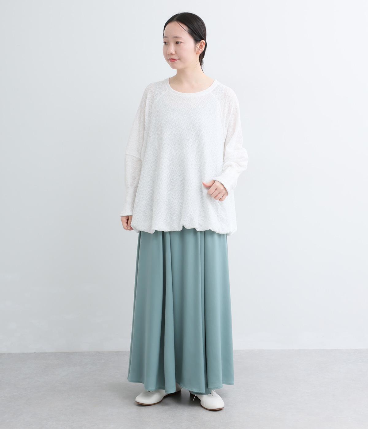 裾バルーンのふっくらしたシルエットが着映えする一枚。ラグラン袖が肩まわりのラインをやわらかく描き、袖口タックですっきりとメリハリをプラス。さわやかなカラーに清涼感のある素材であたたかな季節にも活躍します。