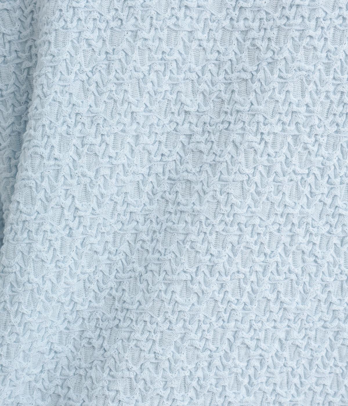 表面の凹凸感が特徴的で、無地ながらもアイキャッチになる素材です。伸縮性に優れ、通気性のいい素材で着心地も快適。身頃部分のみメッシュの裏地がついています。