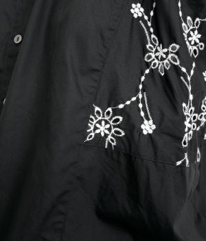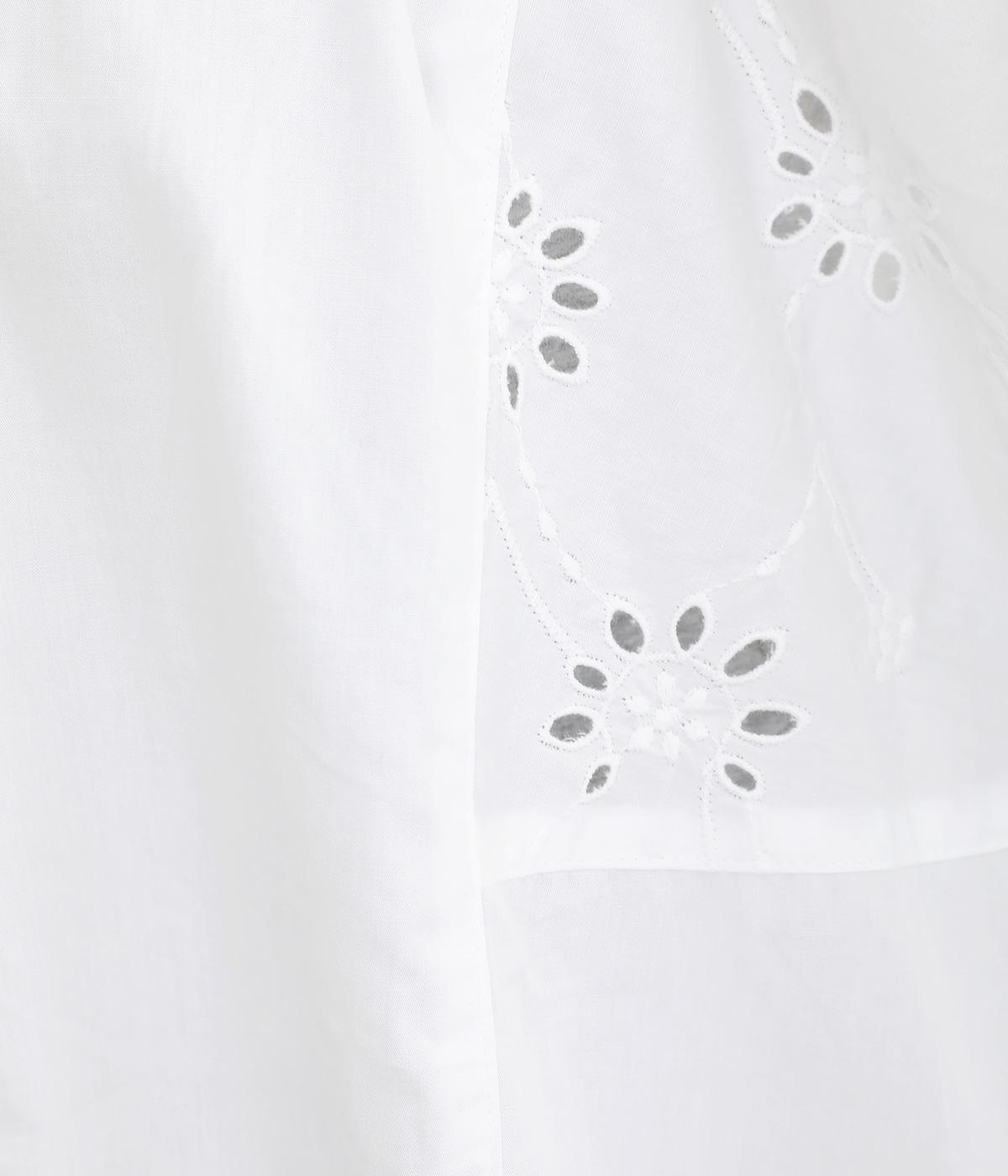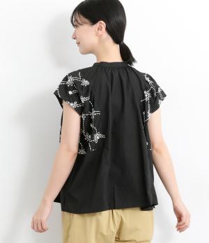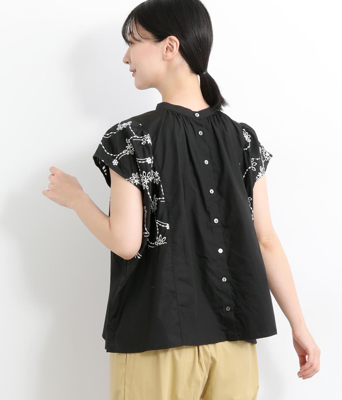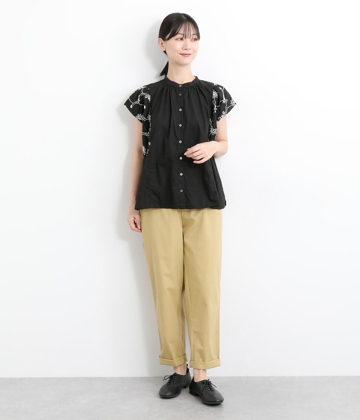 品のいい印象のコットンブラウスに刺しゅう生地を加えて華やかさをプラスしました。襟ぐりギャザーでゆとりのあるシルエットを描き、裾スリットでちょうどいい抜け感を。ボタン開きと前後2way仕様で、着こなしのバリエーションもさまざま。
