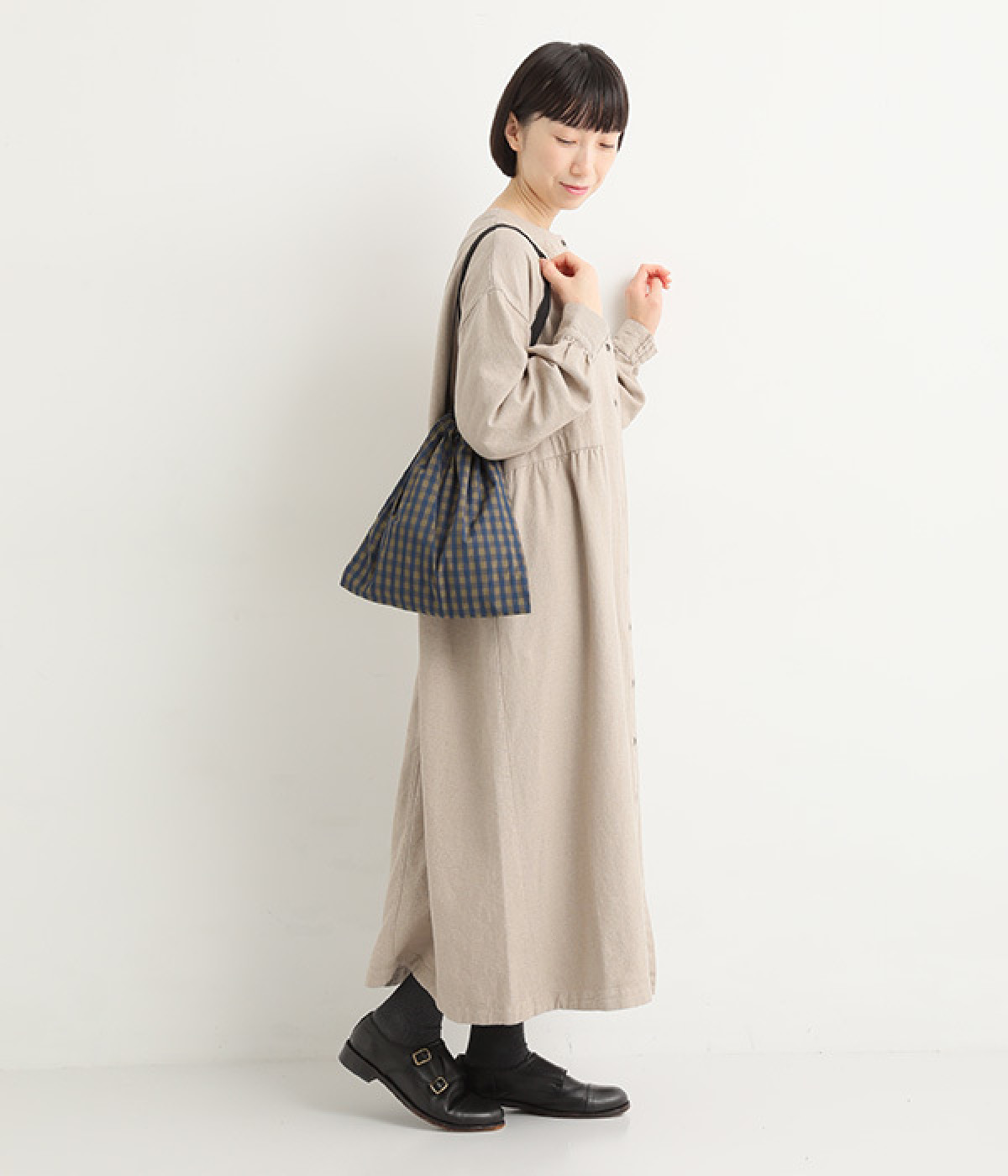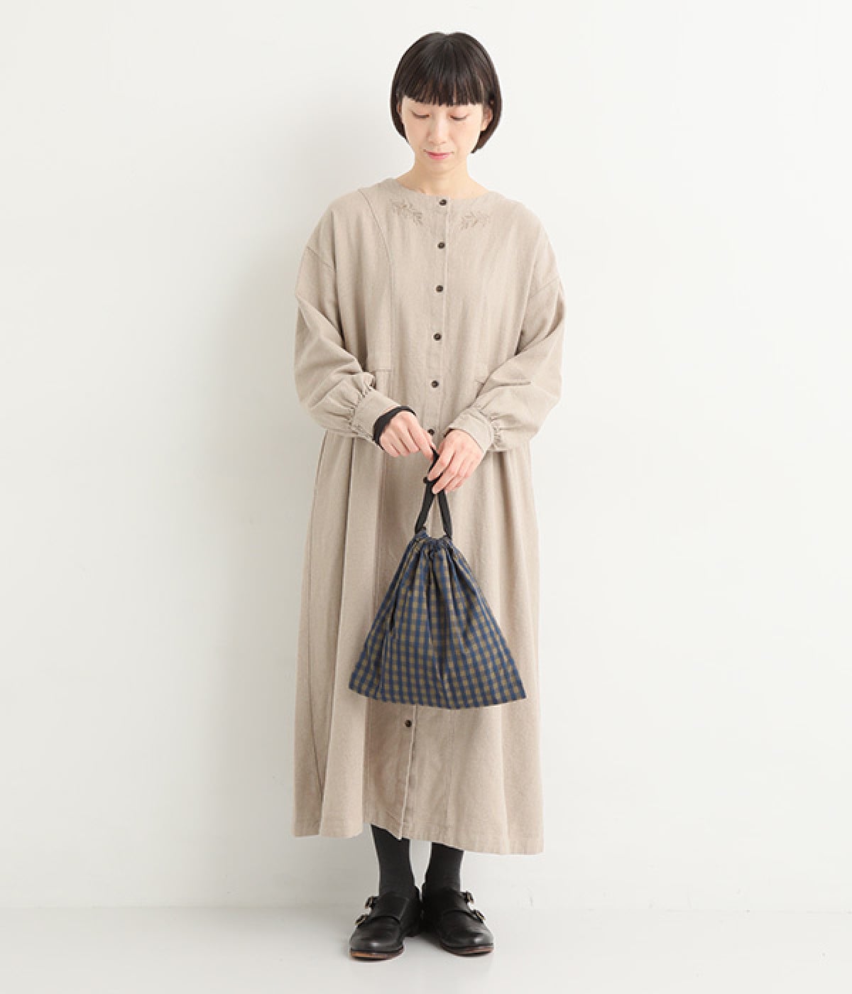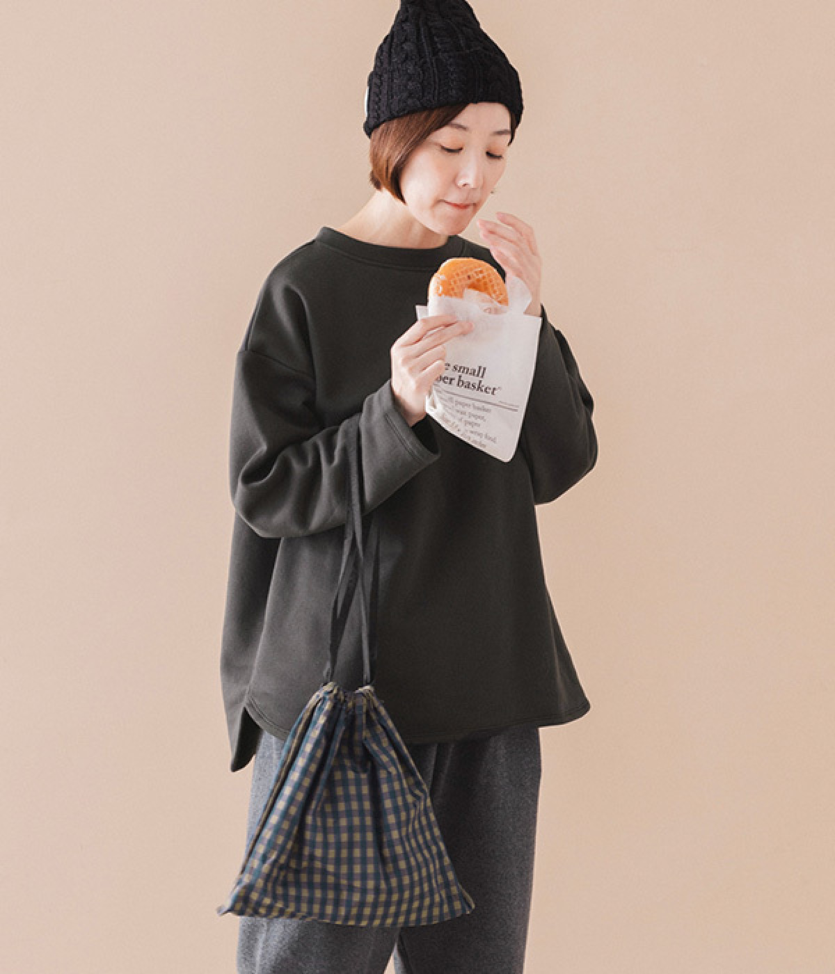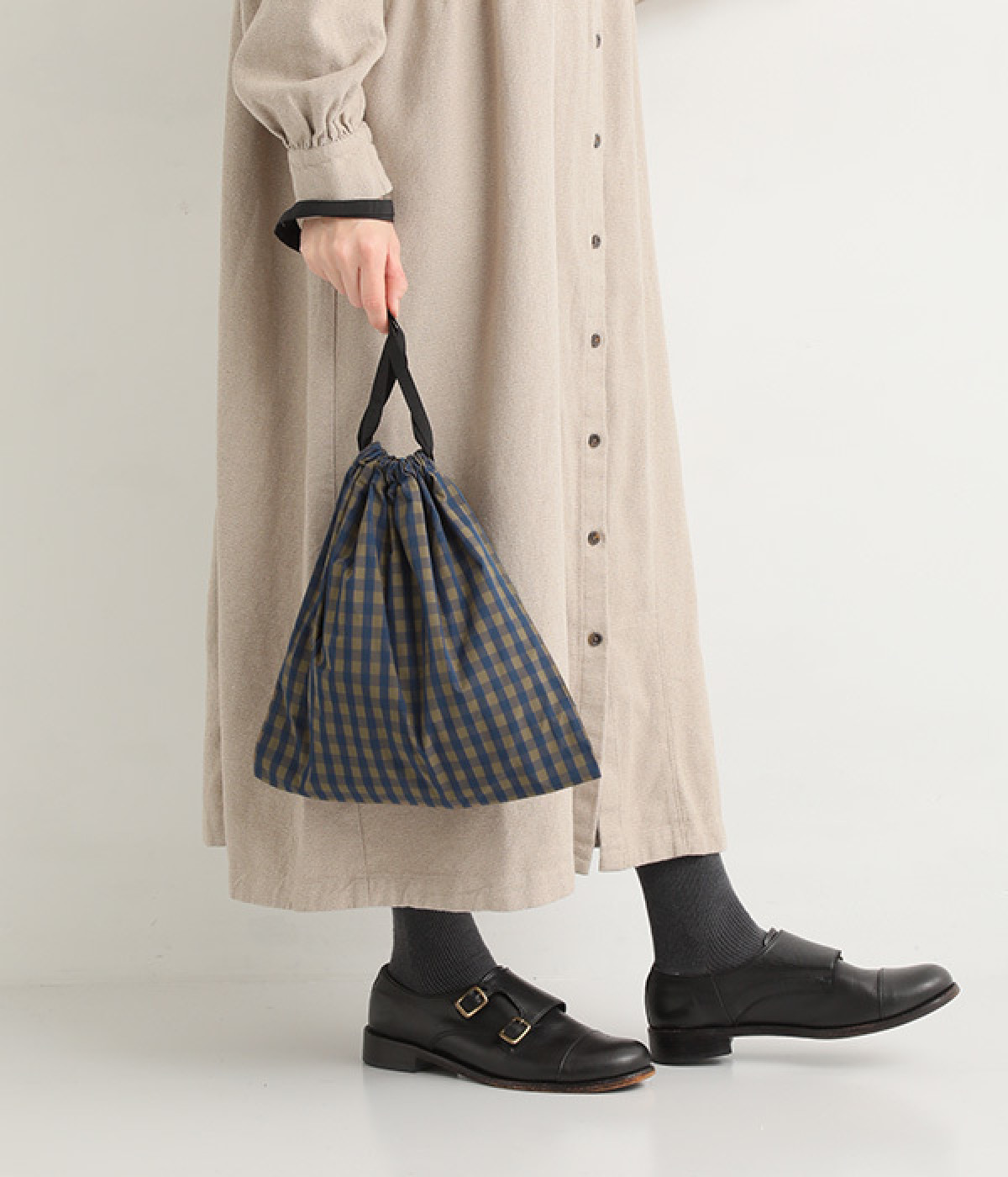着こなしにかわいらしいアクセントをつける巾着フォルム