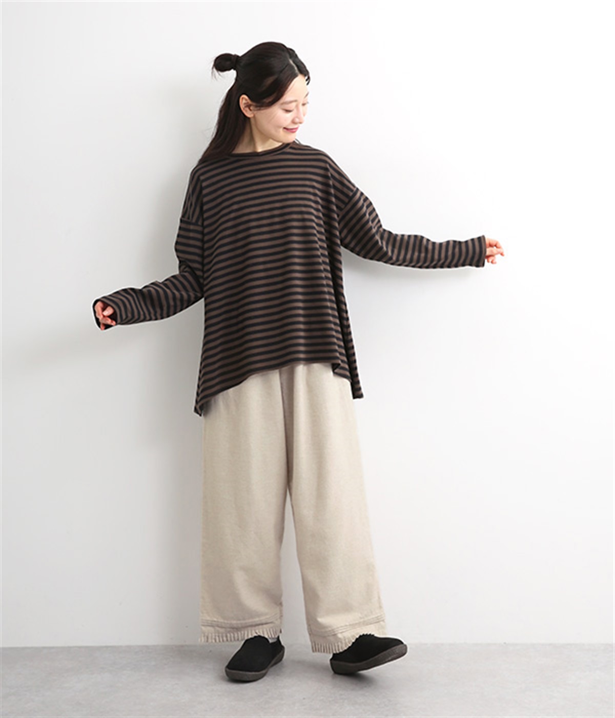 お部屋着のようにゆるりとはけるワイドシルエット