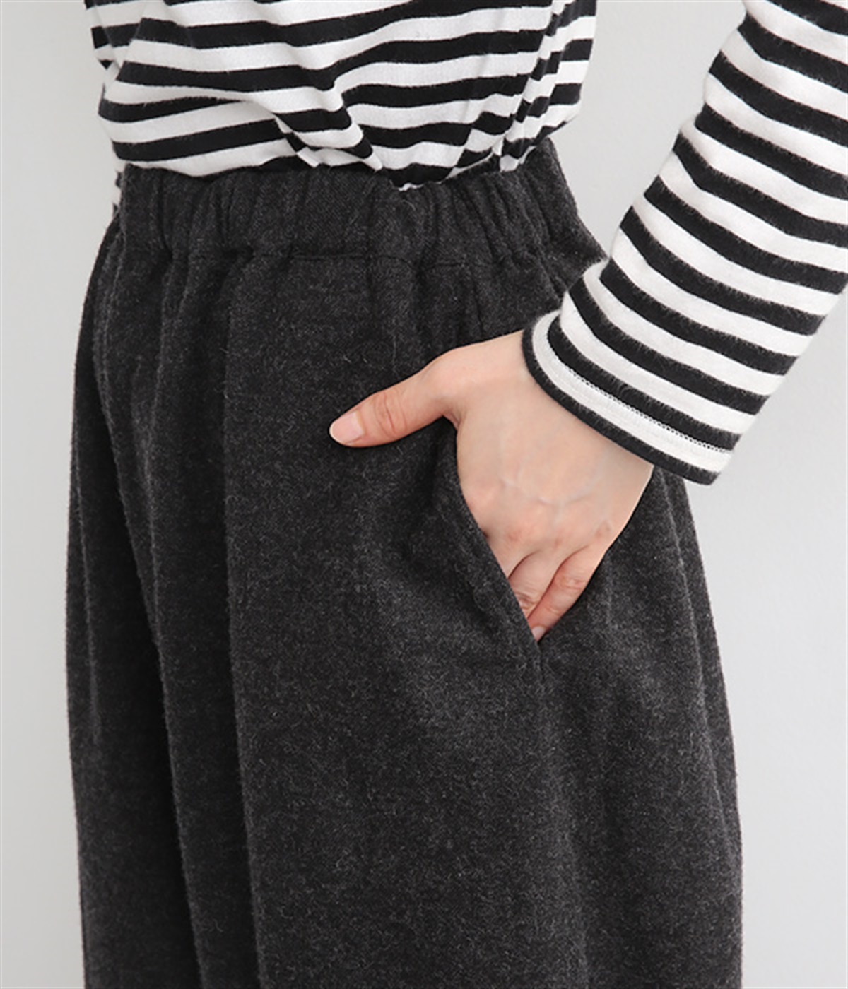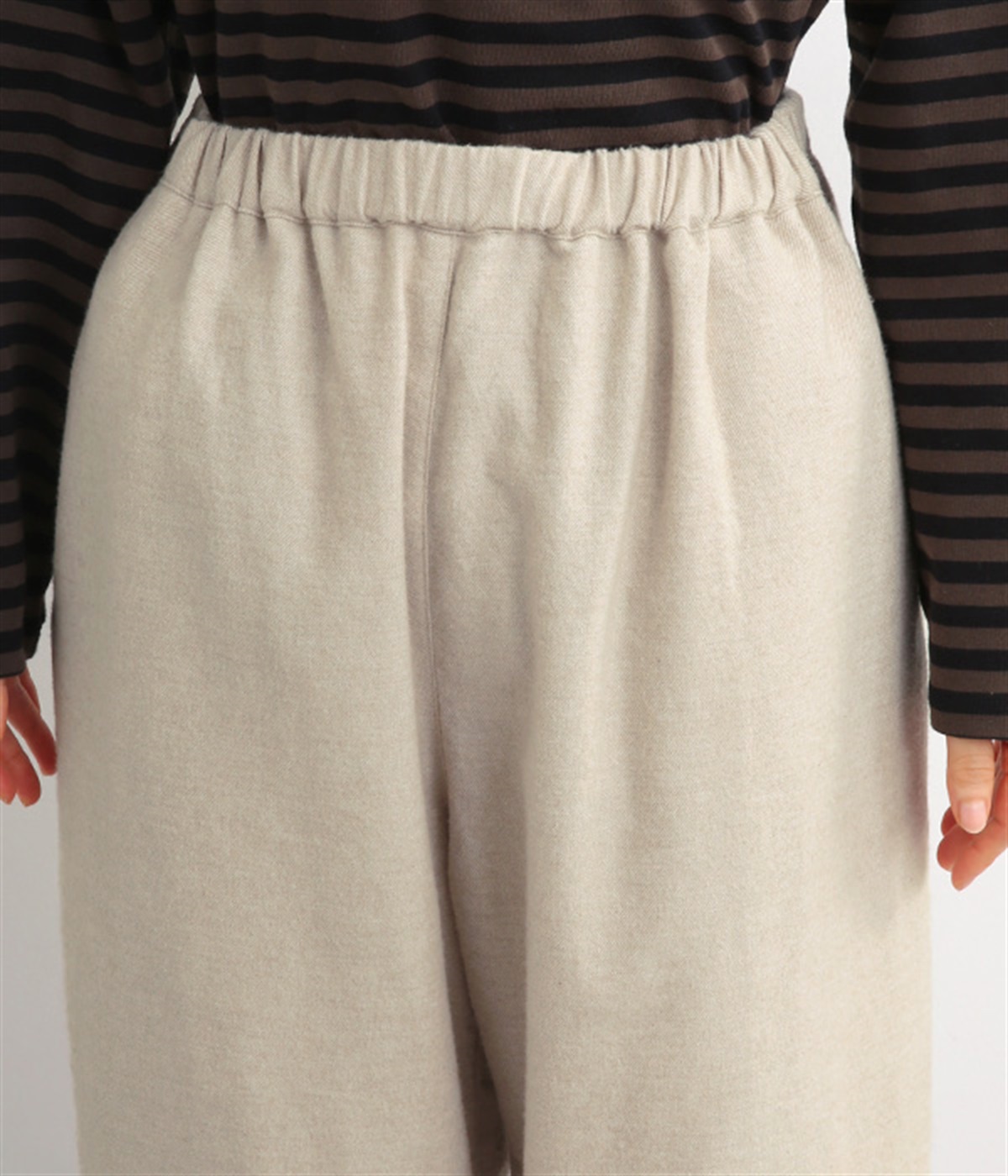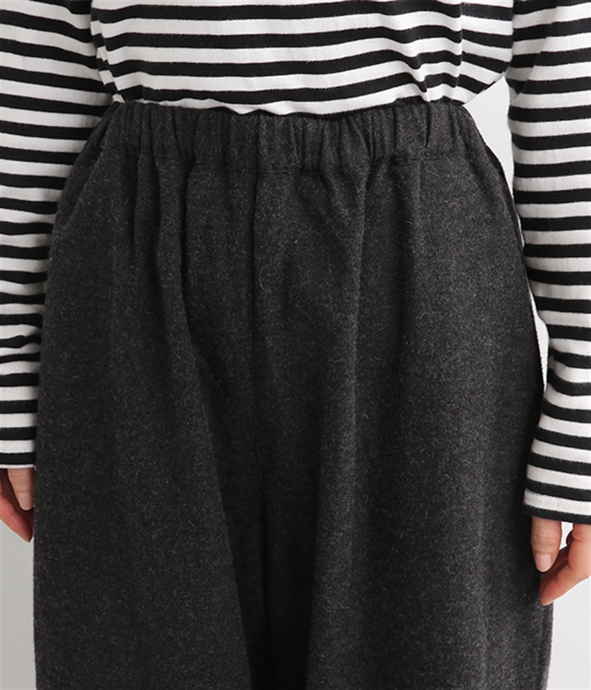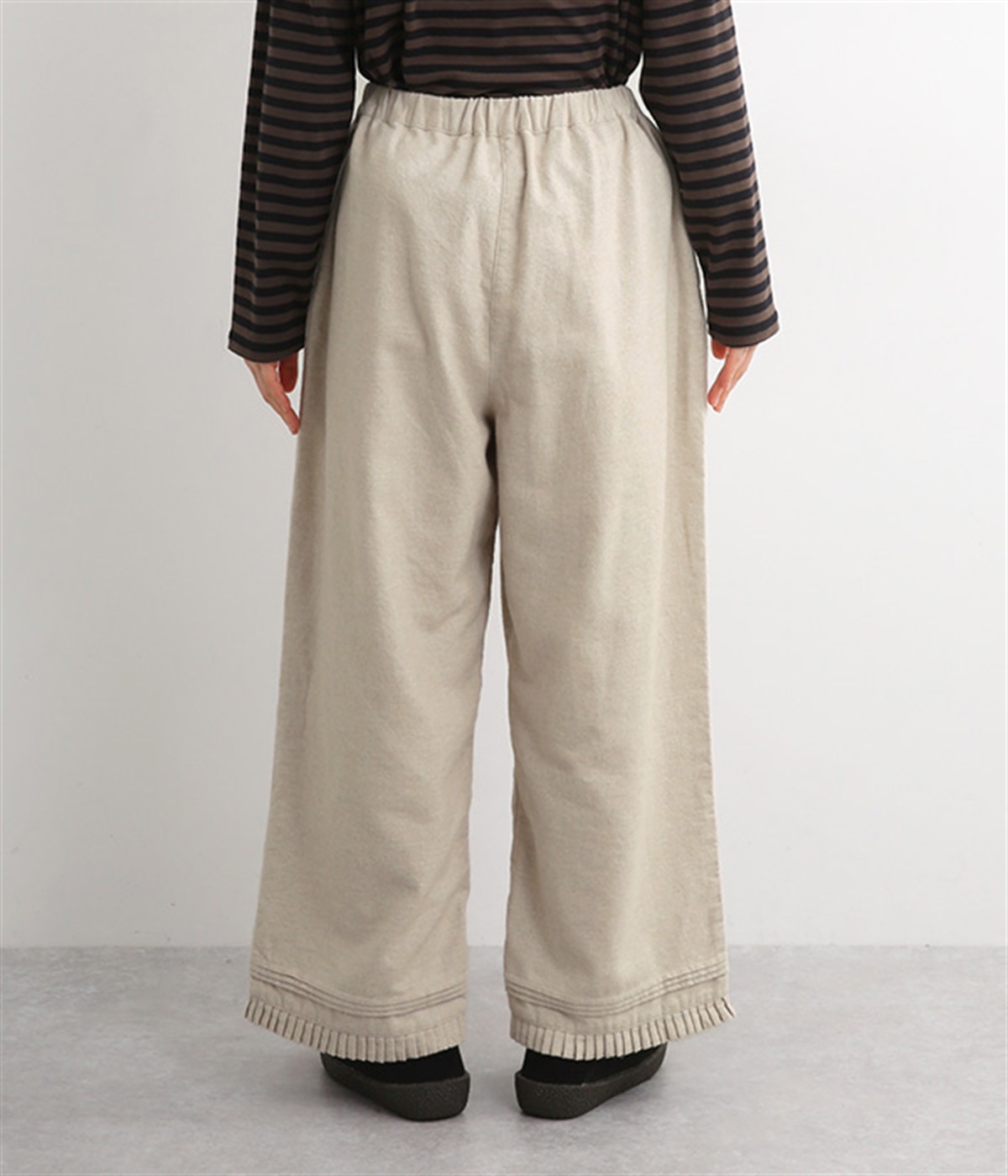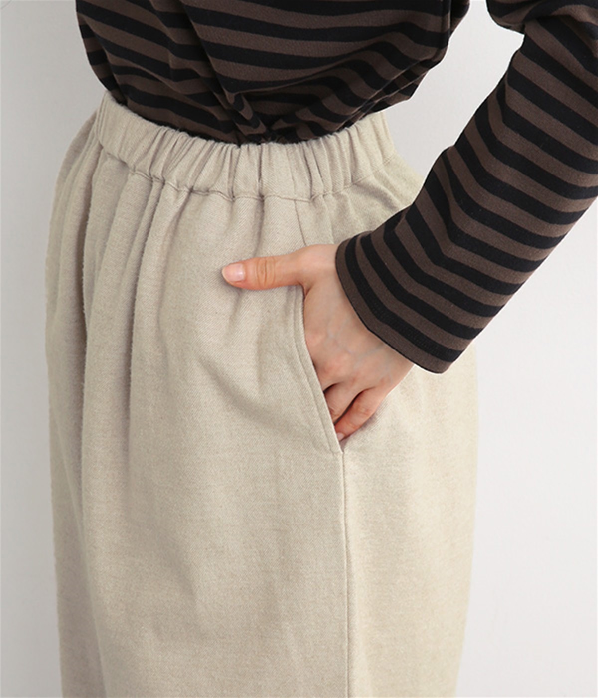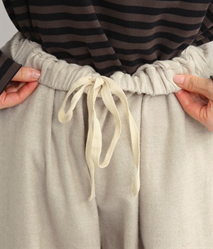 ウエストはゴムを通したイージー仕様で、内ひもによって微調節が可能
