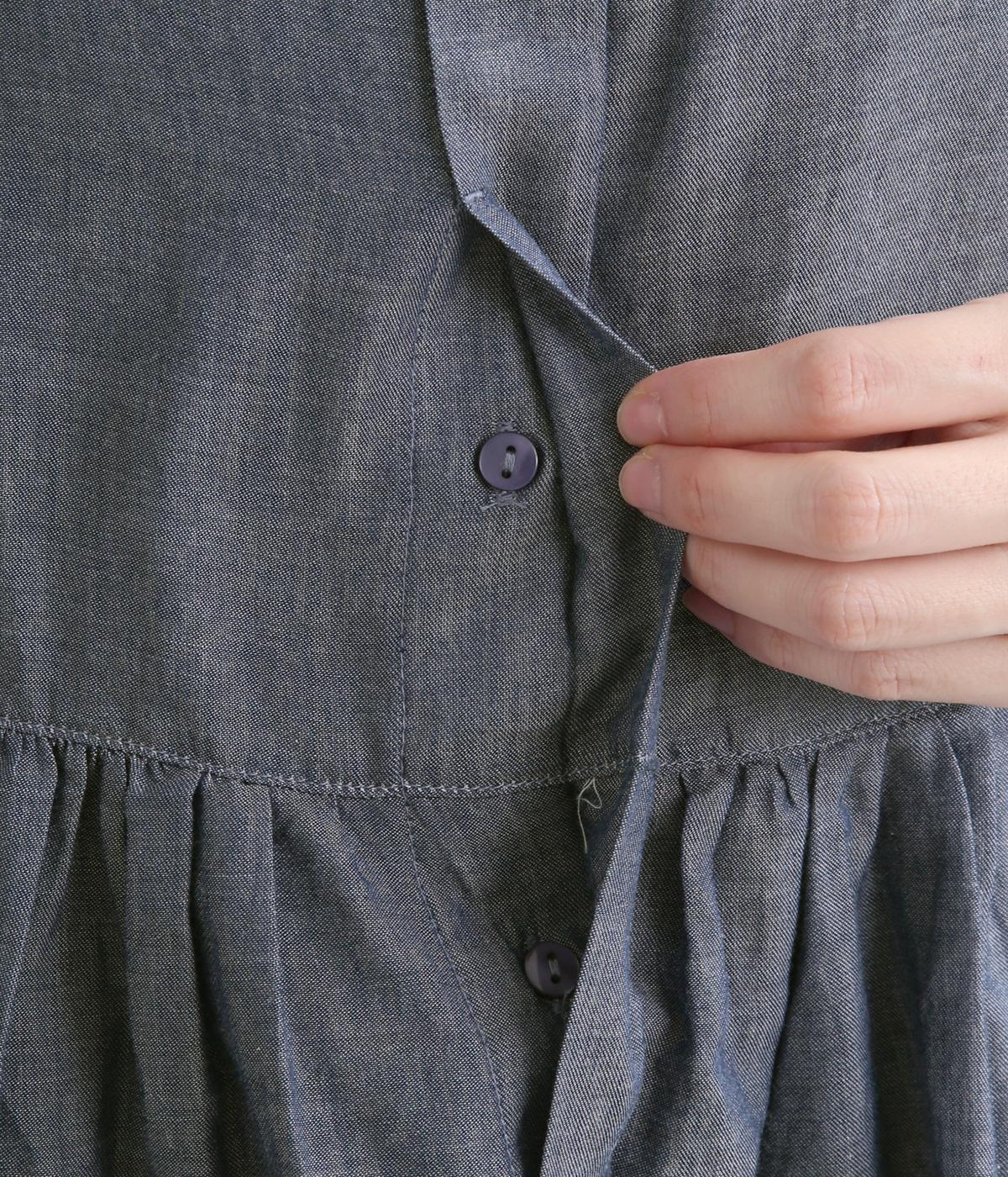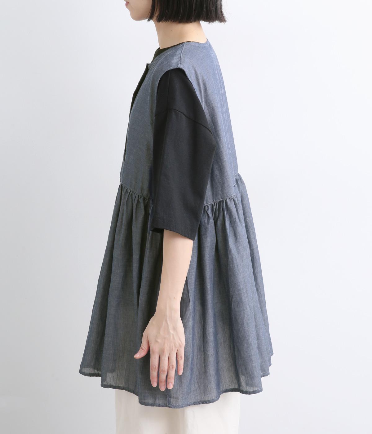 さわやかな風合いが特徴的なコットンシャンブレー生地です。薄手ながらも丈夫で耐久性があるのでデイリー使いに最適で、通気性もよく見た目だけでなく着心地も軽やか。