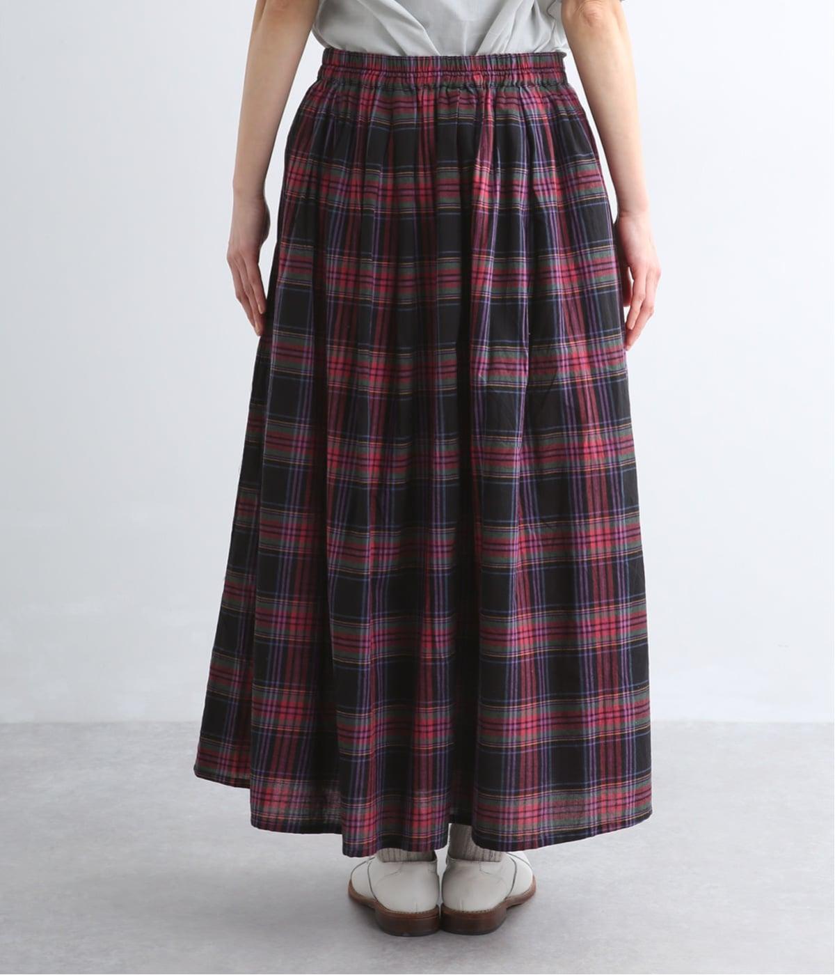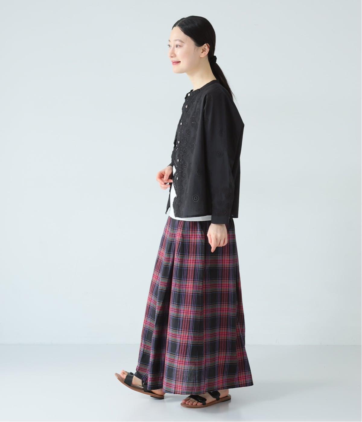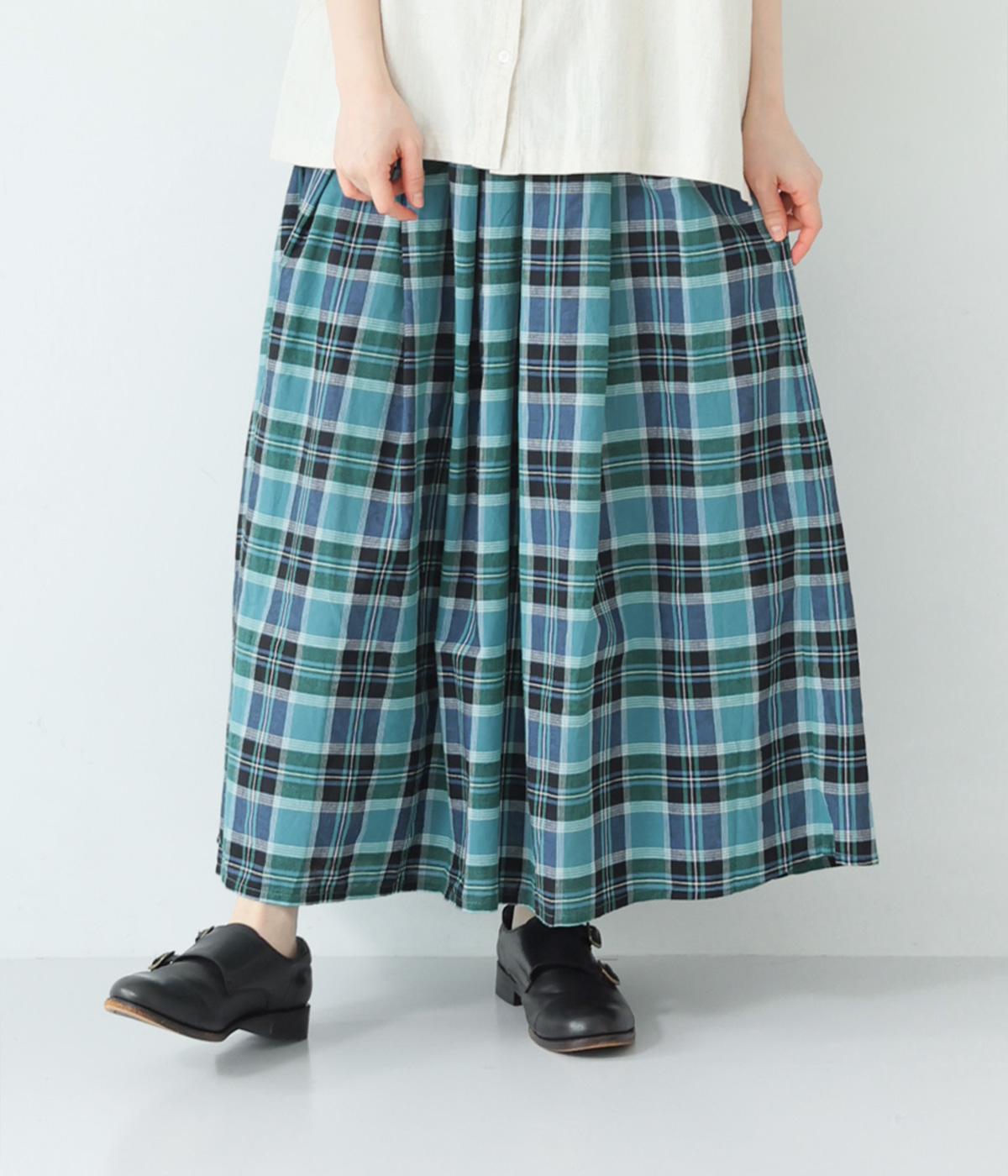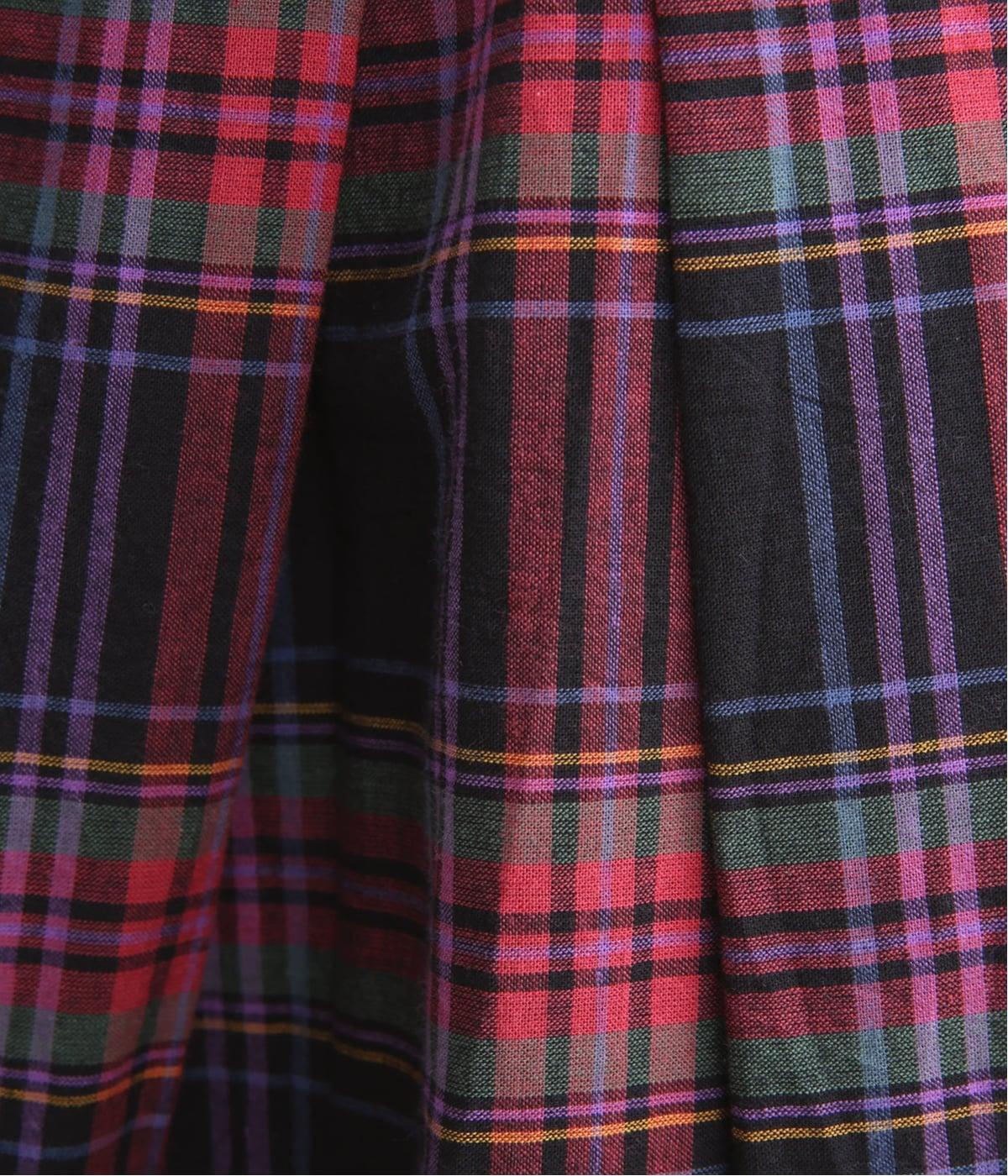 彩り豊かなマドラスチェックが目を引くスカート。ボックスプリーツのタックが、動くたびにきれいなシルエットを描きます。ふんわりとした広がりが装いに軽やかな表情を添え、ウエストはうしろゴムのギャザー仕様でリラックスした穿き心地に仕上げました。