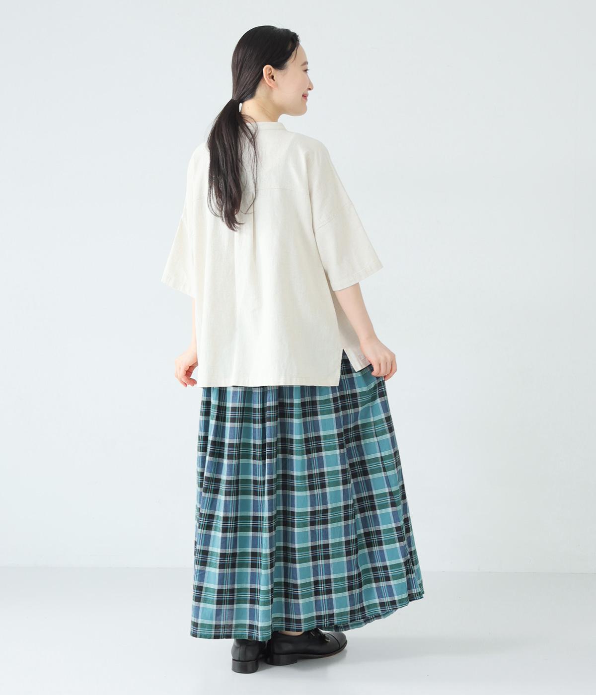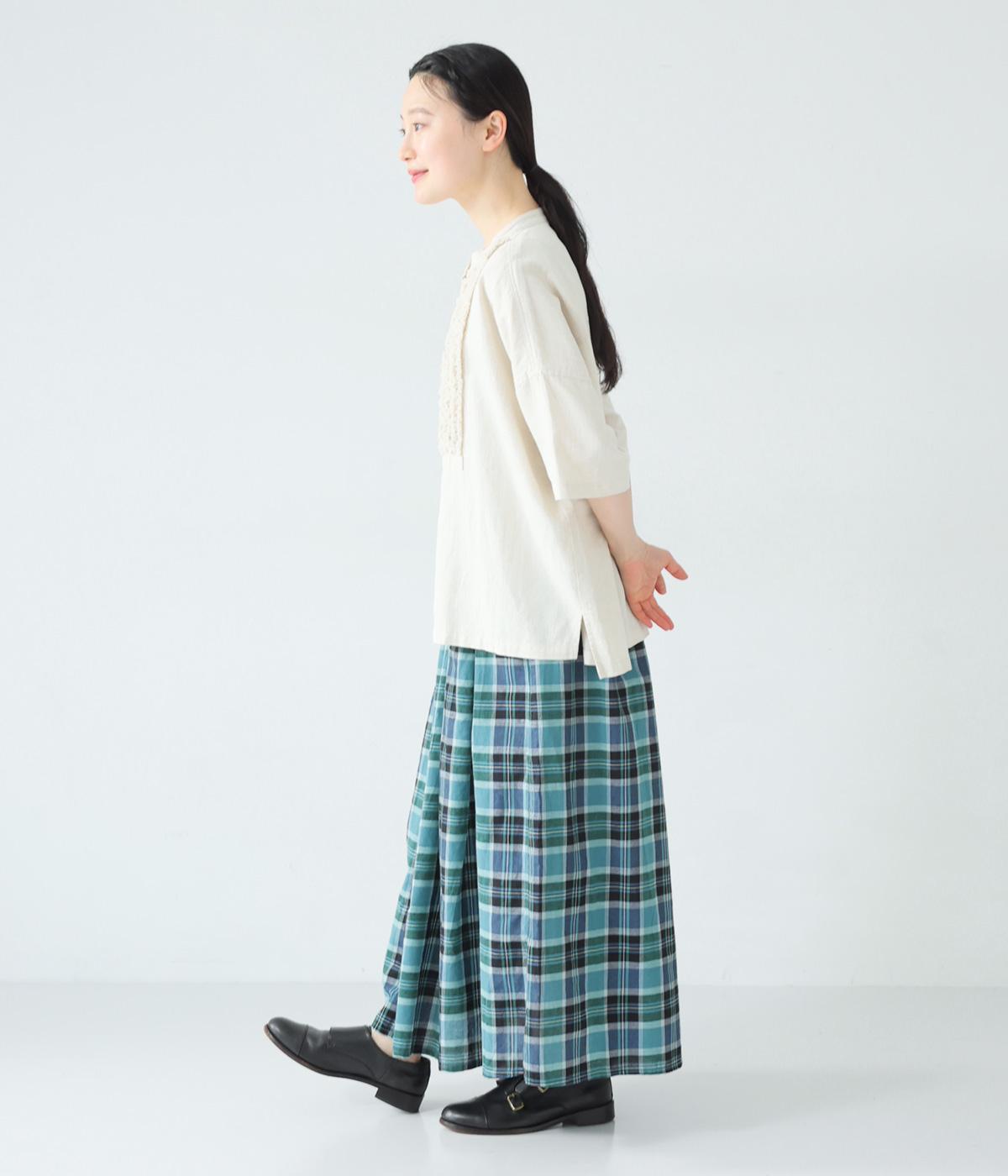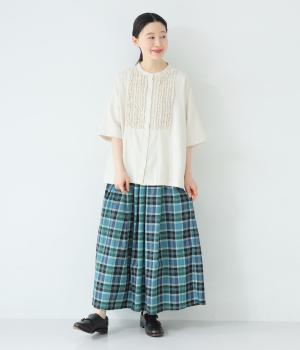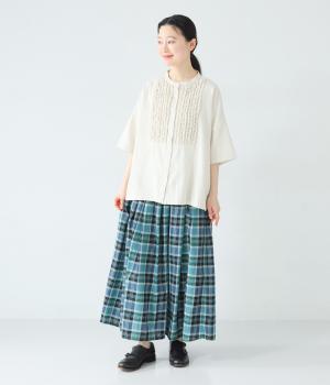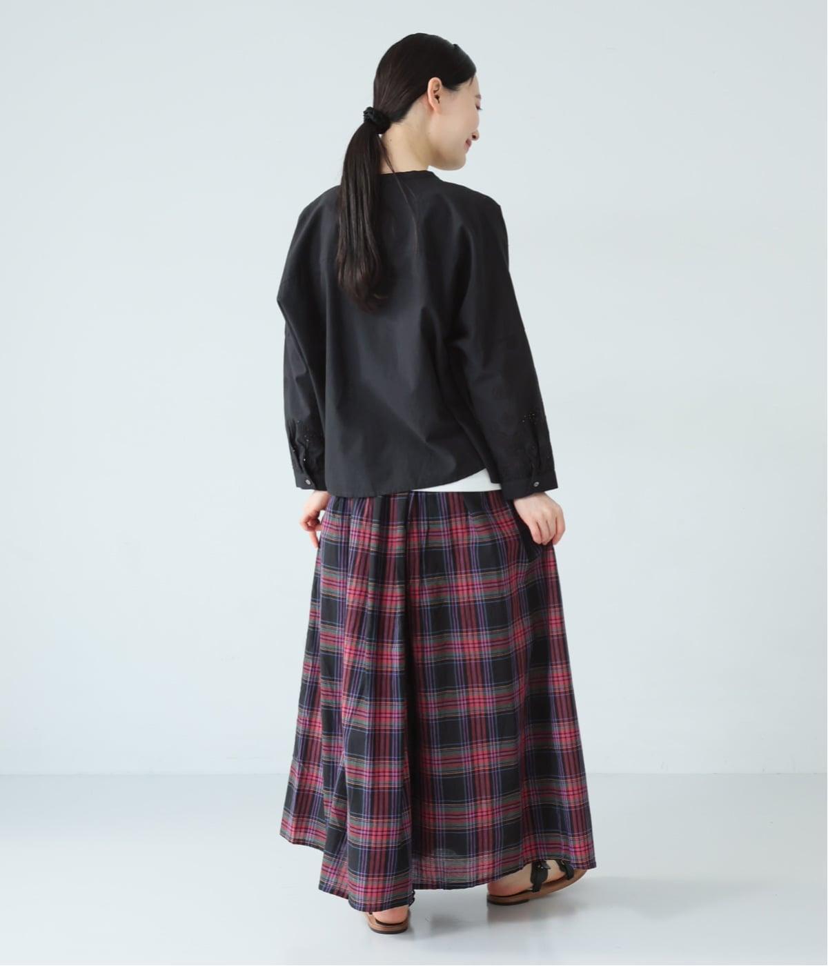 彩り豊かなマドラスチェックが目を引くスカート。ボックスプリーツのタックが、動くたびにきれいなシルエットを描きます。ふんわりとした広がりが装いに軽やかな表情を添え、ウエストはうしろゴムのギャザー仕様でリラックスした穿き心地に仕上げました。