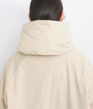 ジップタイプにフードつきでカジュアルにまとめながらも洗練された印象を与えるブルゾン。ハイネック仕様で首元まであたたかく、袖口ゴムや裾アジャスターですきま風もシャットアウト。ラグラン袖で着用感も良く、中にニットも着込みやすい仕上がりです。