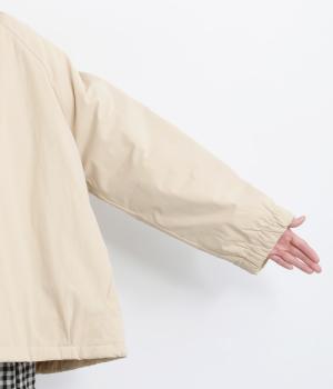 コットンとナイロンのマットな表面感が上品でカジュアル過ぎない印象を与えます。中綿入りであたたかく、軽量仕上げでデイリーに活躍。すべりのいい総裏地つきも◎。