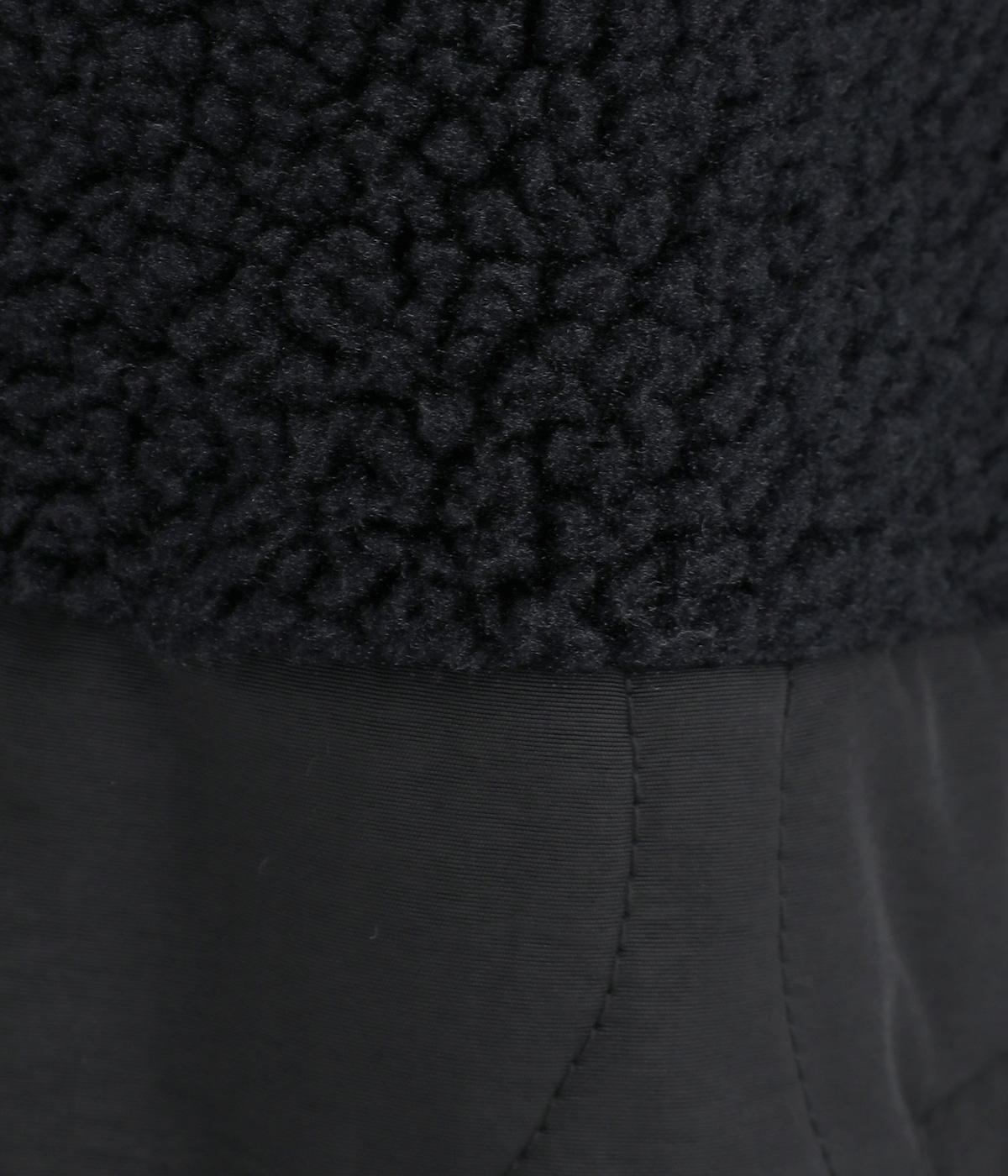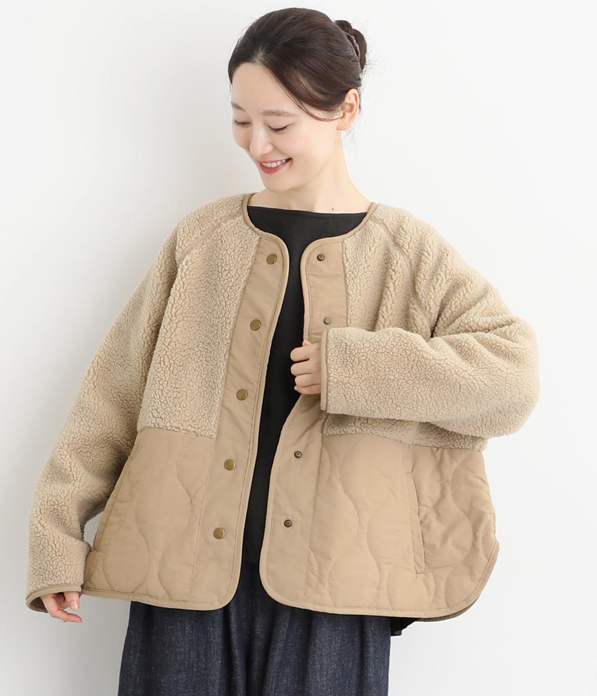 やわらかな起毛感のボアと、ほんのり光沢感のあるキルティングをあわせました。前立て部分にはキルティングを採用し、切り替えが際立つ仕上がりになりました。