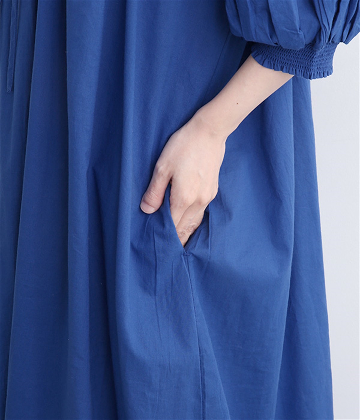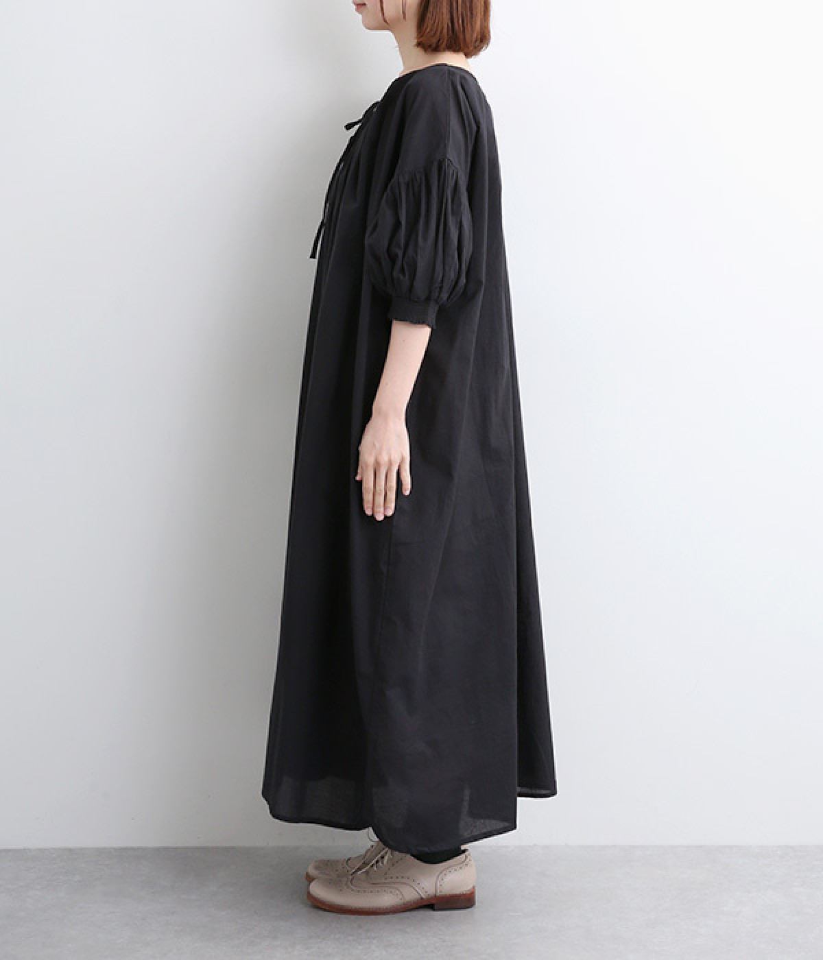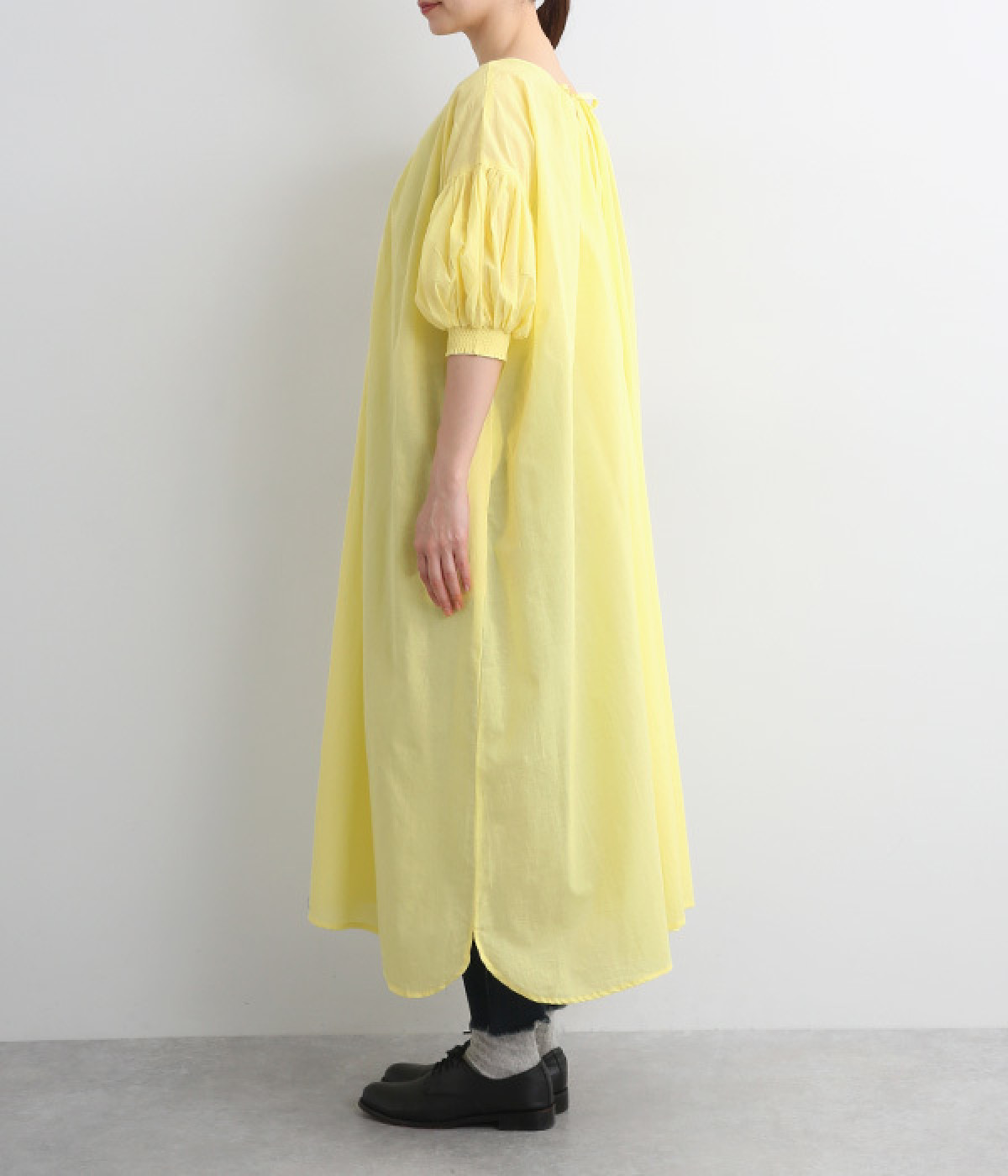 細めの糸を高密度に織ったコットンキャンブリック生地を使用。ソフトな軽さとほのかなハリがあり、ふわっとしたエアリーなシルエットをつくりだします。