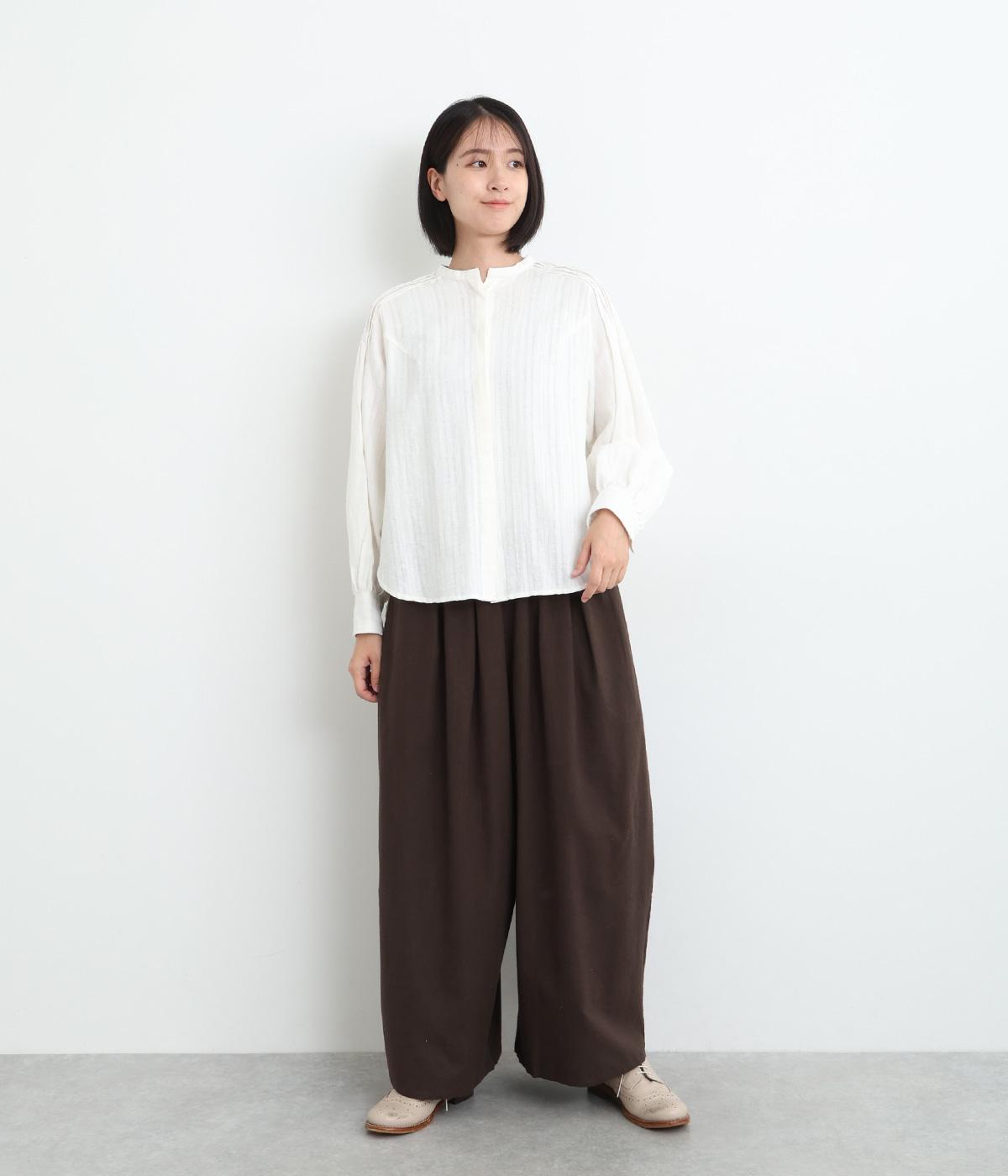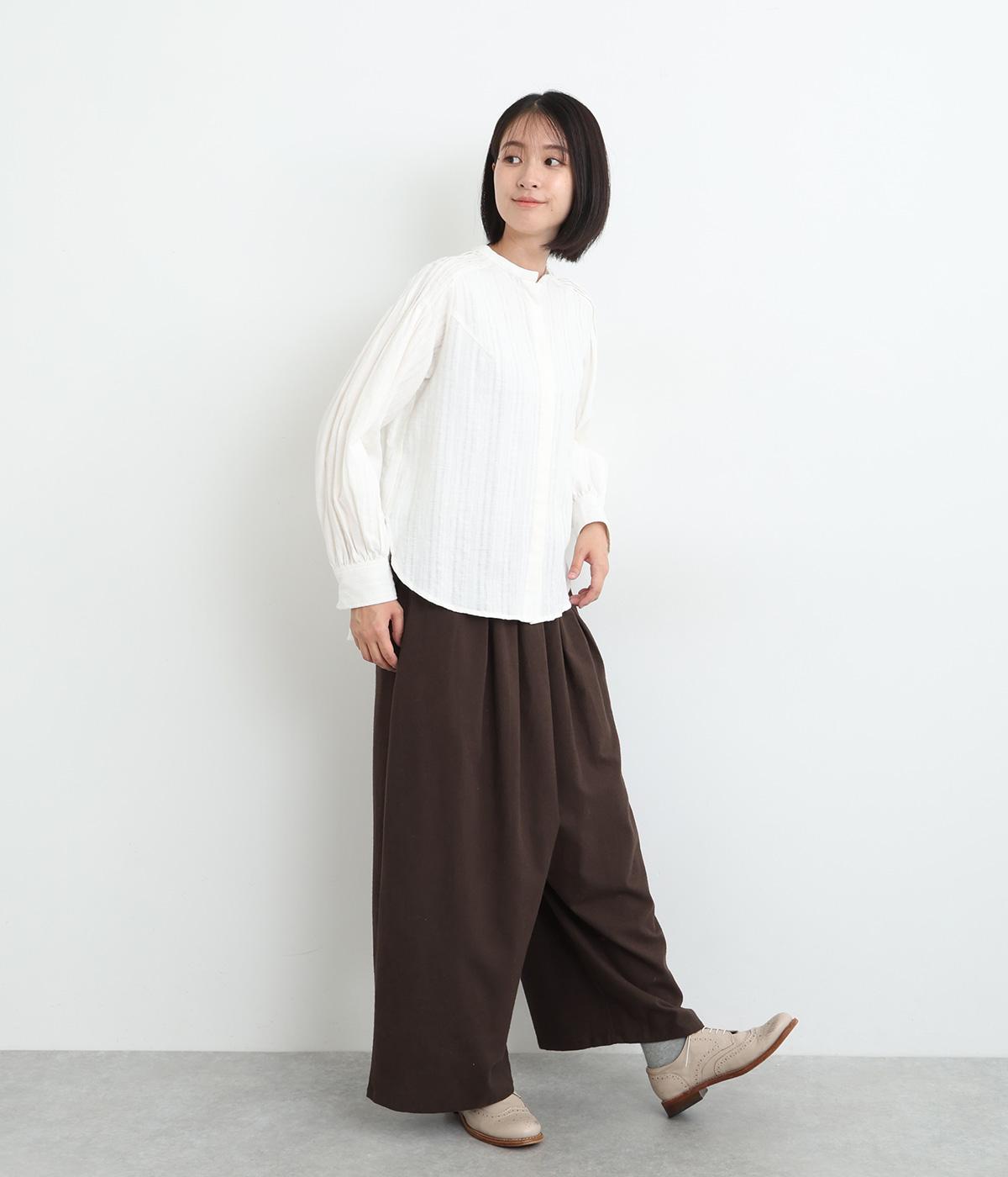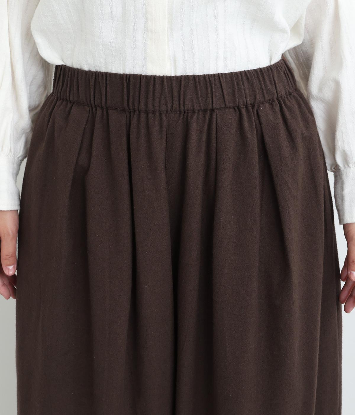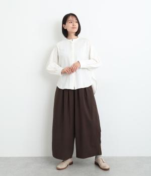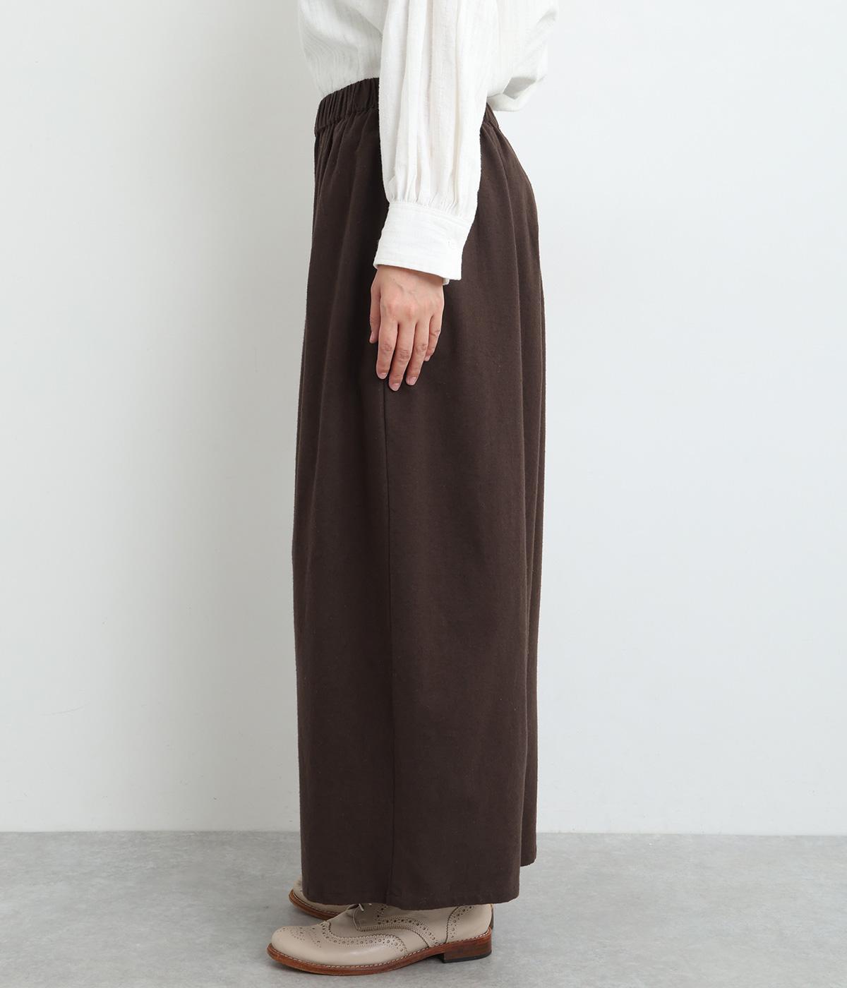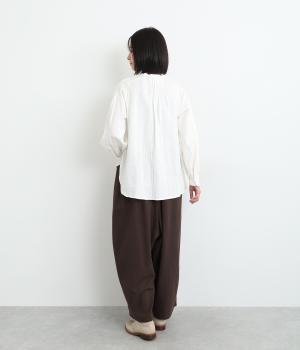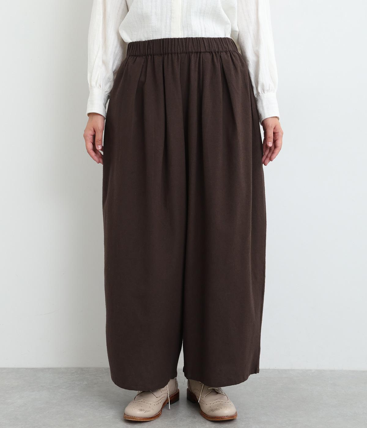 やわらかなコットンリネンの混紡生地に起毛加工をほどこして、ナチュラル感にやさしさのあるあたたかみも加えました。肌にあたる裏面はさらりとしているのではき心地も快適です。